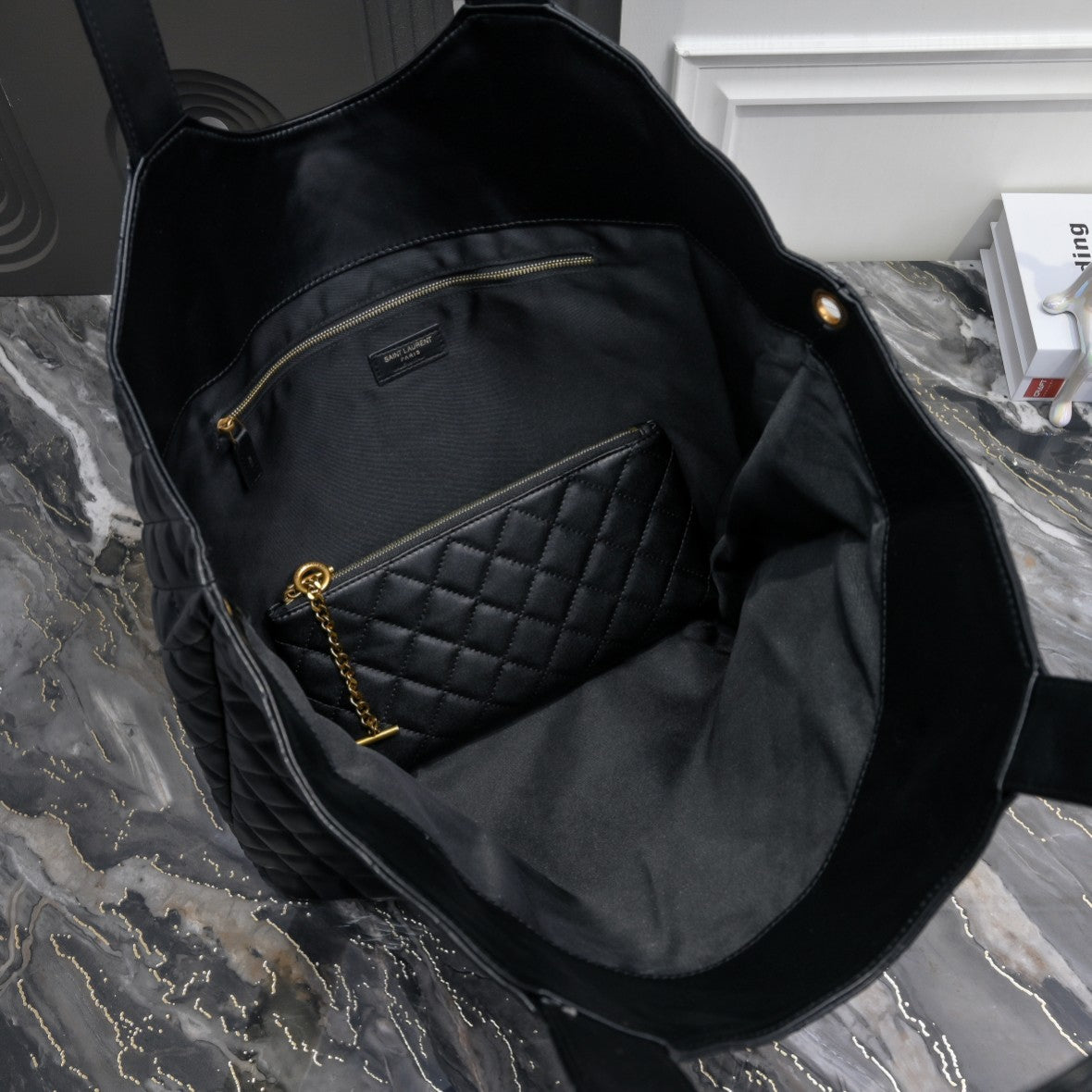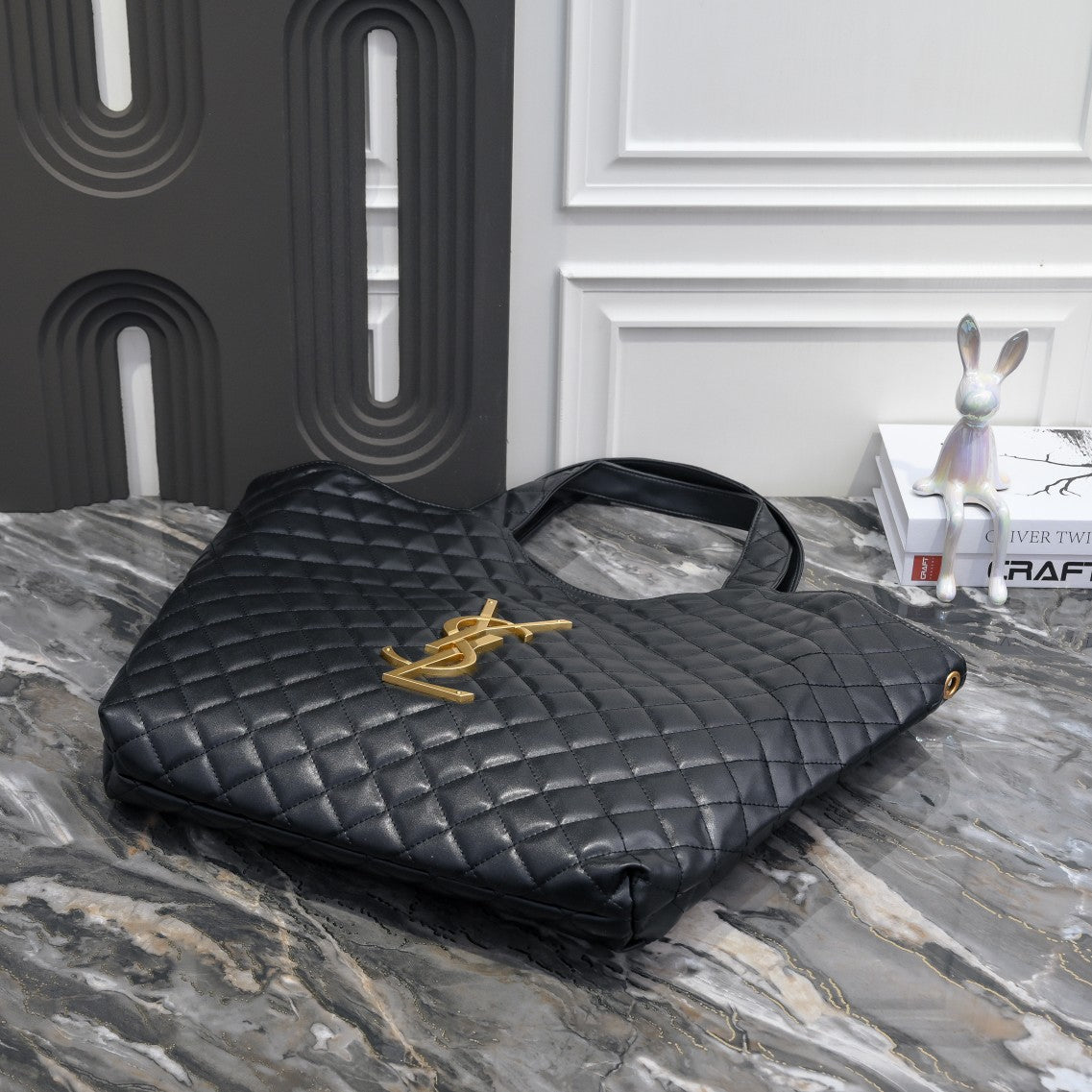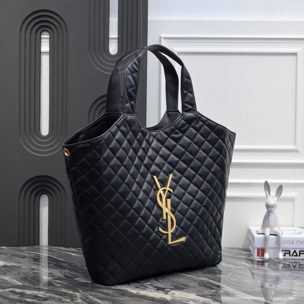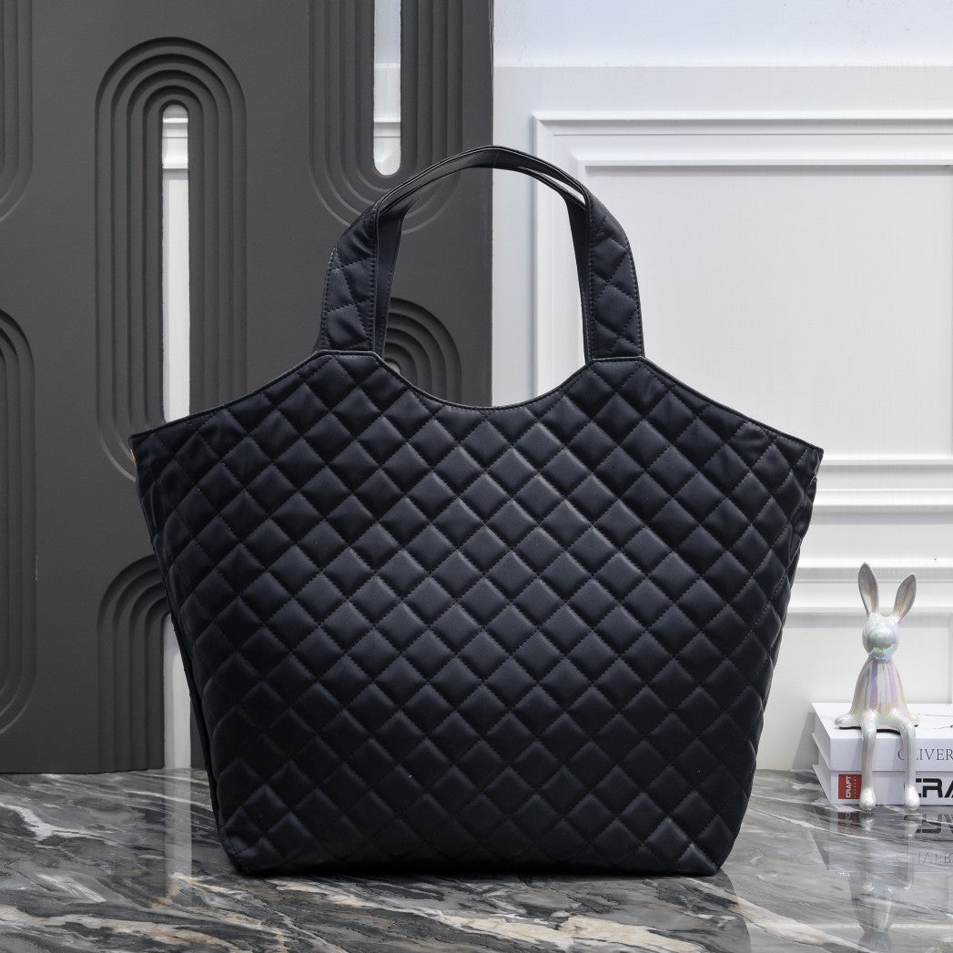 The ICARE tote bag that has taken the whole internet by storm. "Free and passionate, comfortable and cozy, elegance is you, and a laid-back attitude is also you." —— The tote bag launched by Saint Laurent in the Spring-Summer 2022 collection. The retro diamond check pattern and the craftsmanship with precise details make the ICARE truly exquisite in every detail! As the latest style, the ICARE, whether in terms of appearance, material or practicality, is sure to show different effects among bags. 🖤 It is suitable for both men and women. With its oversized logo design, the letters on the surface are in a certain shape, showing a sculptural and artistic style, which is very eye-catching and exudes a cool and sassy vibe. It really amazed me.
