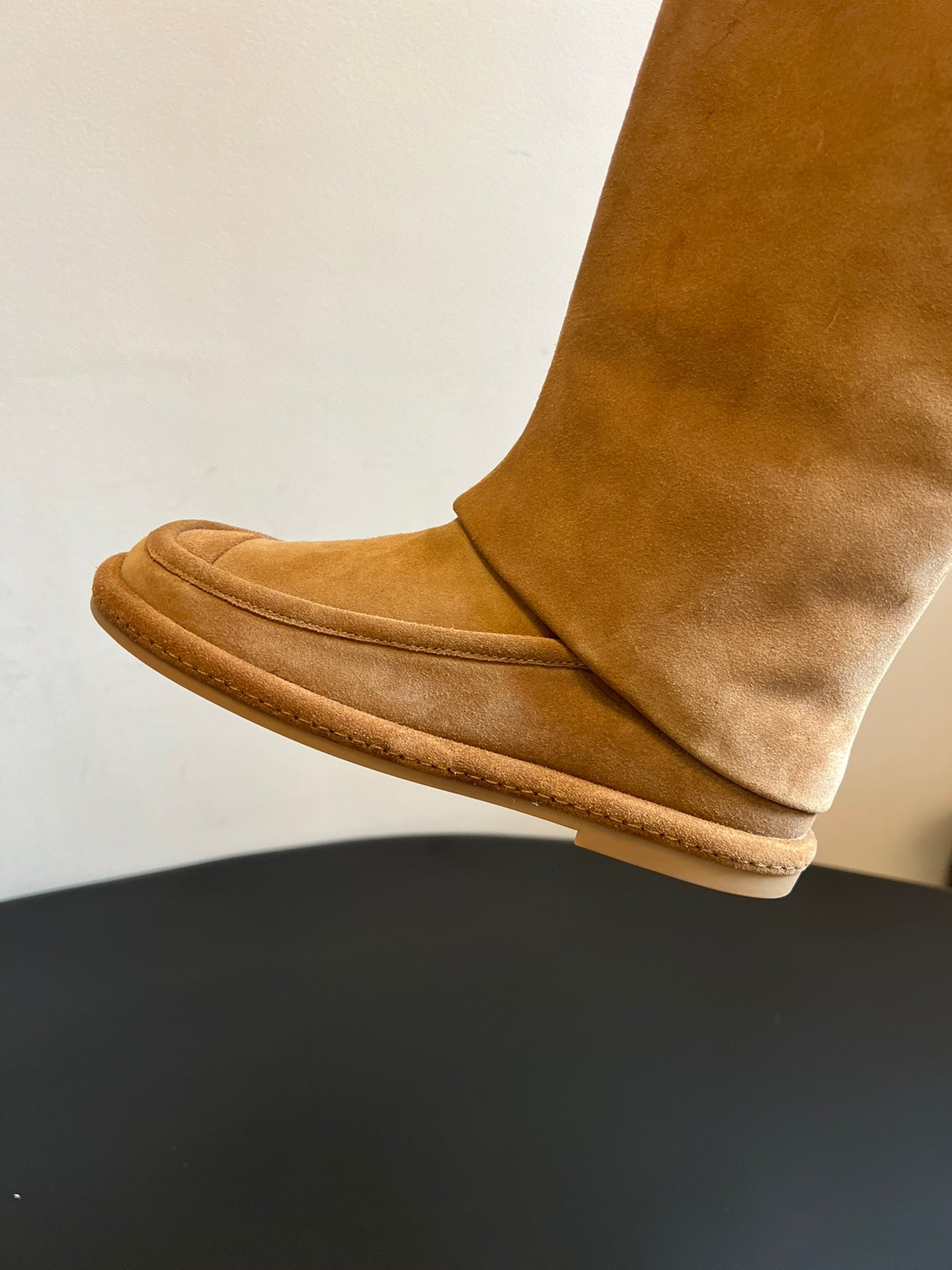 Try pairing them with shorts and socks, revealing a portion of the boot for a trendy "missing bottom" look. With their versatile earth tones and vintage suede material, these boots easily complement any fall/winter look, creating a unique and stylish atmosphere for both casual and formal occasions.