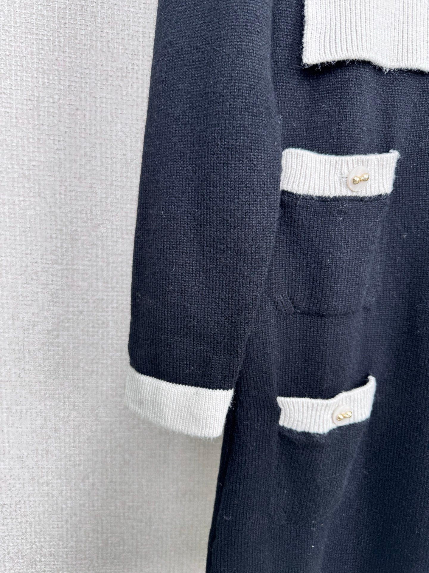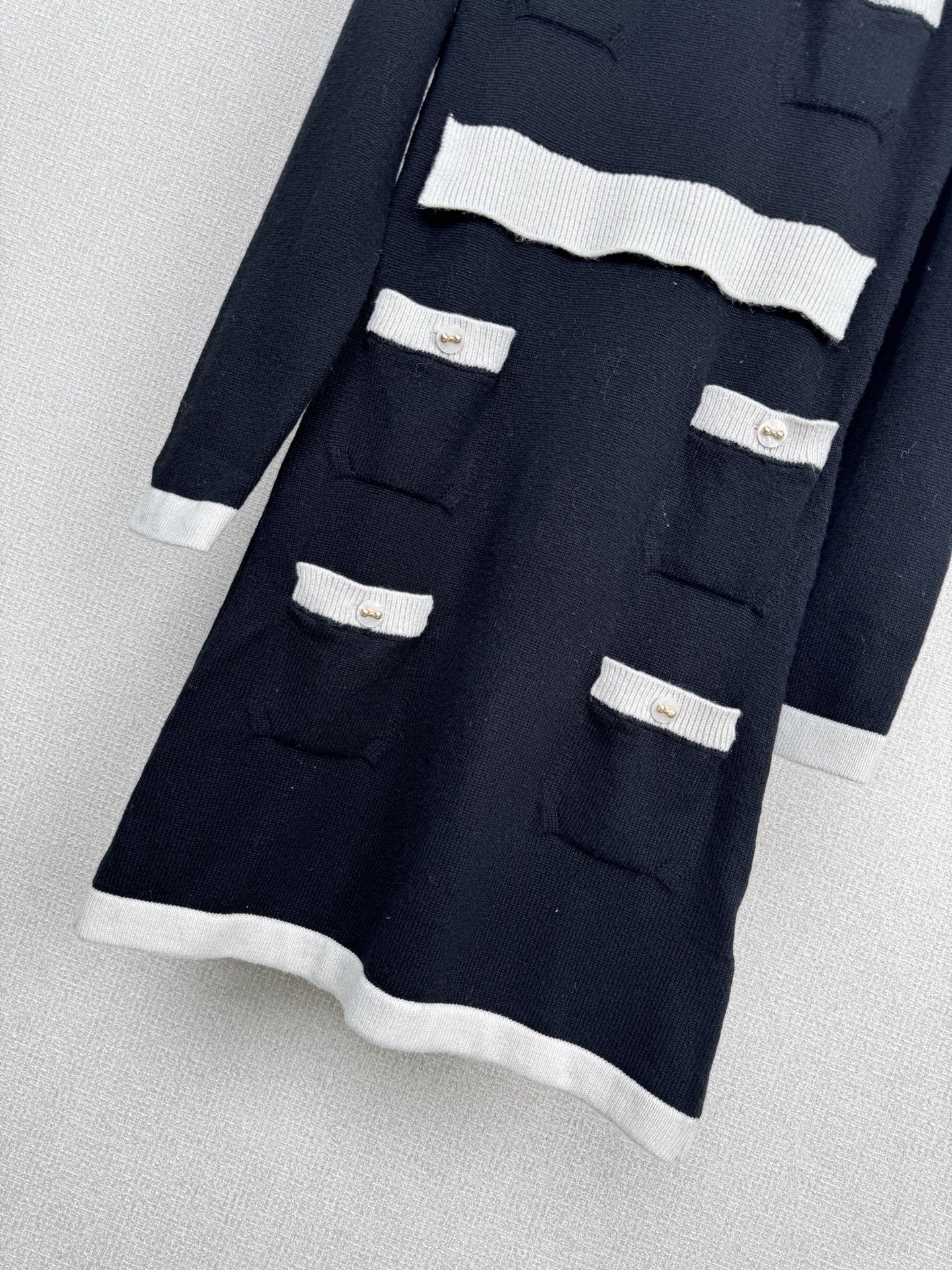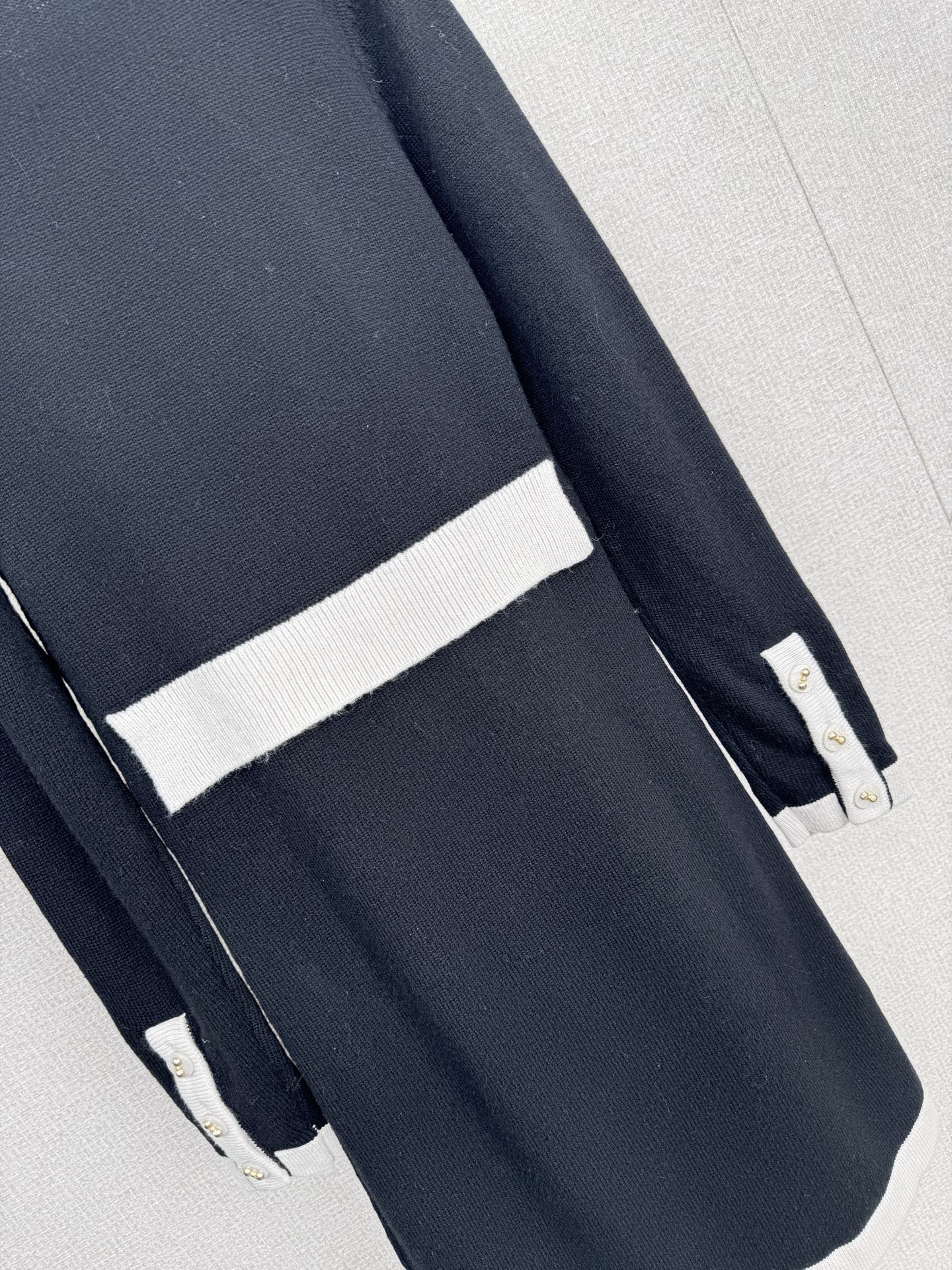 Chanel's new Fall/Winter 2025 black and white knit skirt. This Chanel 25K series black and white knit skirt features a classic contrasting design with off-white and black trims, embodying French elegance. The soft and delicate knit fabric forms a close-fitting silhouette, while the cuffs and pockets are accented with metal buttons for a touch of detail. The loose hem makes it incredibly comfortable for fall and winter, perfect for wearing alone or layered with a jacket. It offers a relaxed yet sophisticated look, perfect for commuting or relaxing, and effortlessly captures Chanel's effortless sophistication. Sizes S-M-L