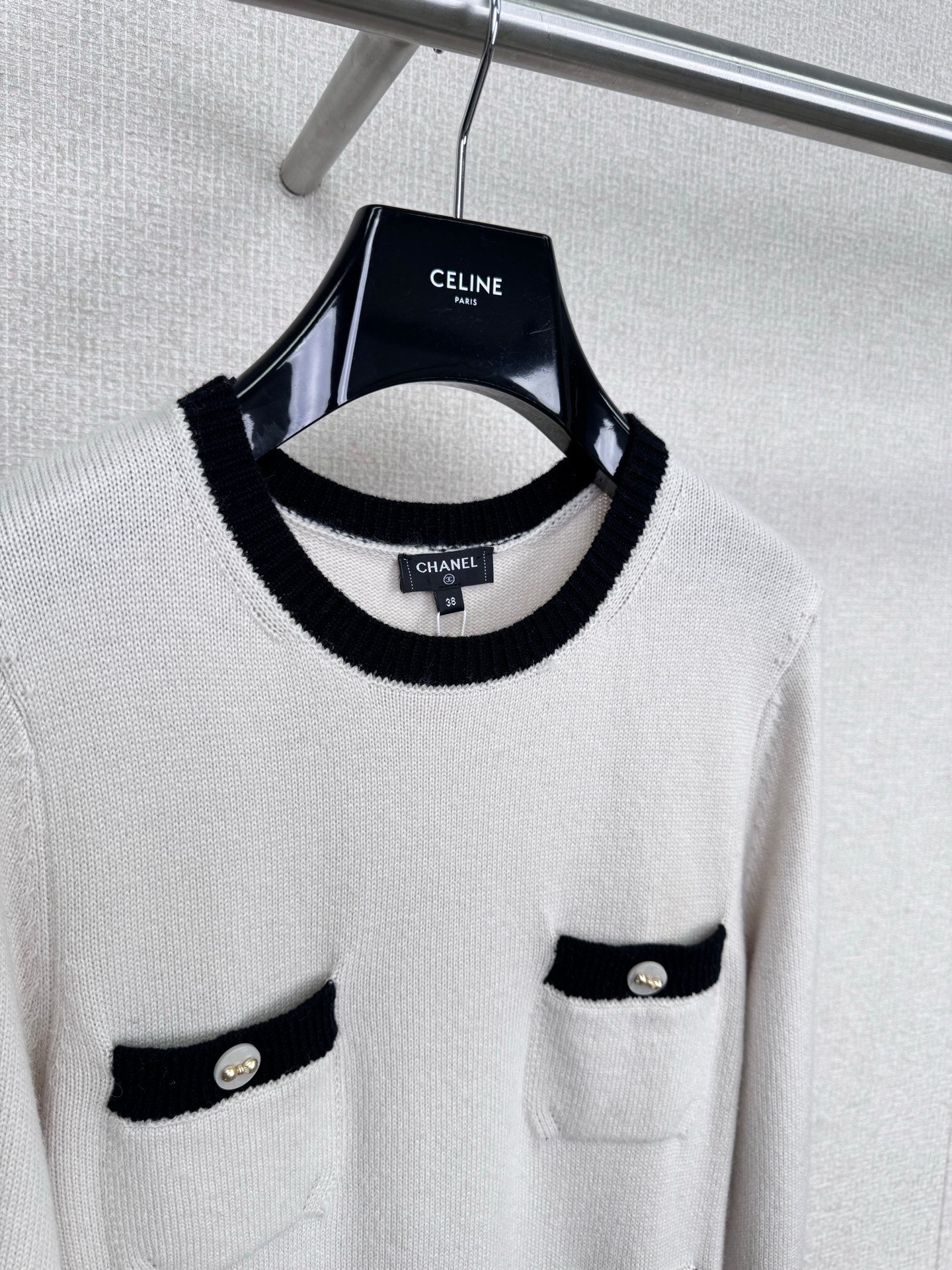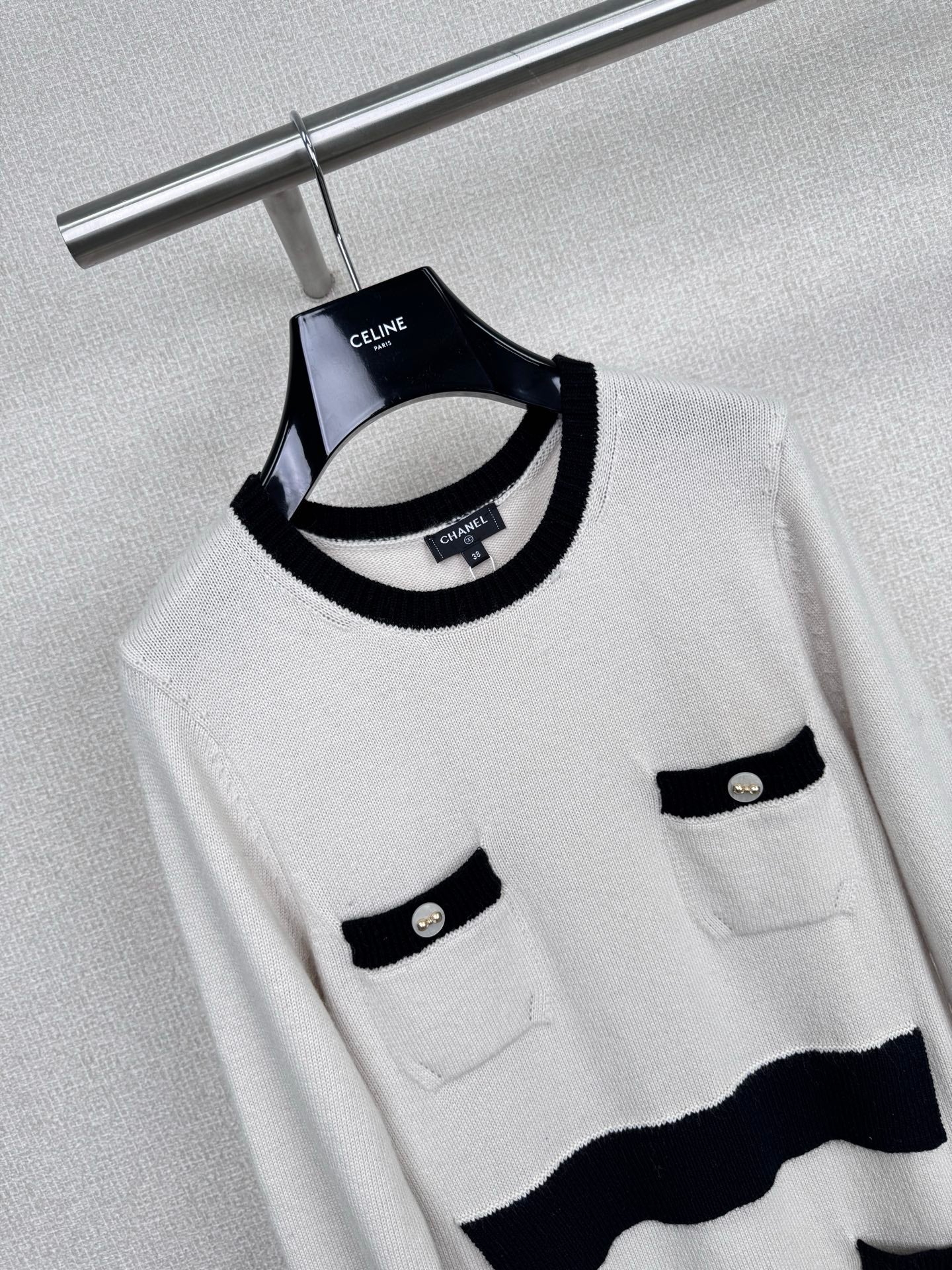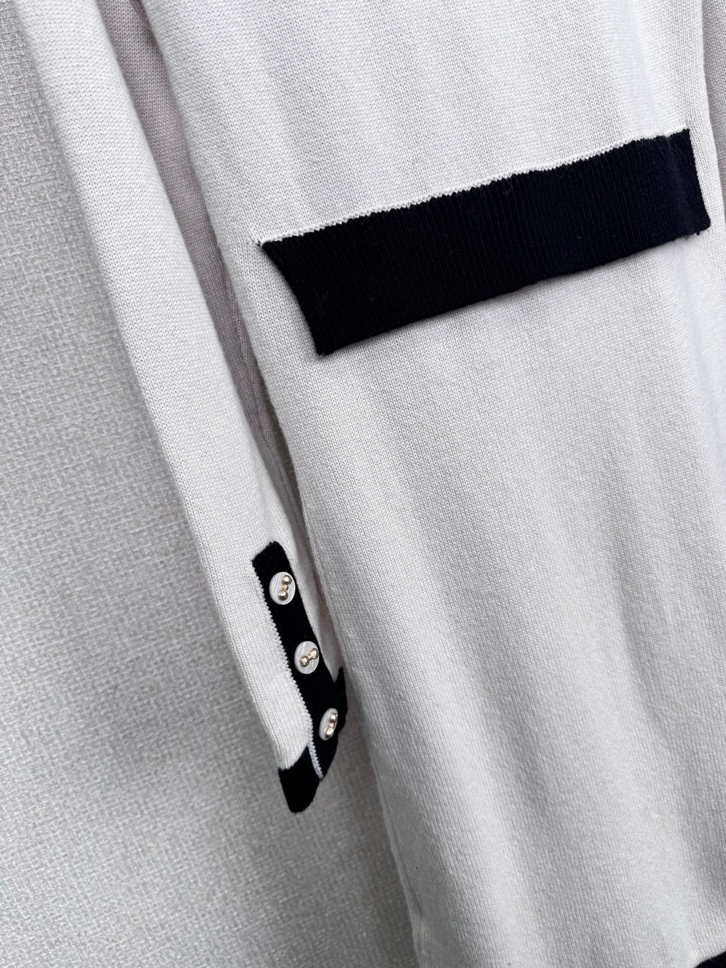 Chanel's new Fall/Winter 2025 black and white knit skirt. This Chanel 25K series black and white knit skirt features a classic contrasting design with off-white and black trims, embodying French elegance. The soft and delicate knit fabric forms a close-fitting silhouette, while the cuffs and pockets are accented with metal buttons for a touch of detail. The loose hem makes it incredibly comfortable for fall and winter, perfect for wearing alone or layered with a jacket. It offers a relaxed yet sophisticated look, perfect for commuting or relaxing, and effortlessly captures Chanel's effortless sophistication. Sizes S-M-L