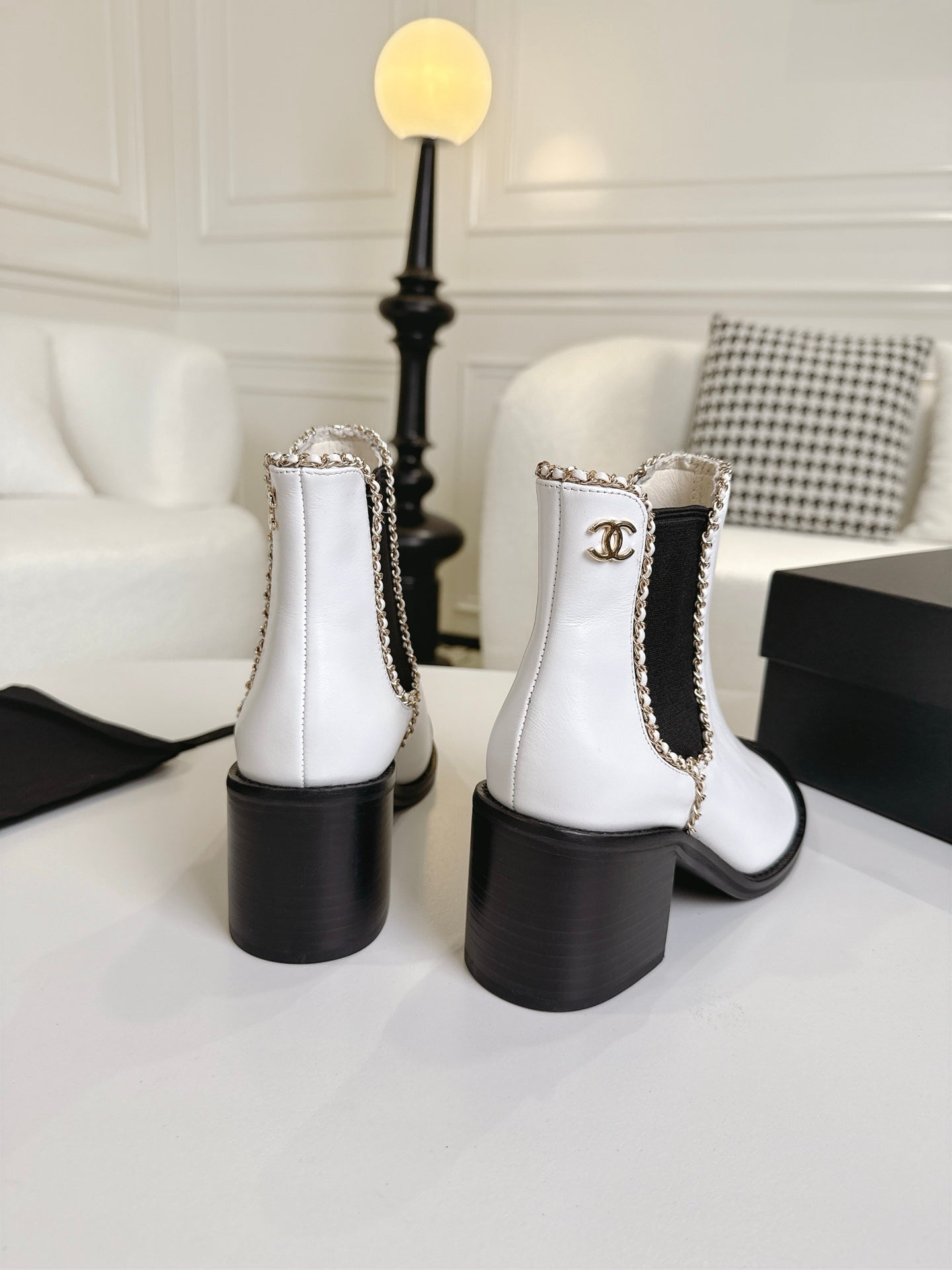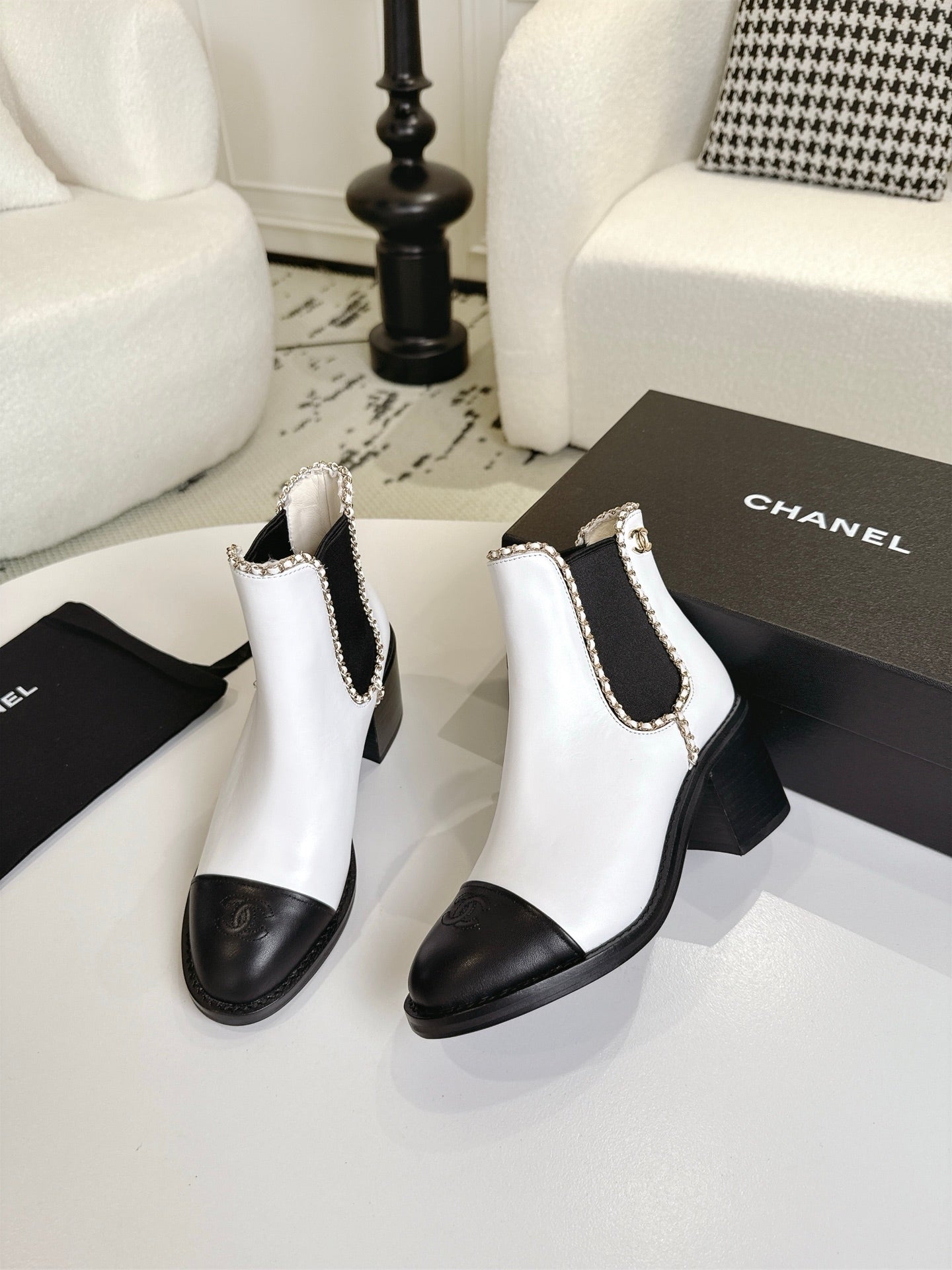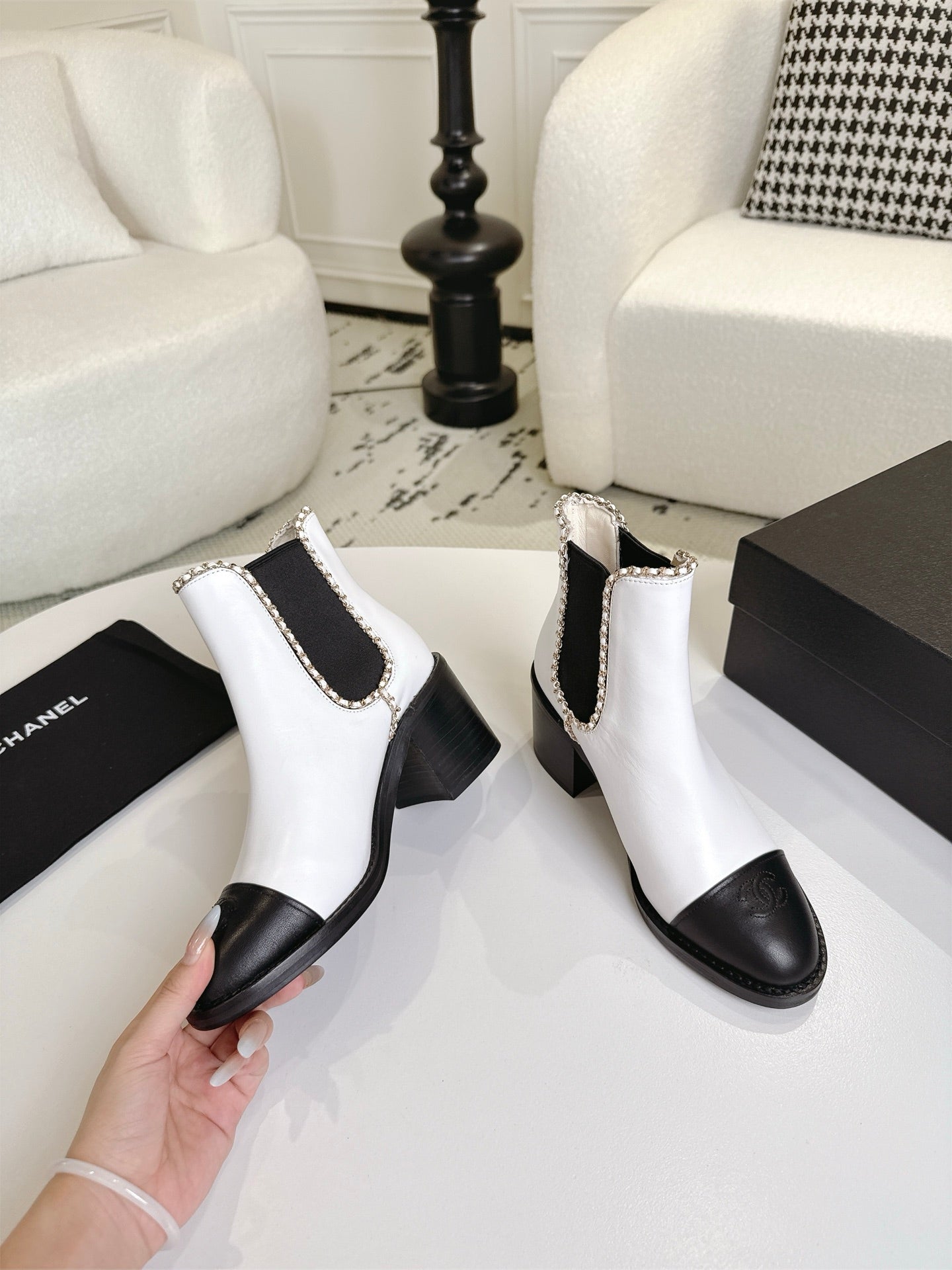 Chanel 25ss new fall/winter high-heeled chain elastic ankle boots ‼ ️