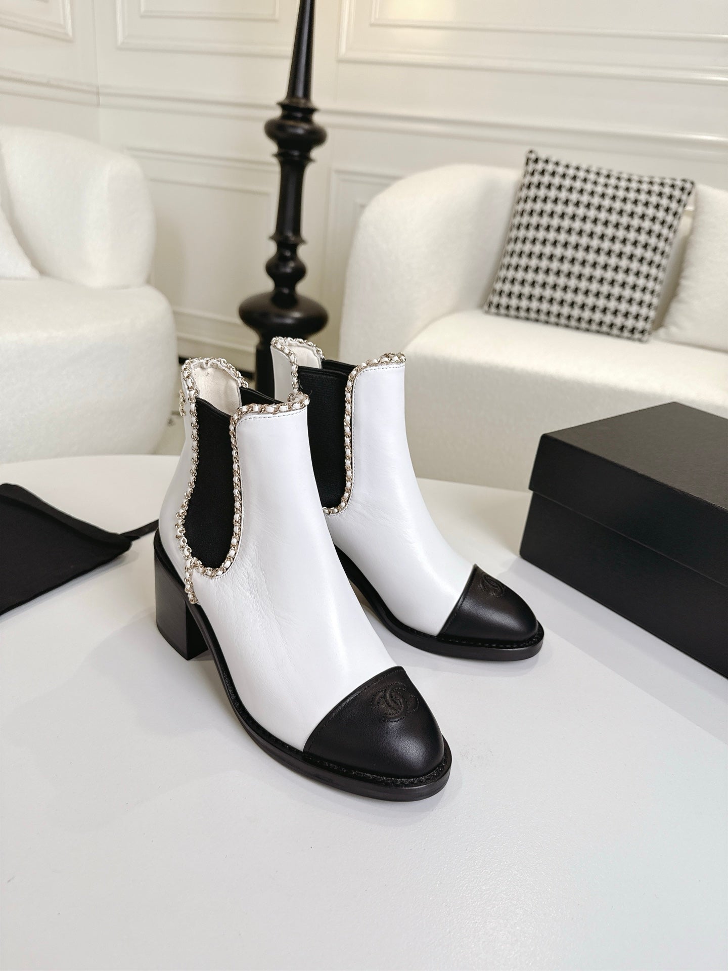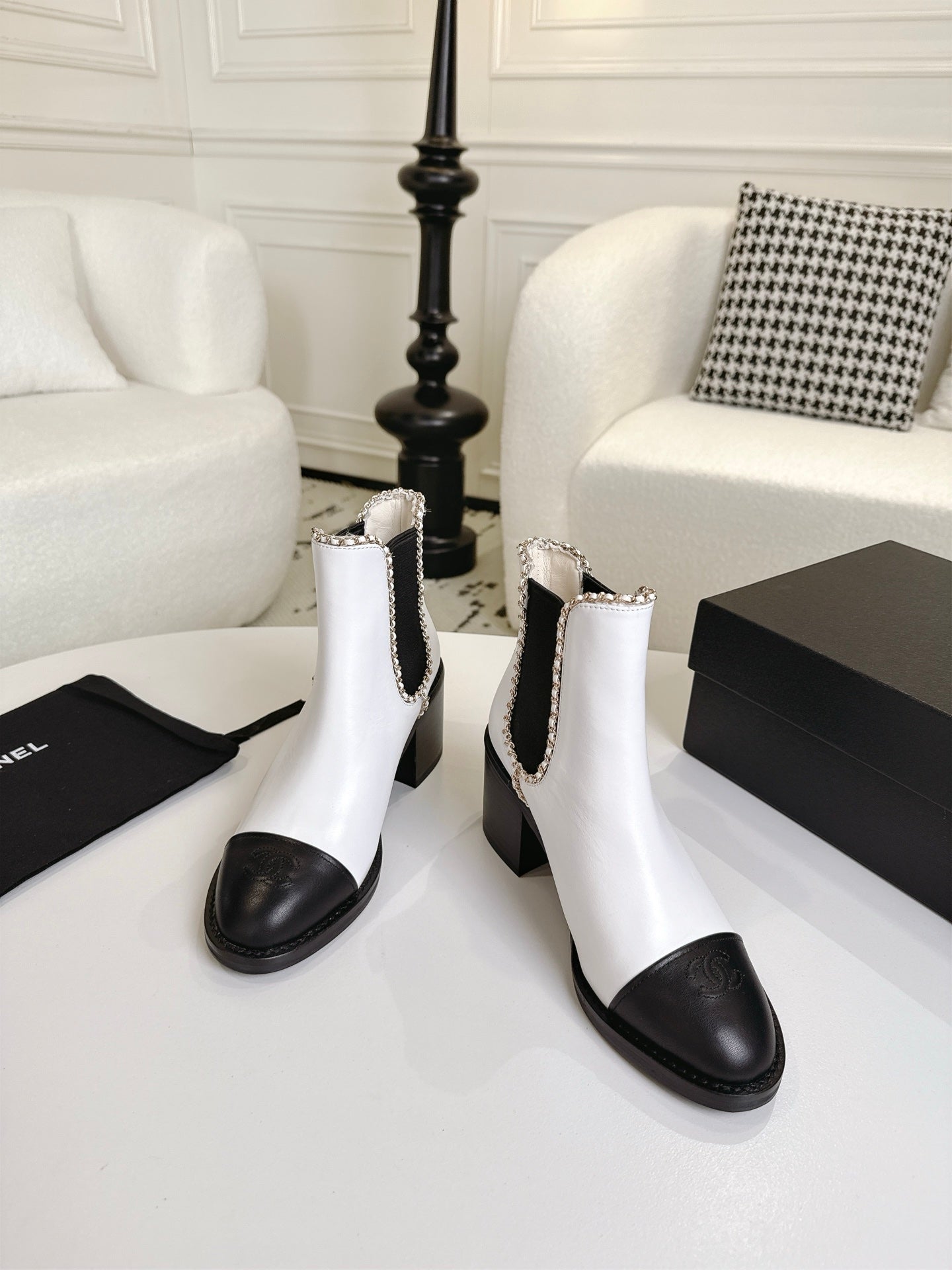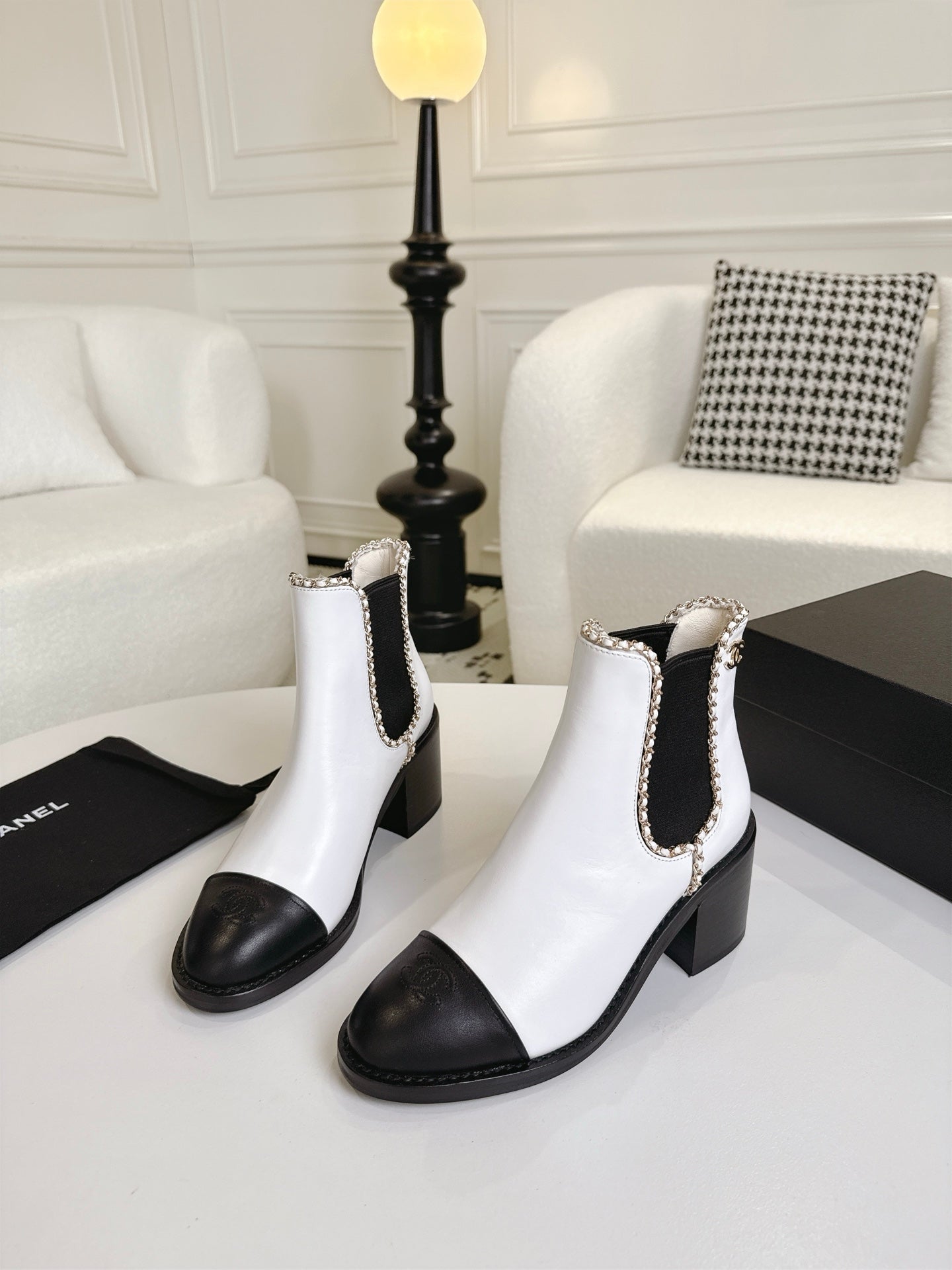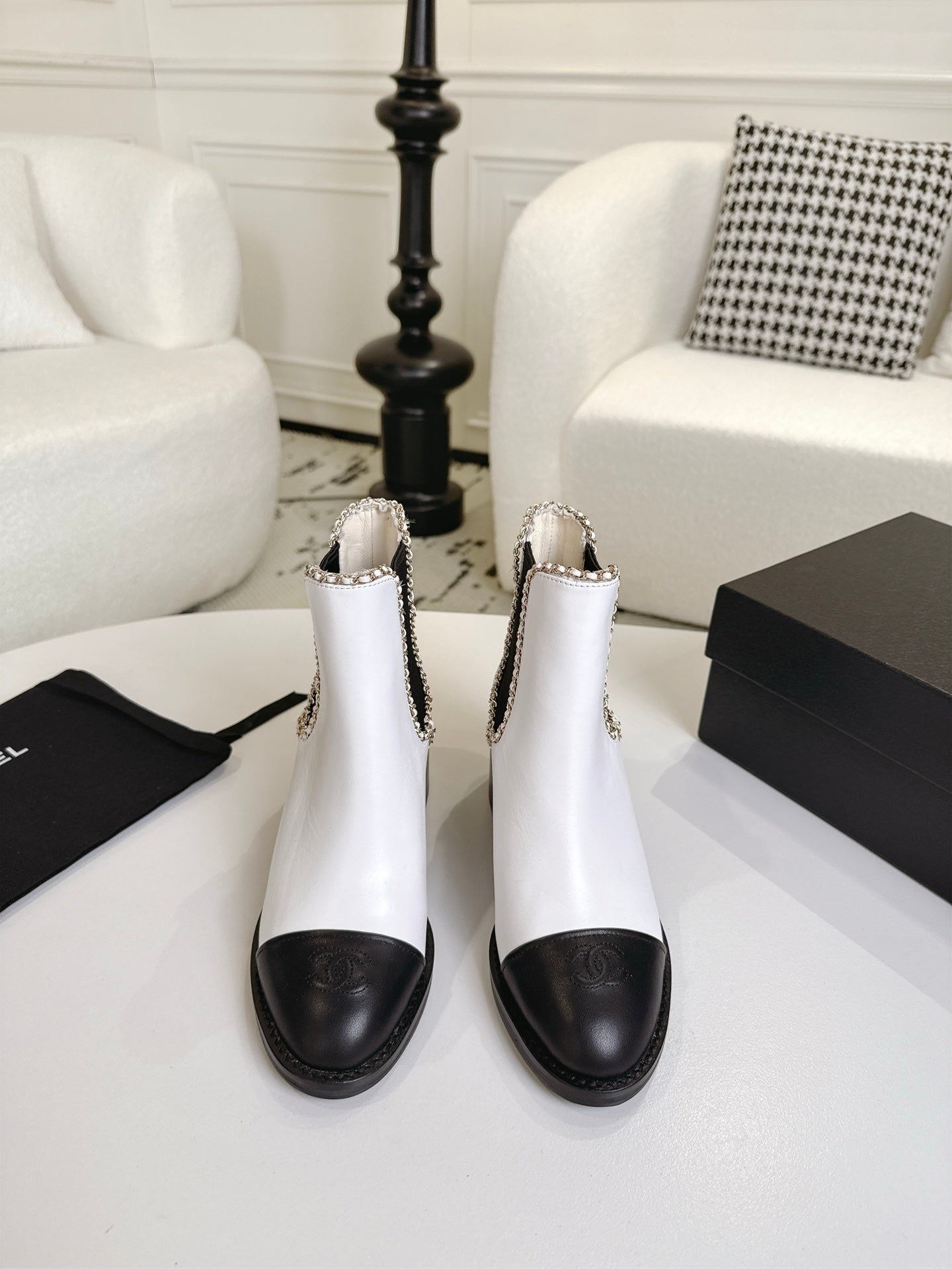 Chanel 25ss new fall/winter high-heeled chain elastic ankle boots ‼ ️