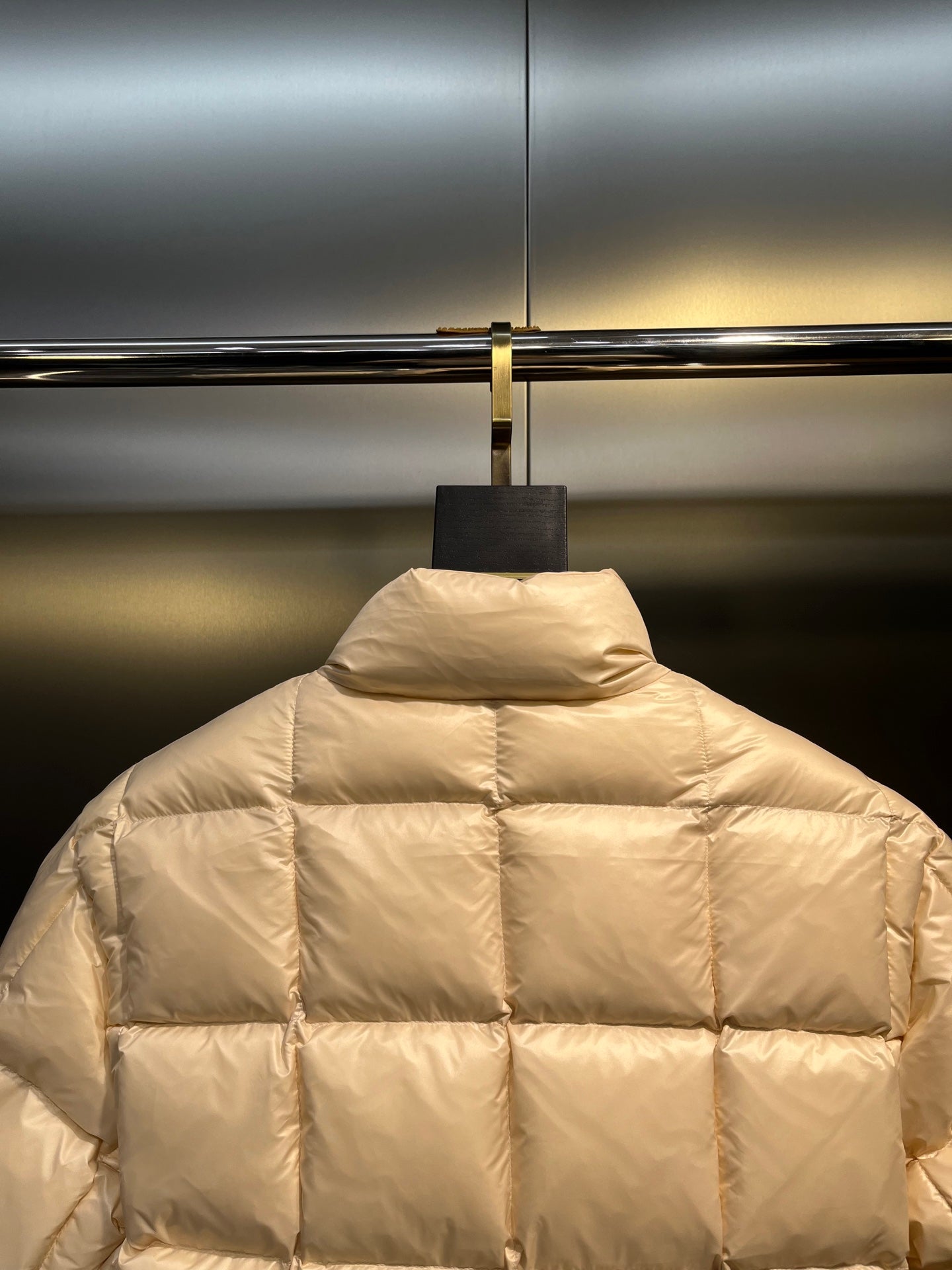 ·Cropped style·Goose down lining·Stand collar·Long sleeves