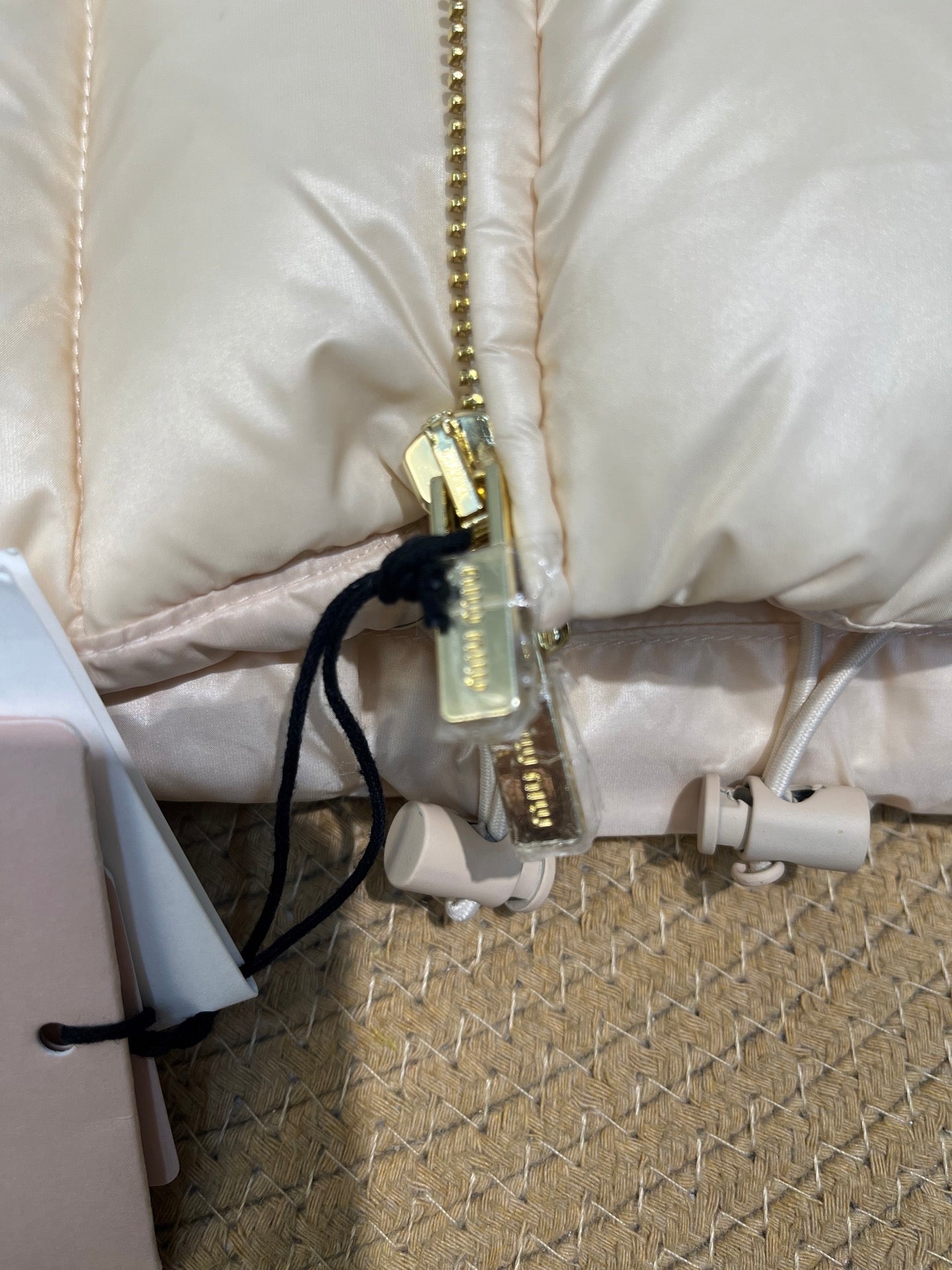 ·Zippered welt pockets·Elastic drawstring hem·Printed logo