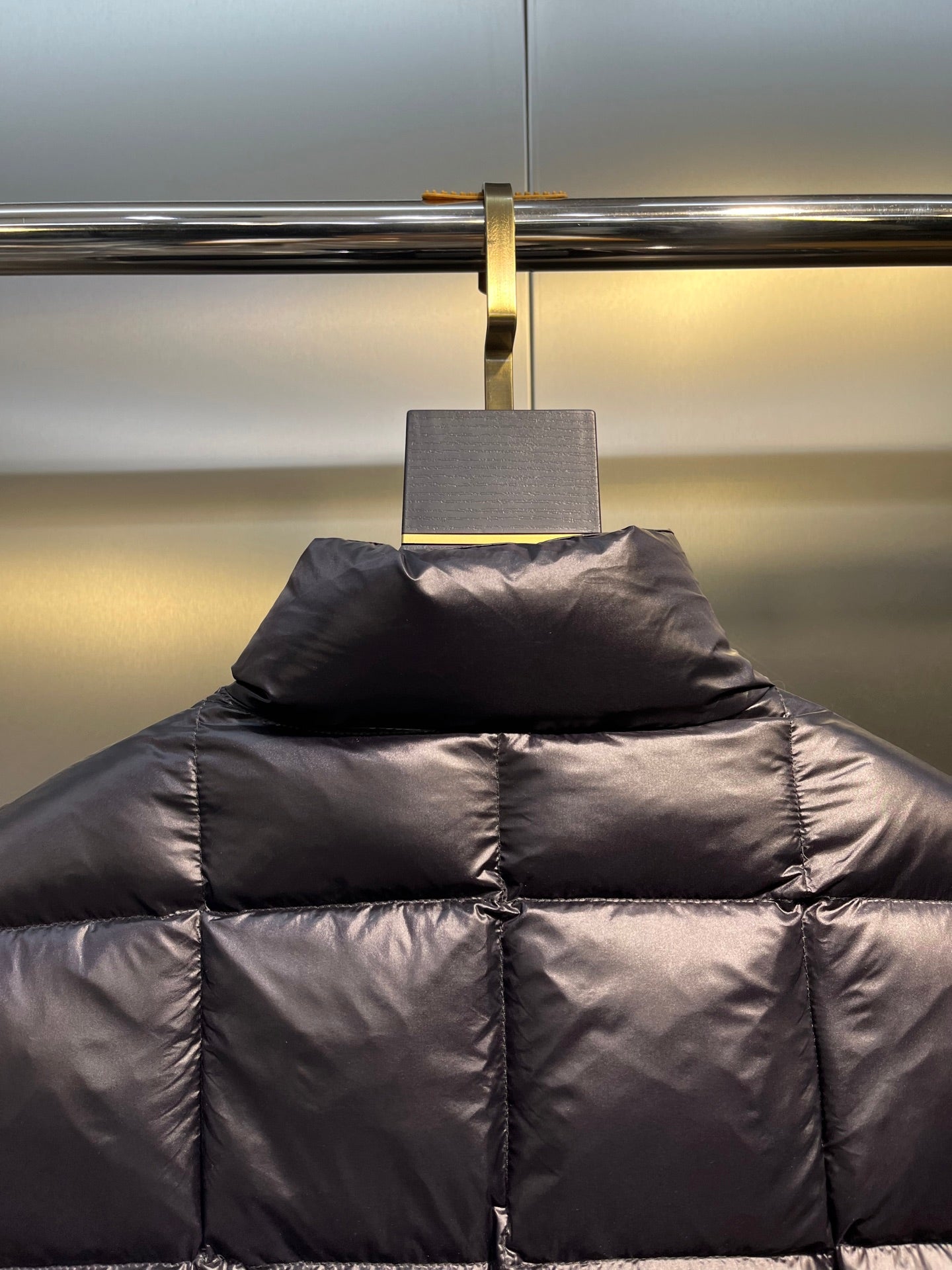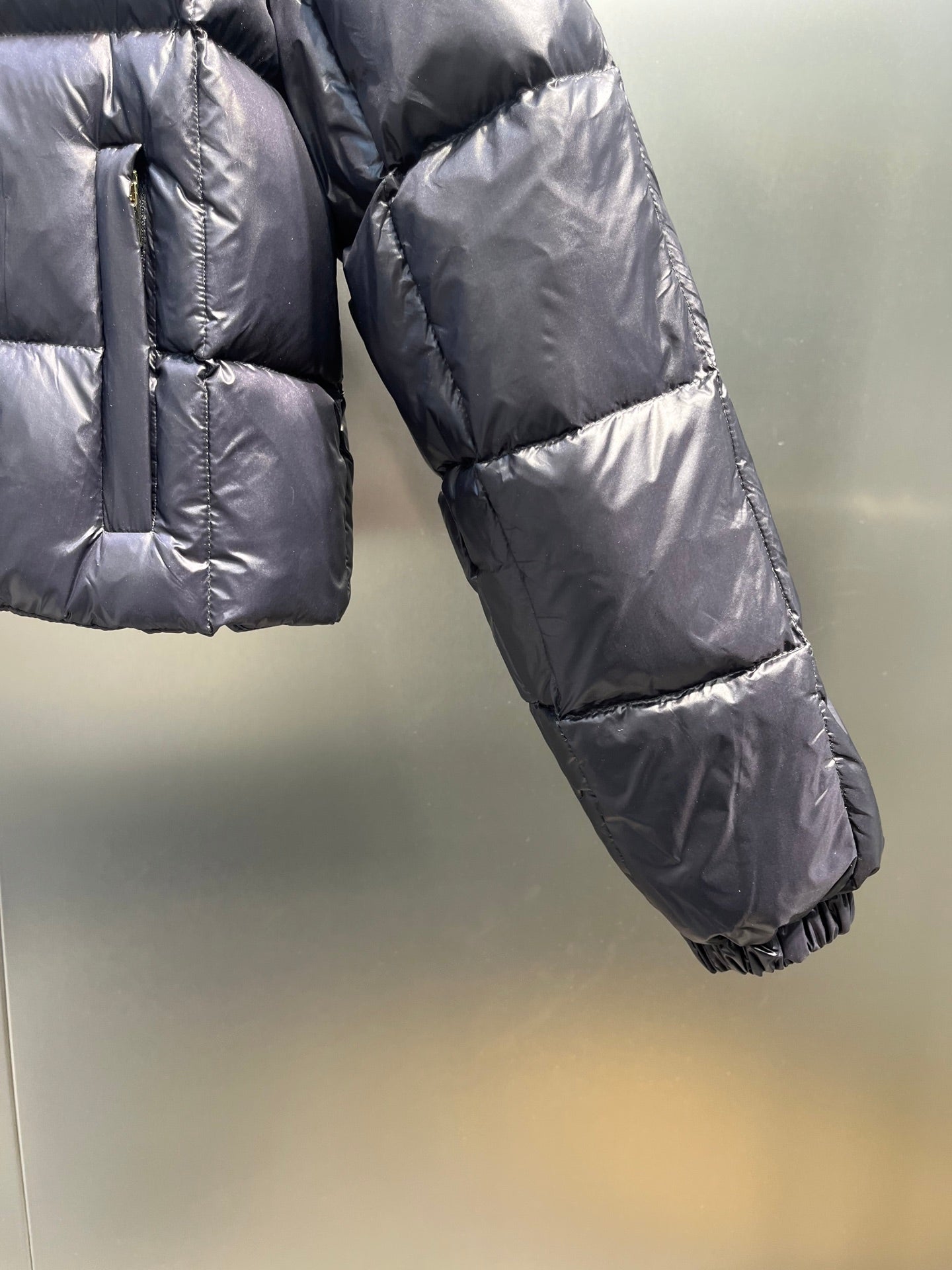 ·Cropped style·Goose down lining·Stand collar·Long sleeves