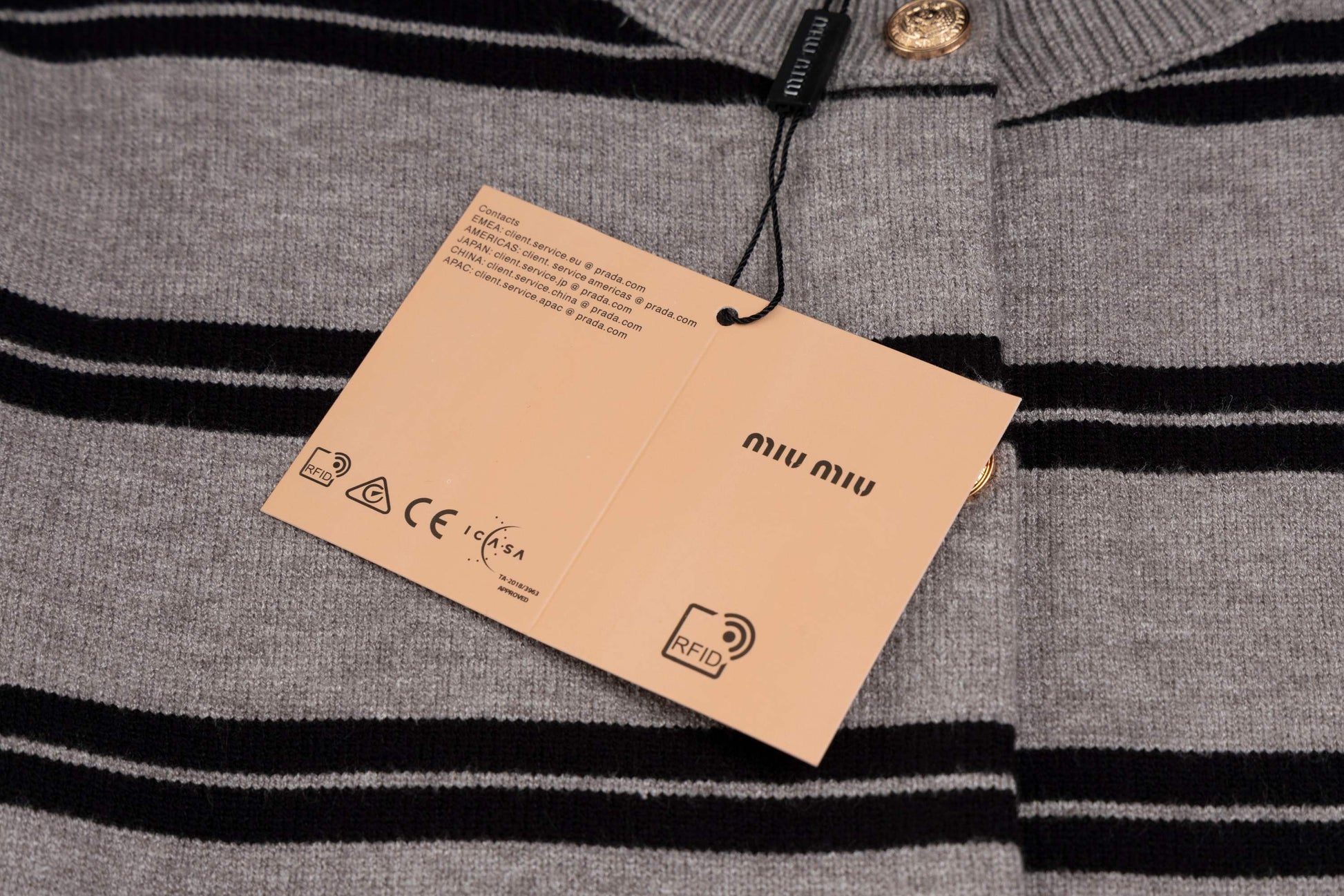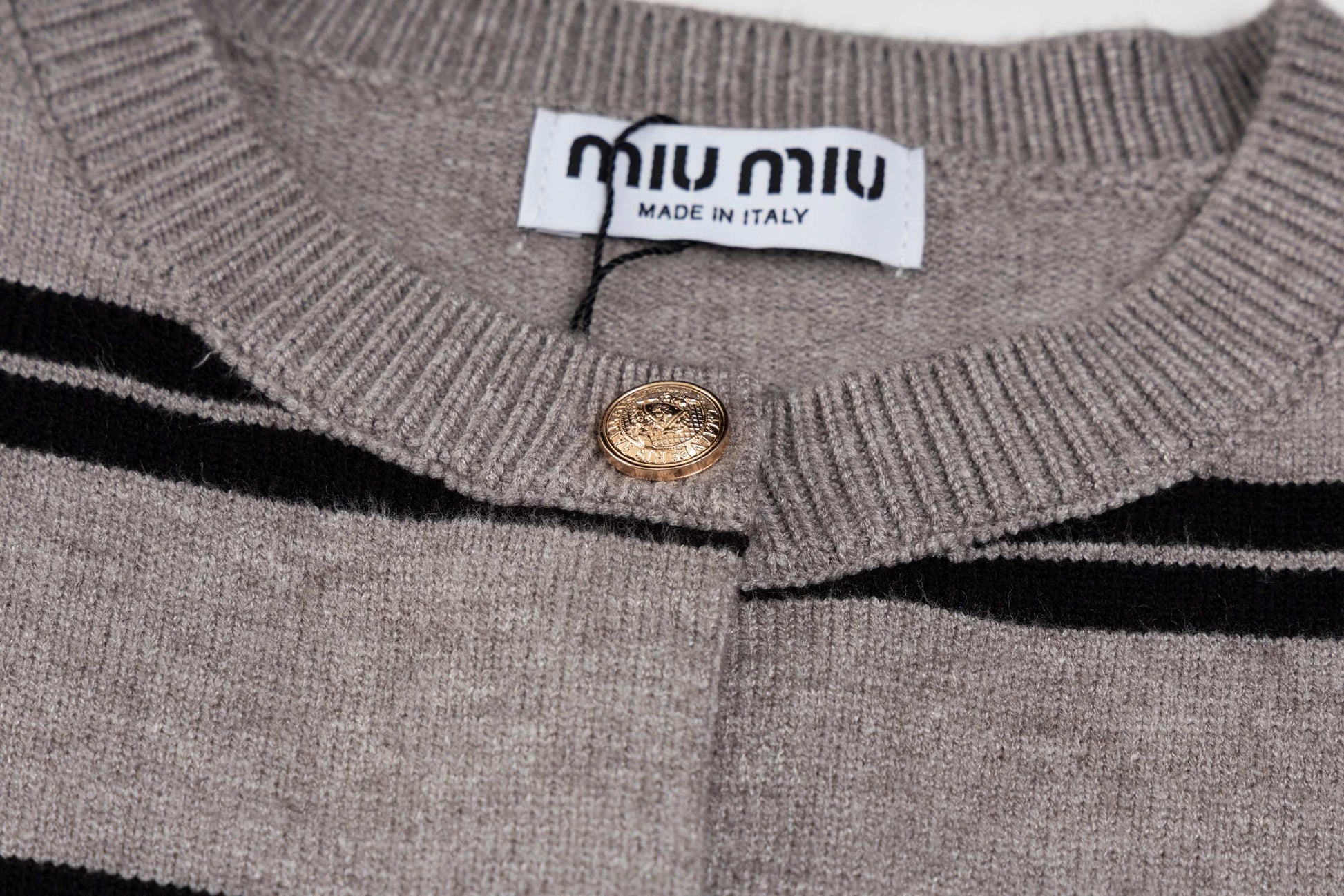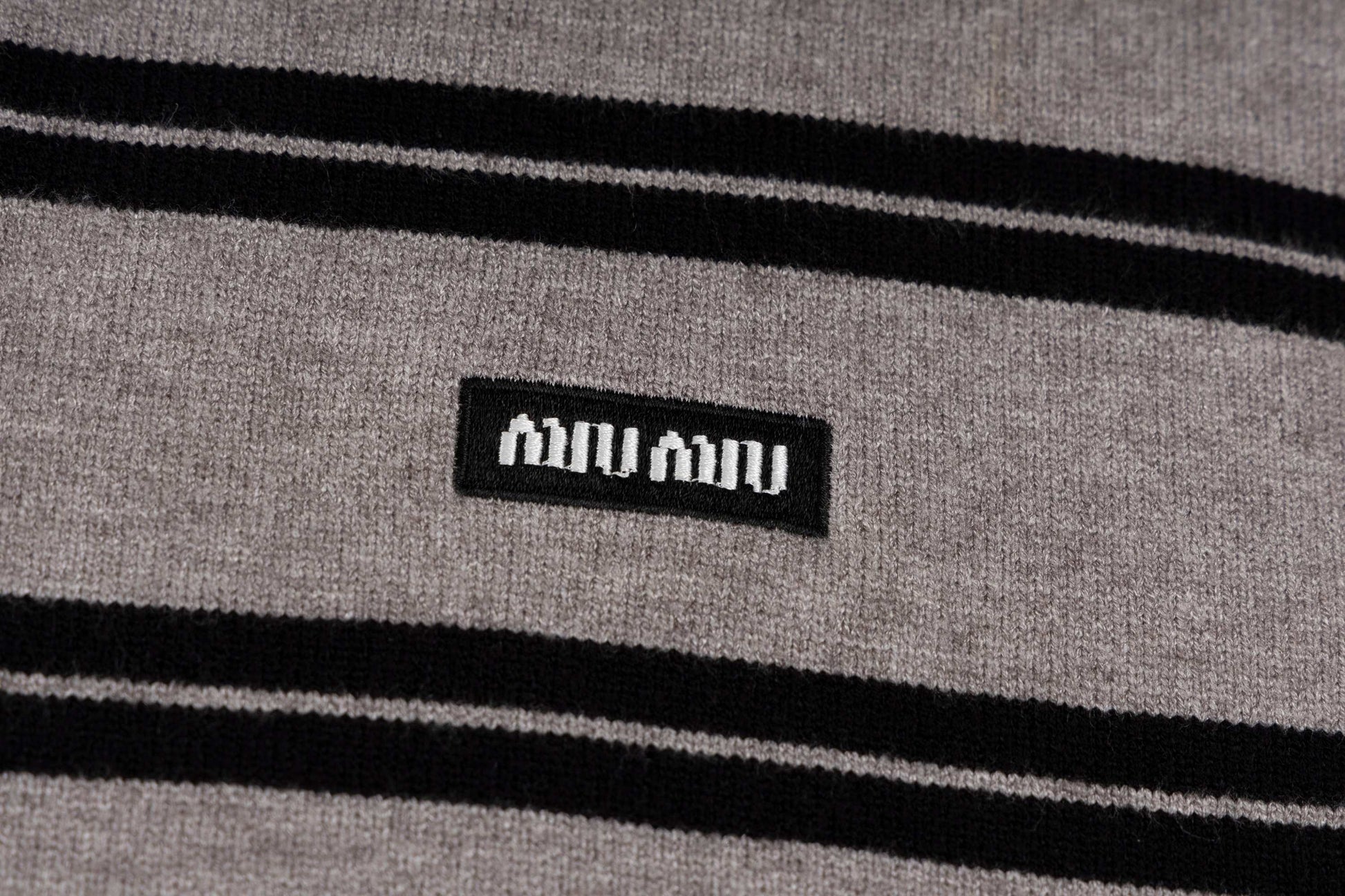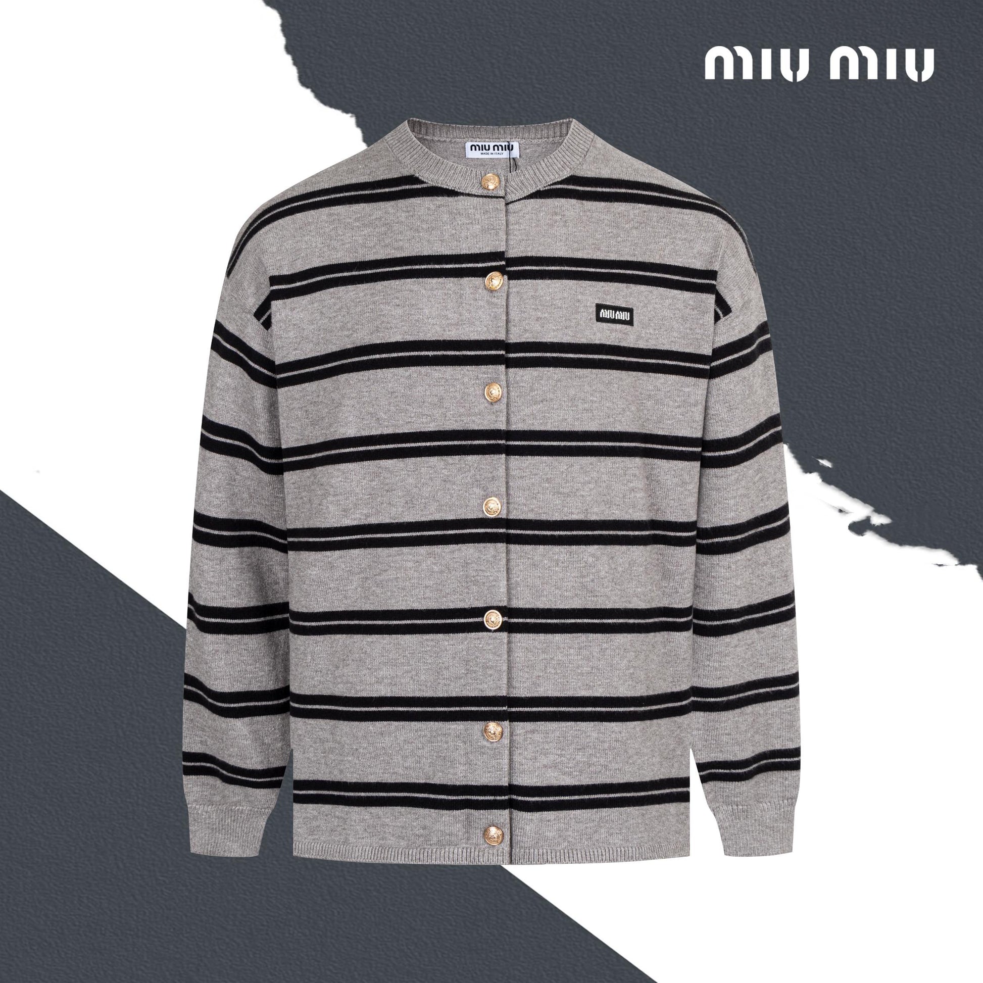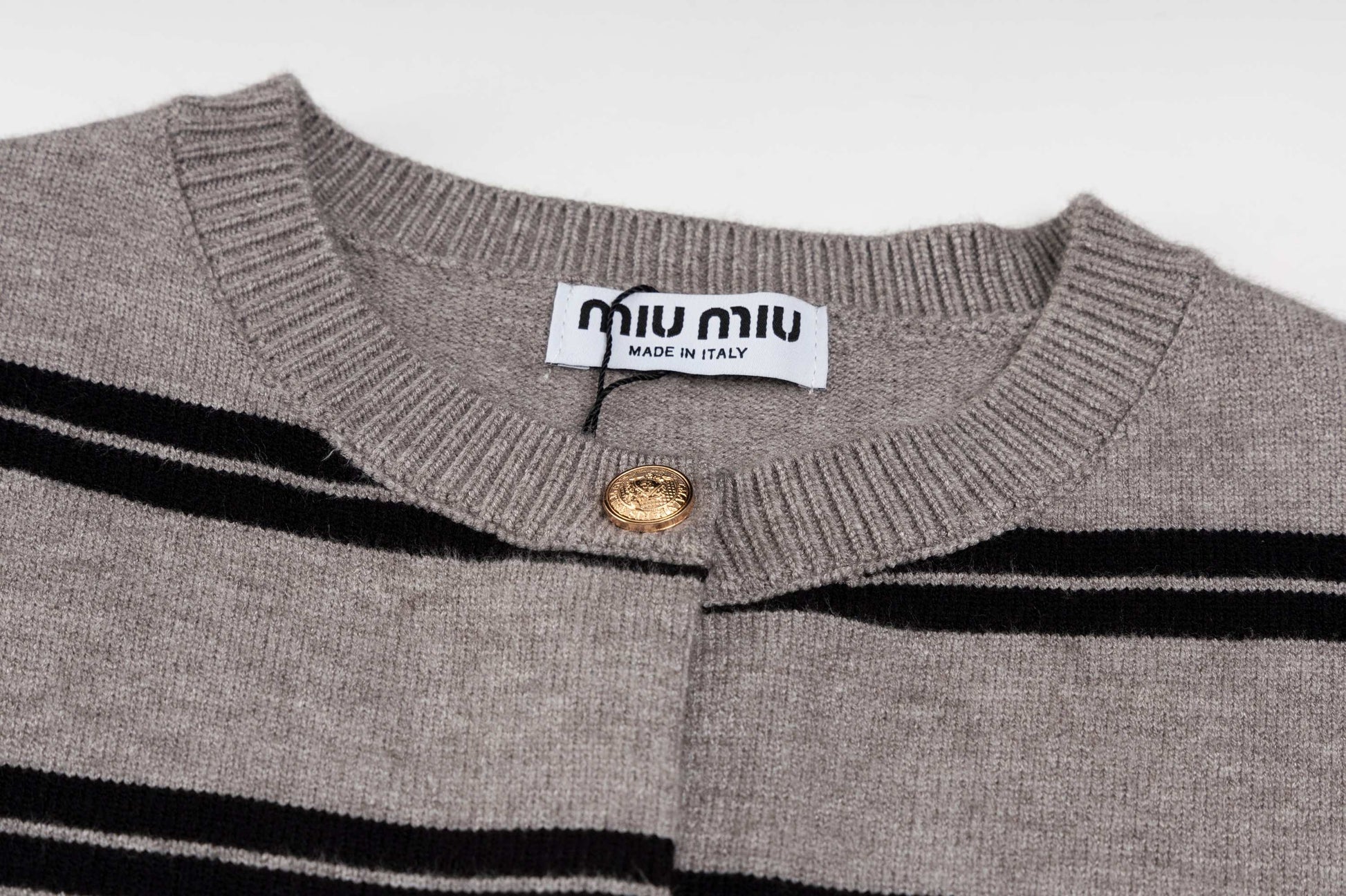 MIUMIU Striped Knit Cardigan Sweater with Small Embroidered Logo