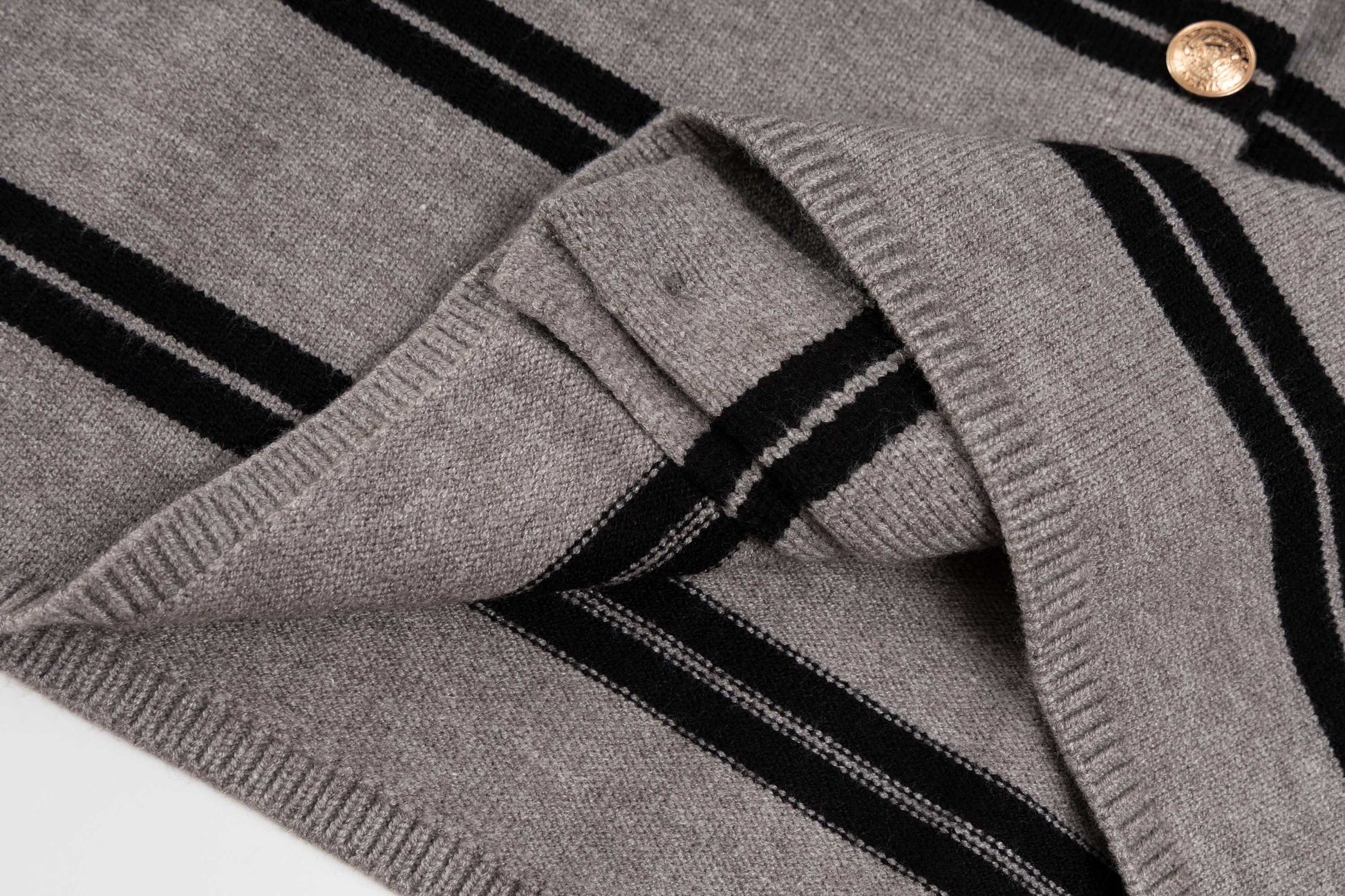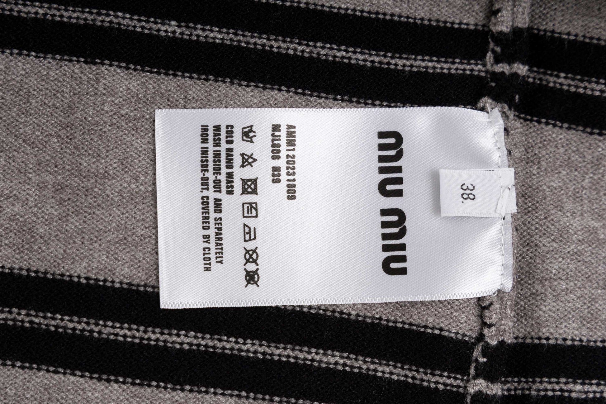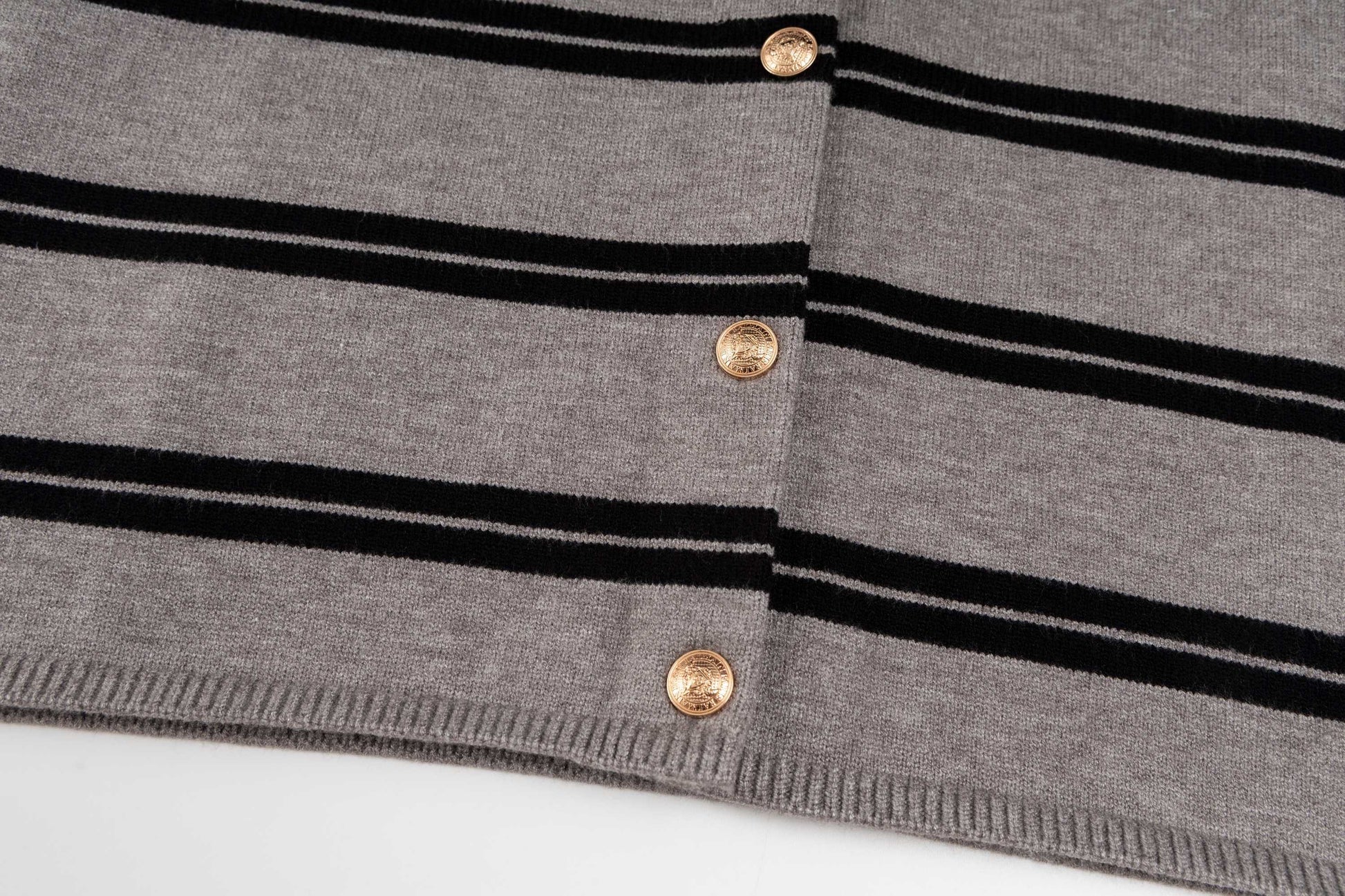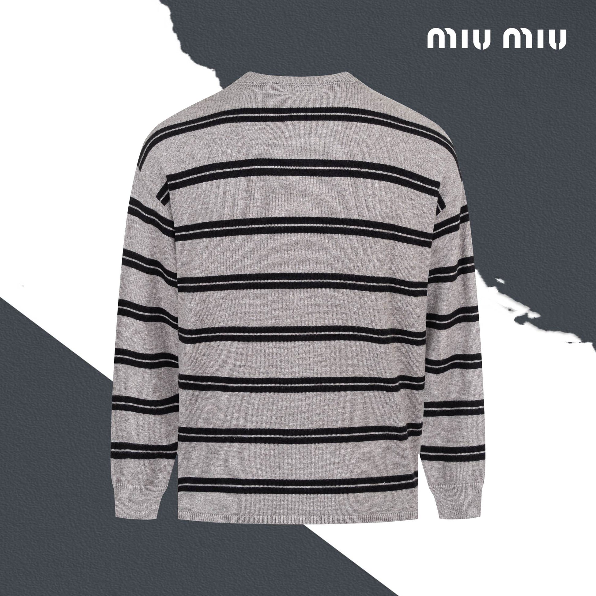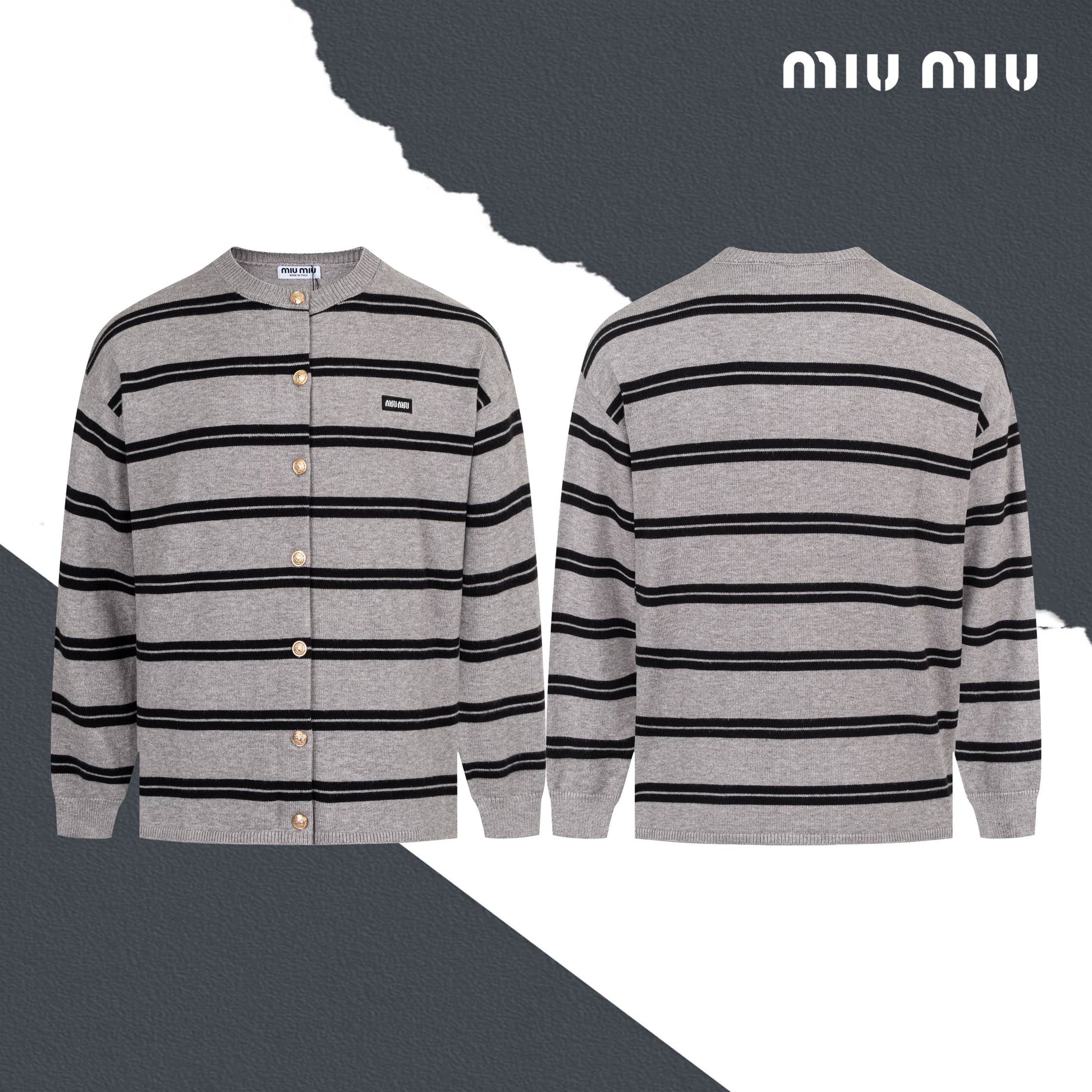 MIUMIU Striped Knit Cardigan Sweater with Small Embroidered Logo