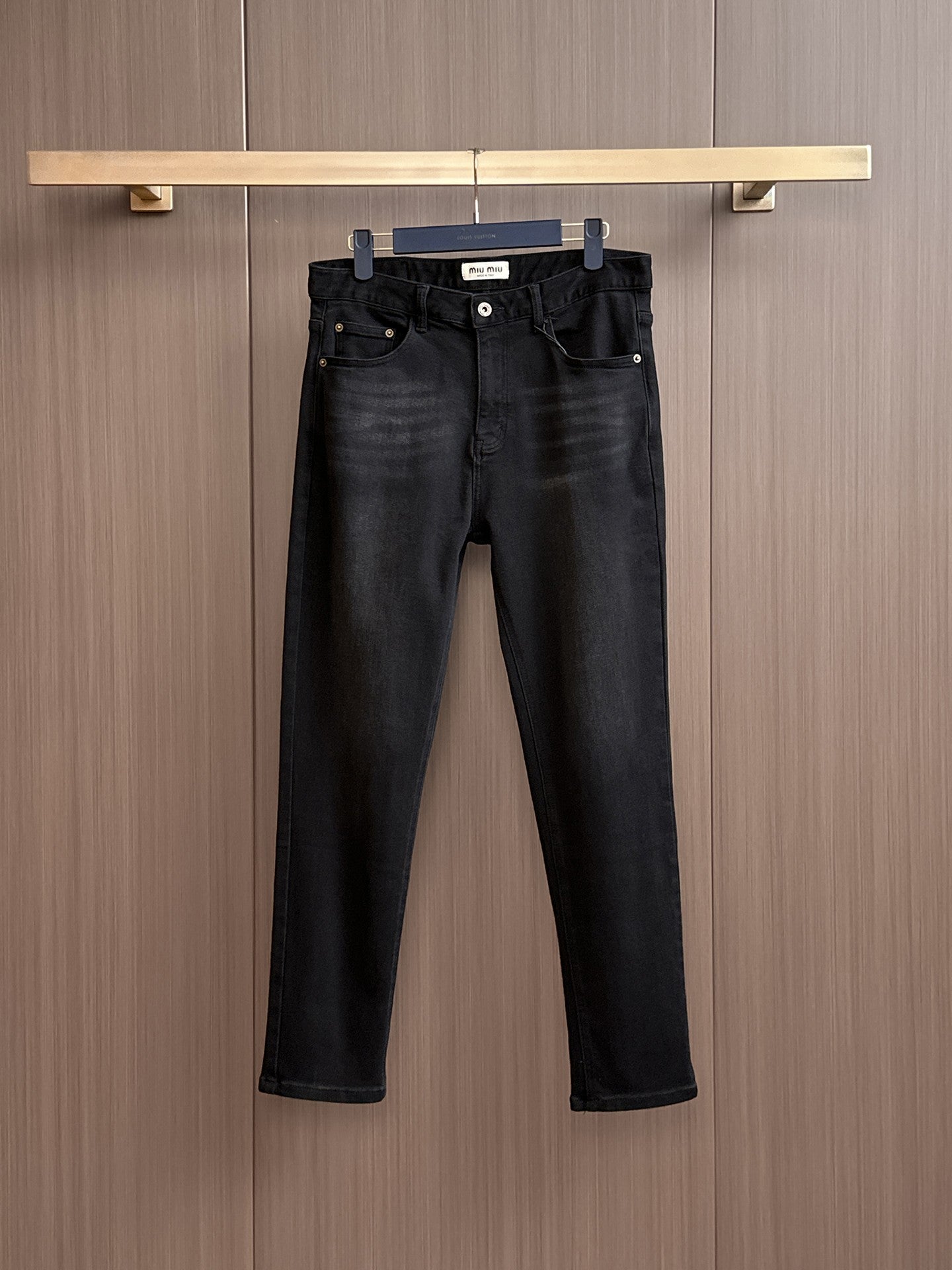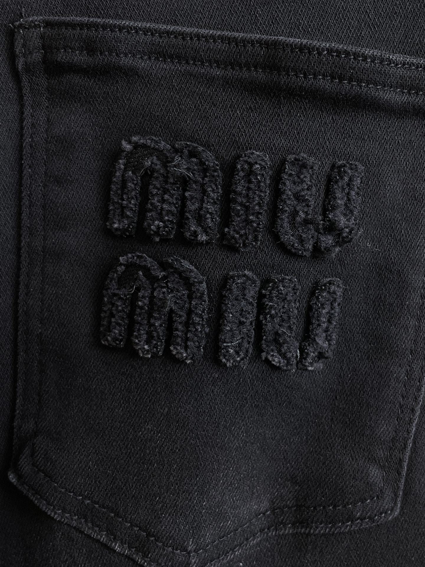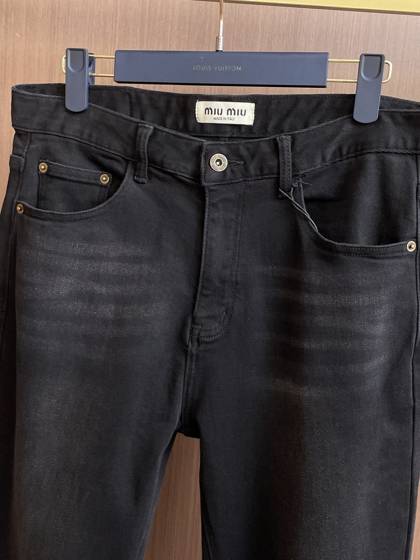 MiuMiu SS autumn/winter new arrival, original washed high-cut jeans. Original design, high-end quality, easy comparison. Customized hardware logo, embroidered with premium craftsmanship. Soft and resilient denim fabric. Fitted to the curves of the leg. Comfortable and stylish. A must-have for trendy men.