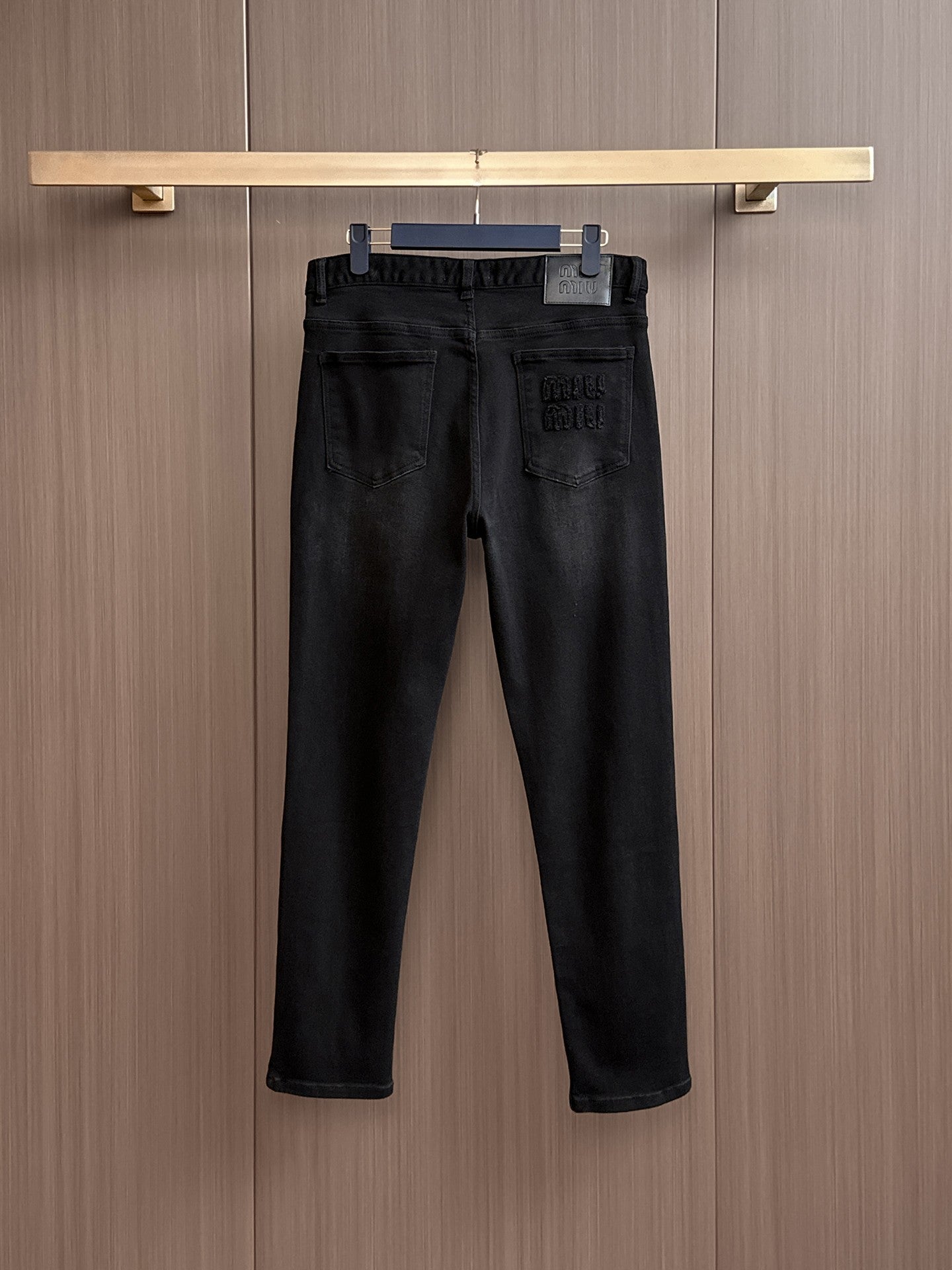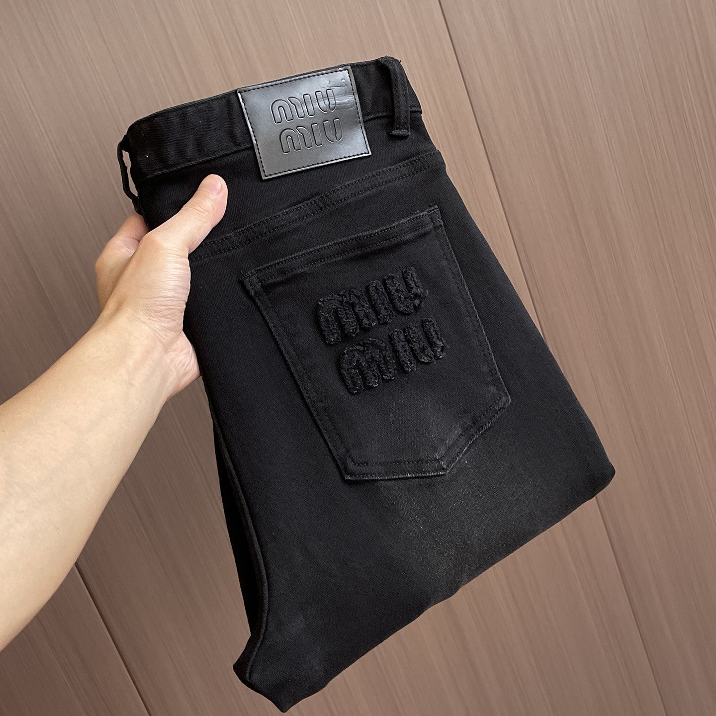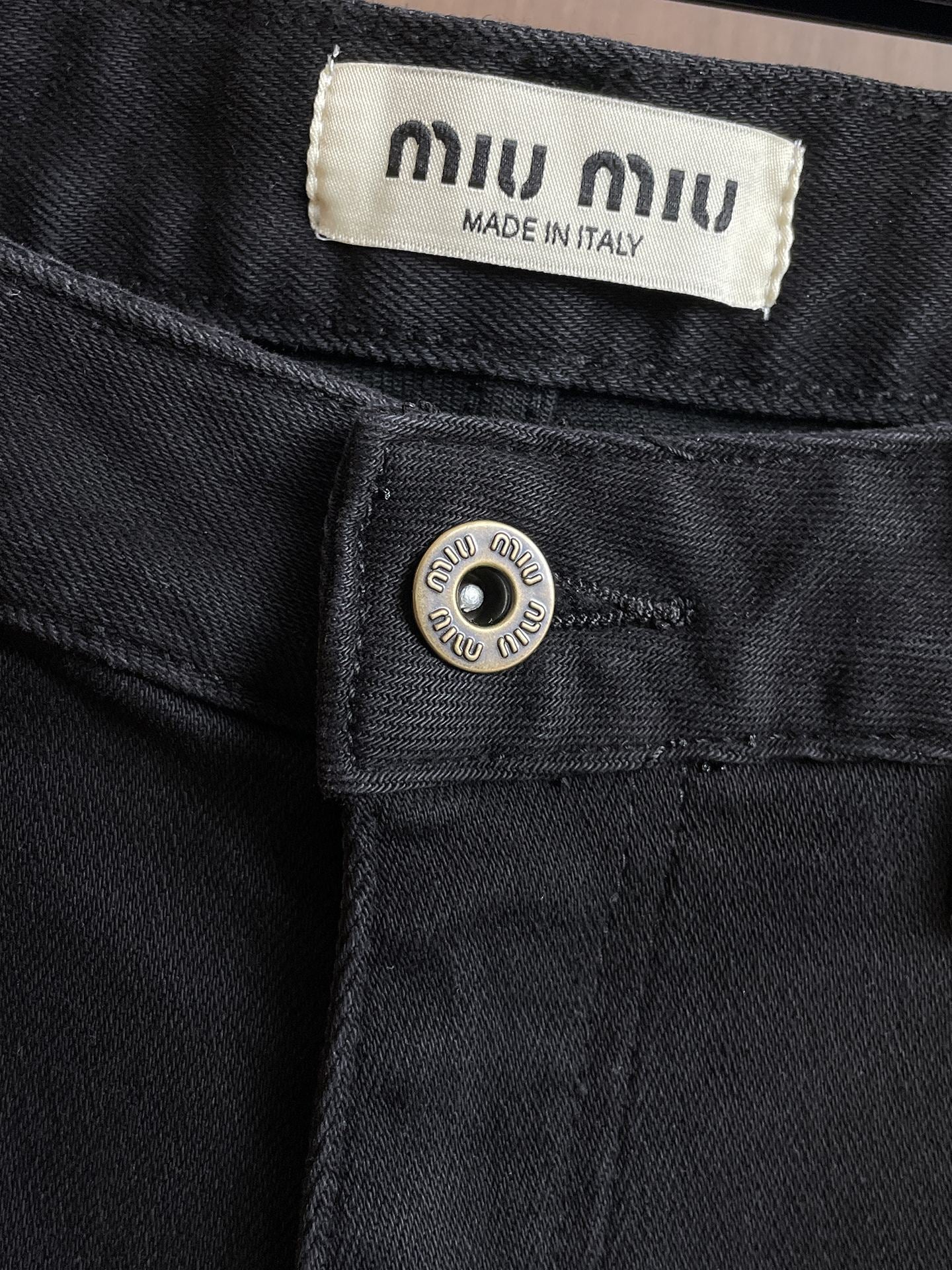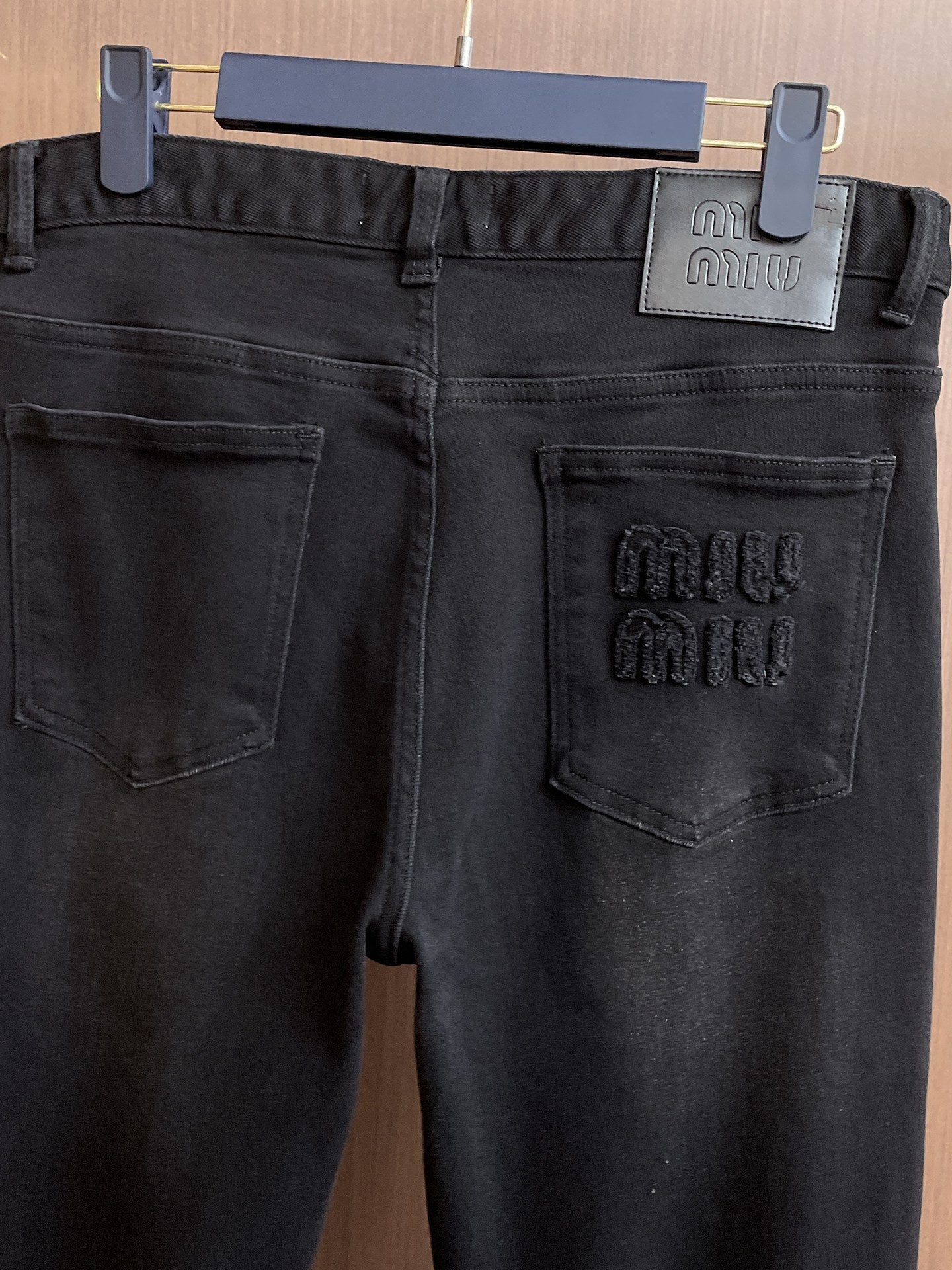 MiuMiu SS autumn/winter new arrival, original washed high-cut jeans. Original design, high-end quality, easy comparison. Customized hardware logo, embroidered with premium craftsmanship. Soft and resilient denim fabric. Fitted to the curves of the leg. Comfortable and stylish. A must-have for trendy men.