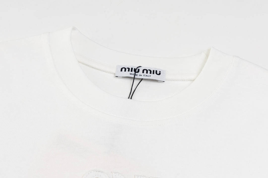 This cotton jersey T-shirt features clean, sleek lines and a striking Miu Miu appliqué logo for a classic look. Its refined, minimalist design is a must-have in any woman's wardrobe, with meticulous attention to detail. The T-shirt features a relaxed silhouette, dropped shoulder sleeves that relax shoulders, and a generous bust for maximum comfort! It's a perfect size for any figure.