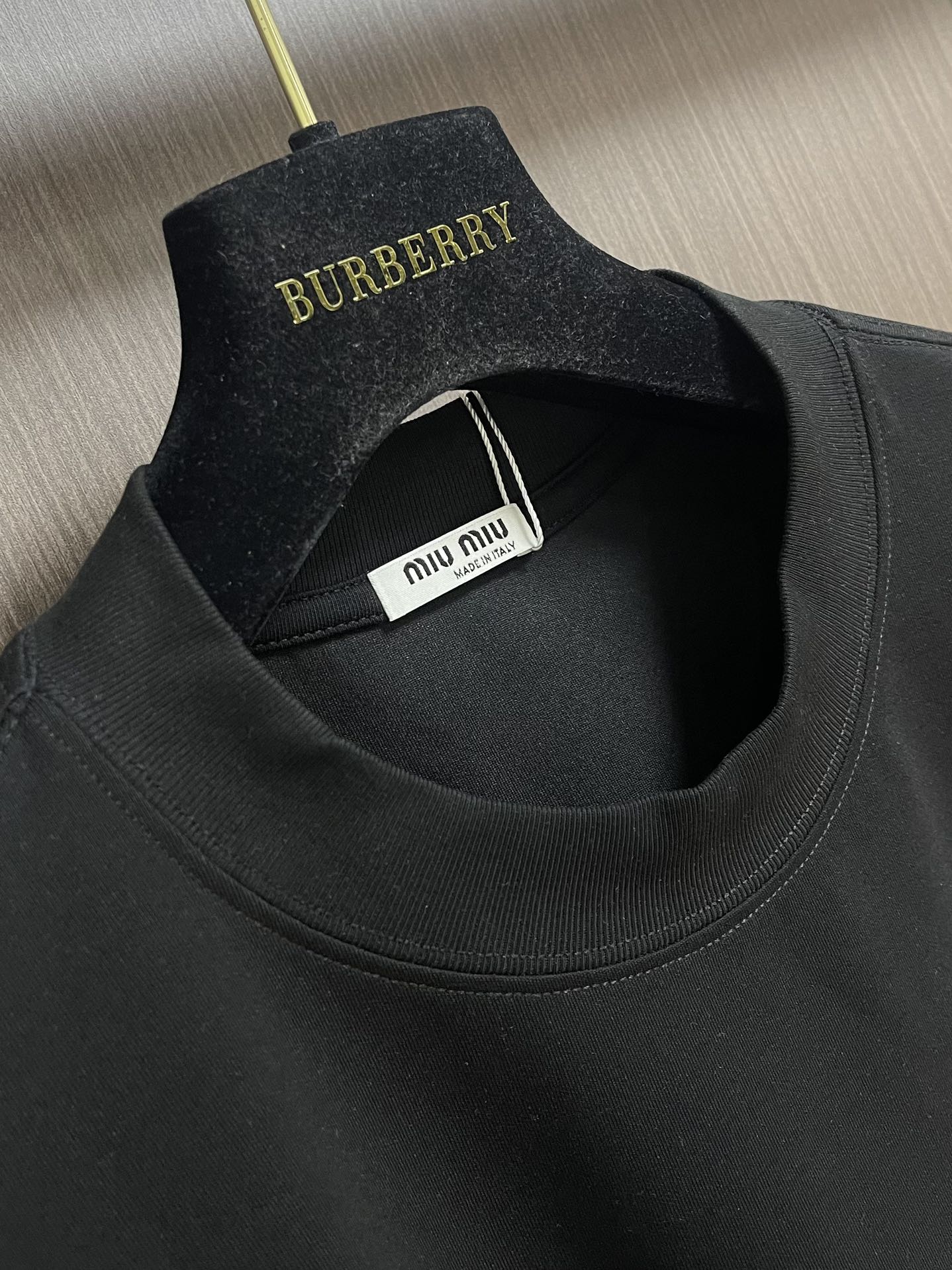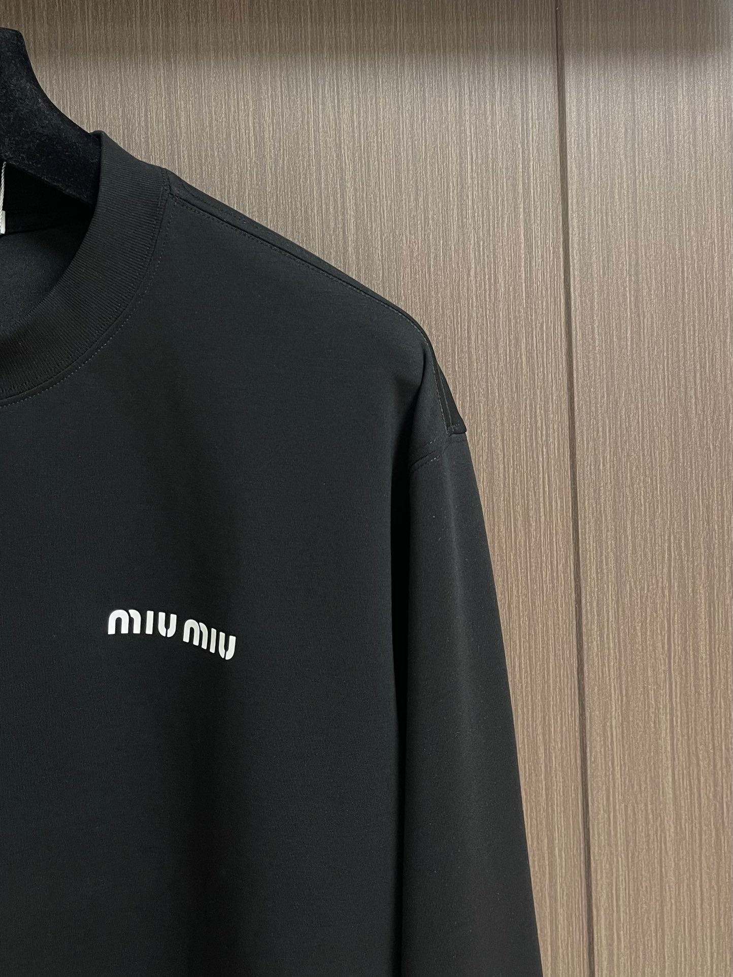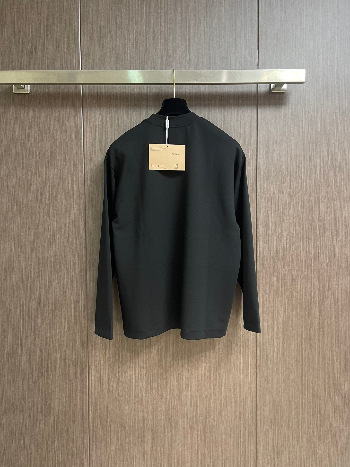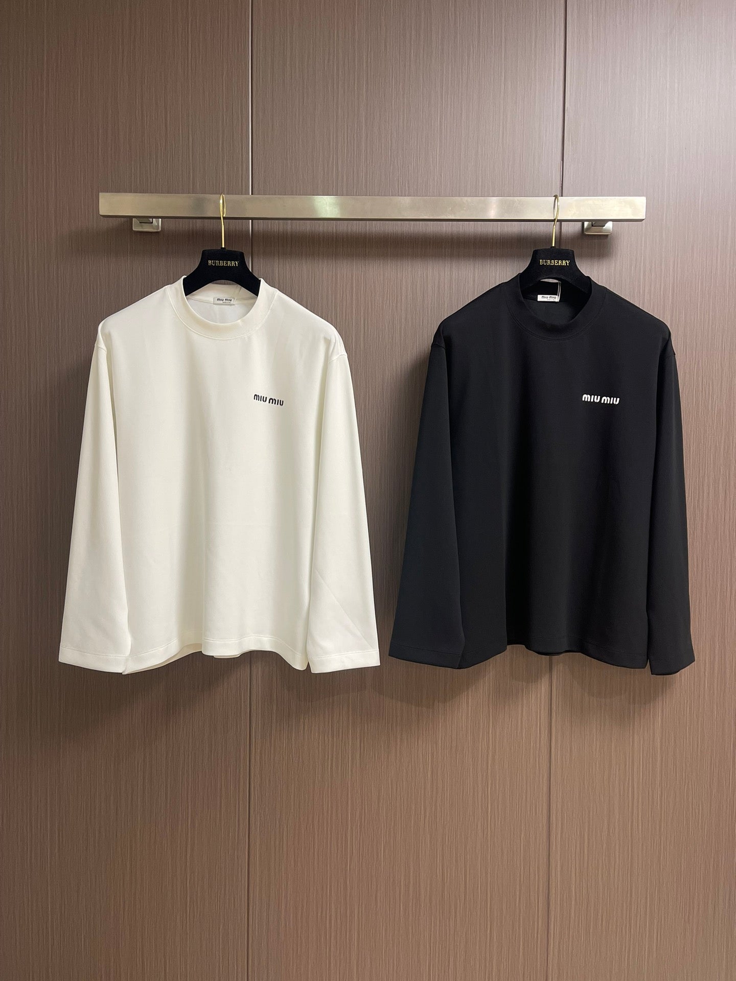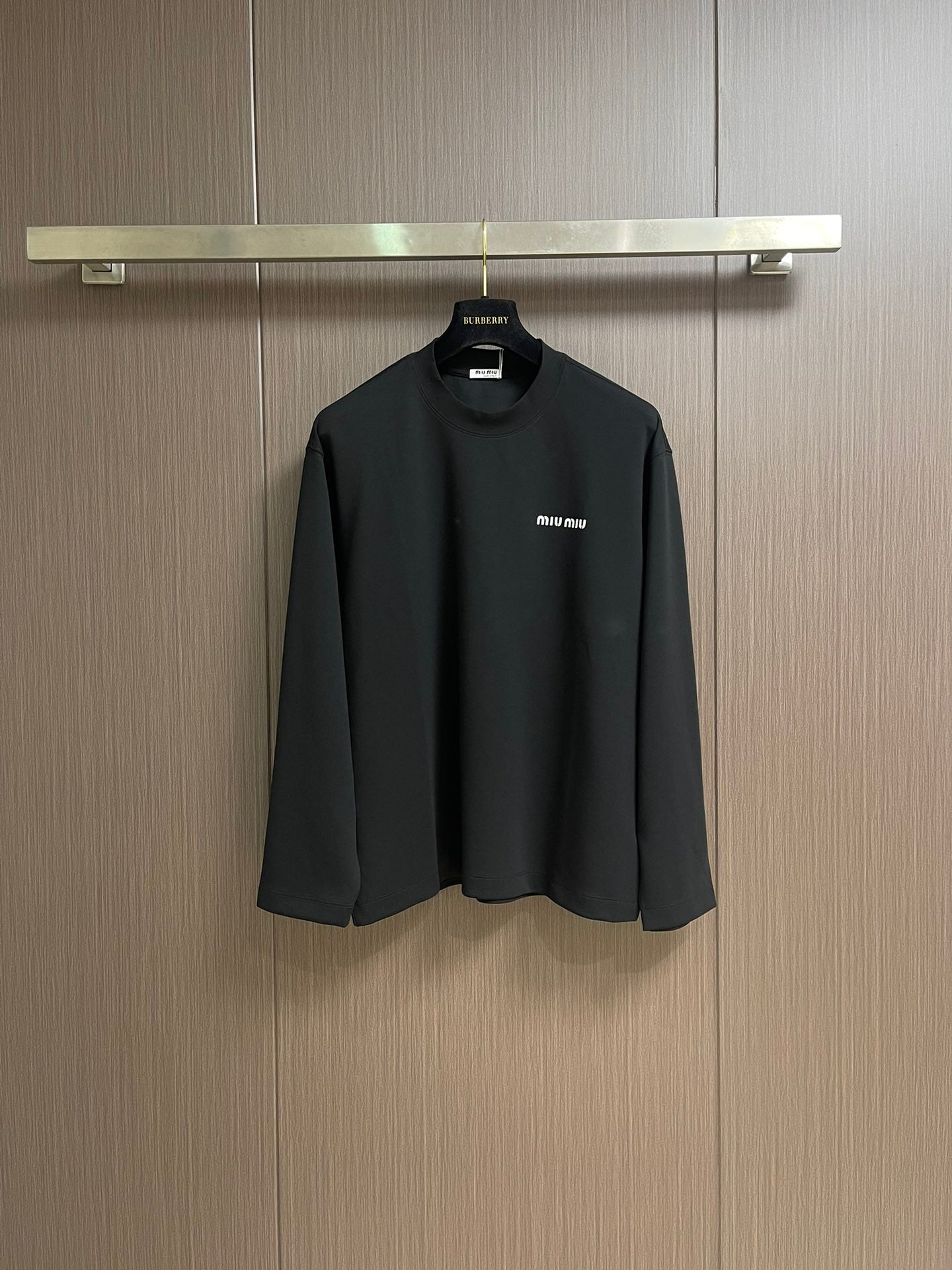 miumiu's new 2025 Spring long-sleeved crewneck T-shirt features a stylish and avant-garde design! Made from high-end custom-made, high-count cotton fabric. Soft and comfortable to wear. Exquisite seams and meticulous workmanship ensure an incredibly stylish look! A must-have for stylish men. Sizes: S-XXL