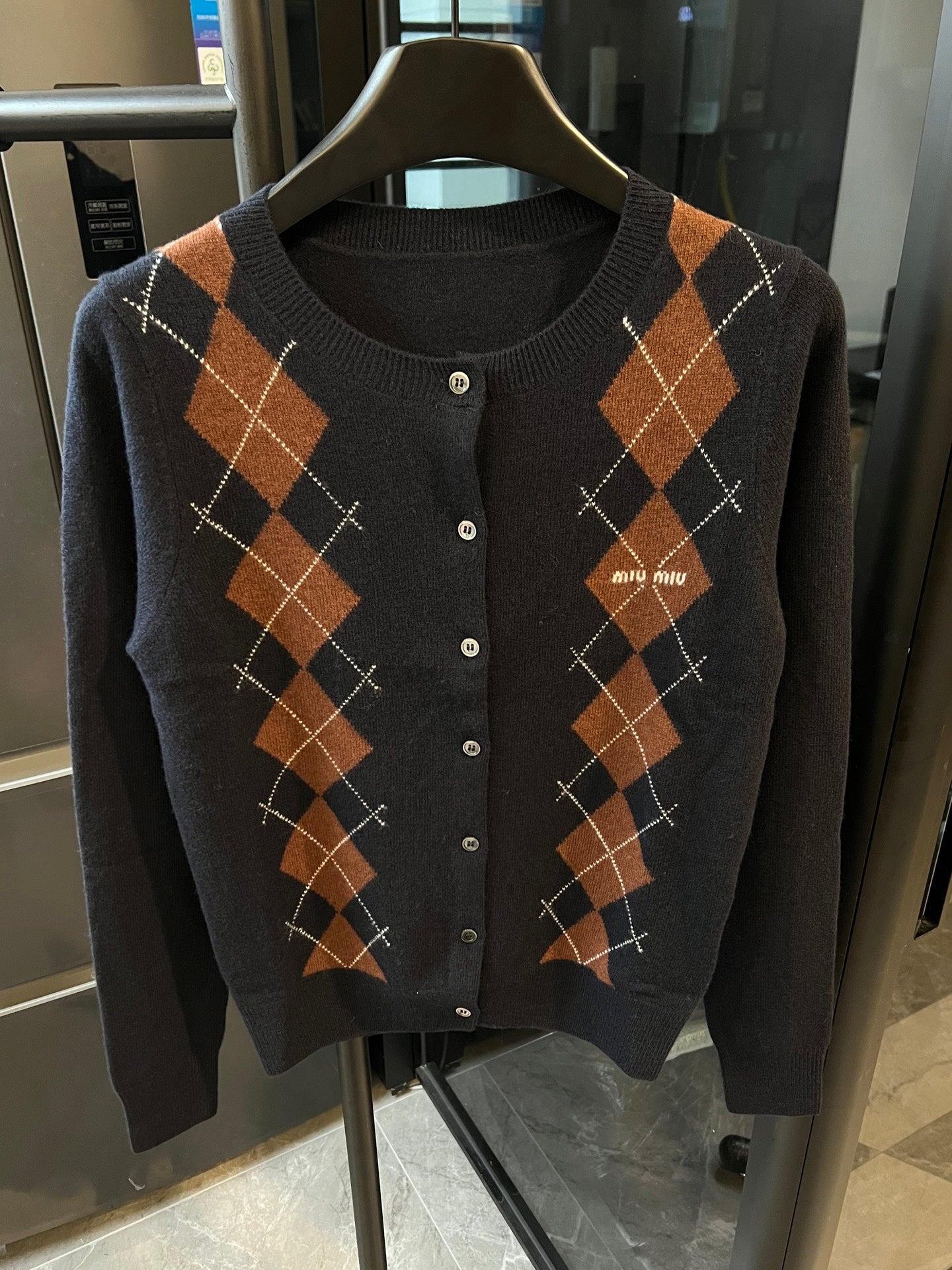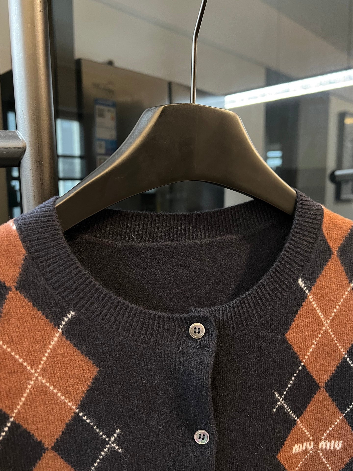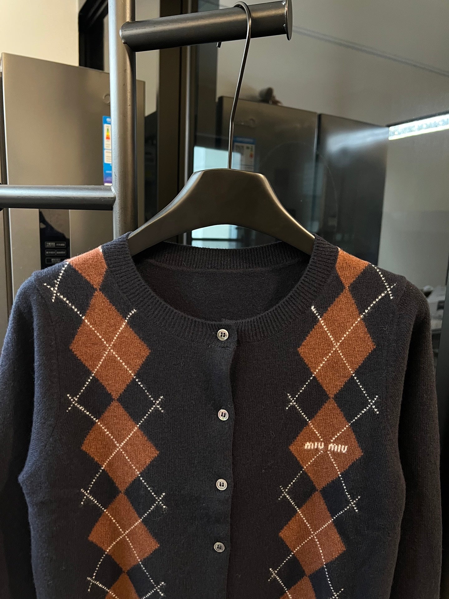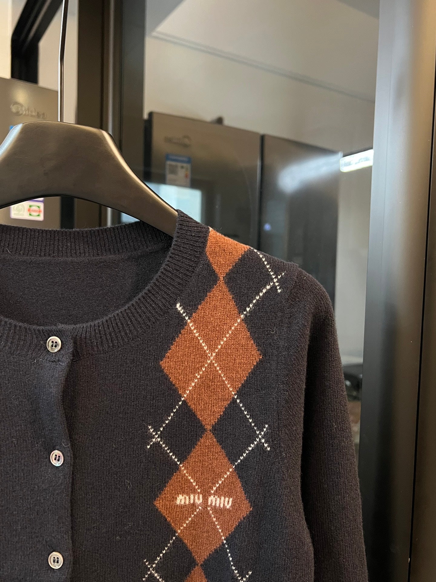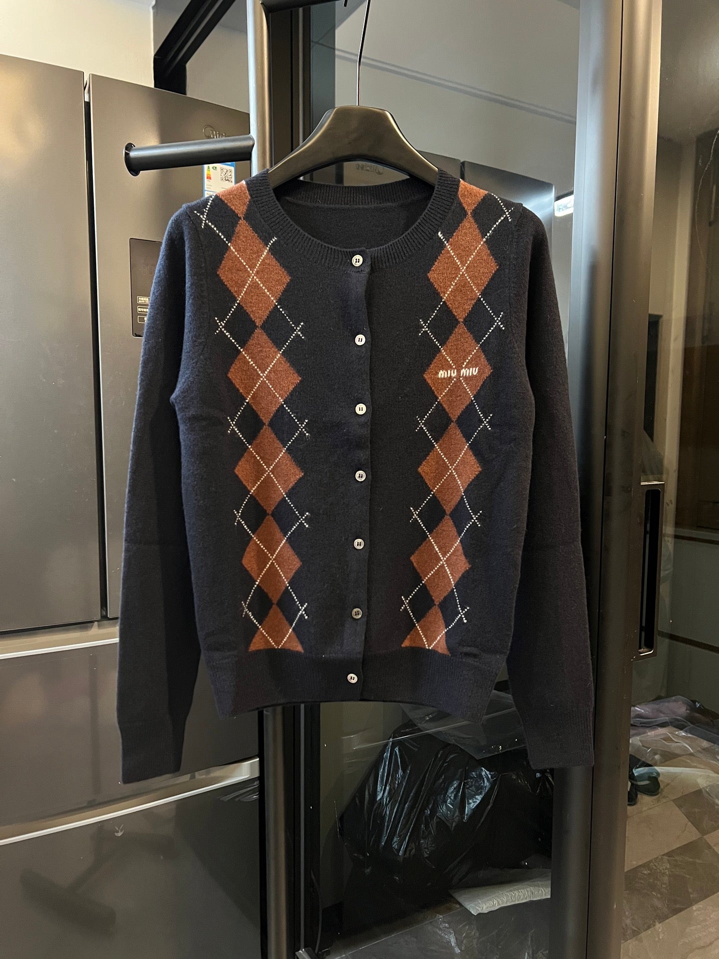 miumiu | 25Ss Knitted Diamond Cashmere Check Cardigan (Women's)