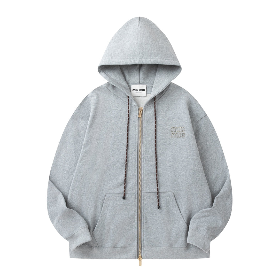 MIUMIU Miu Miu 24FW Applique Embroidered Lettering Zipper Jacket