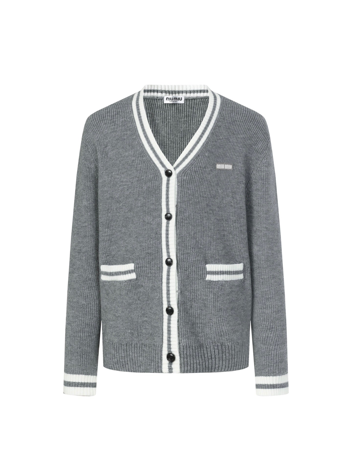 MIUMIU/Miao Miu Gray and White Striped Knit Cardigan