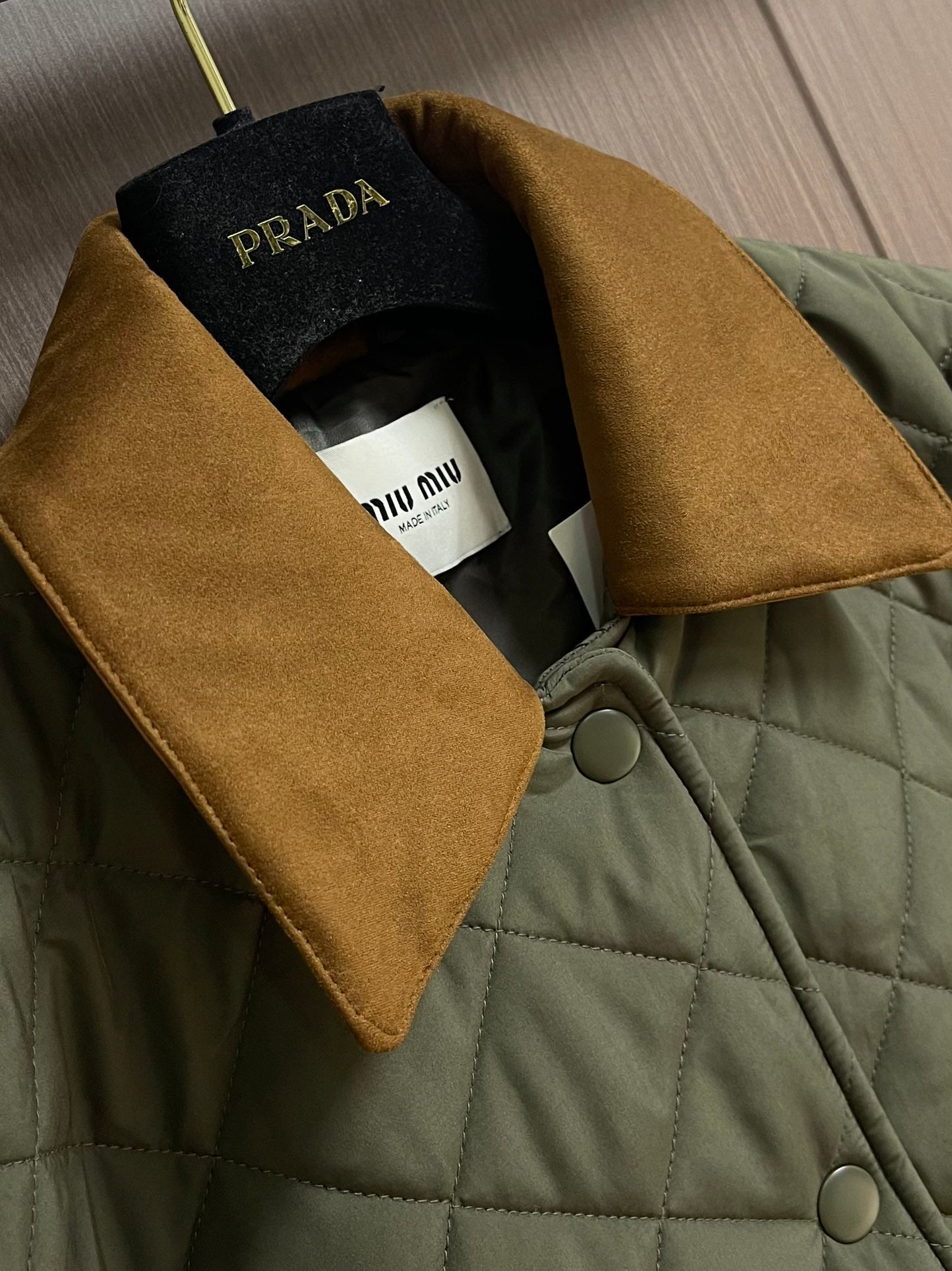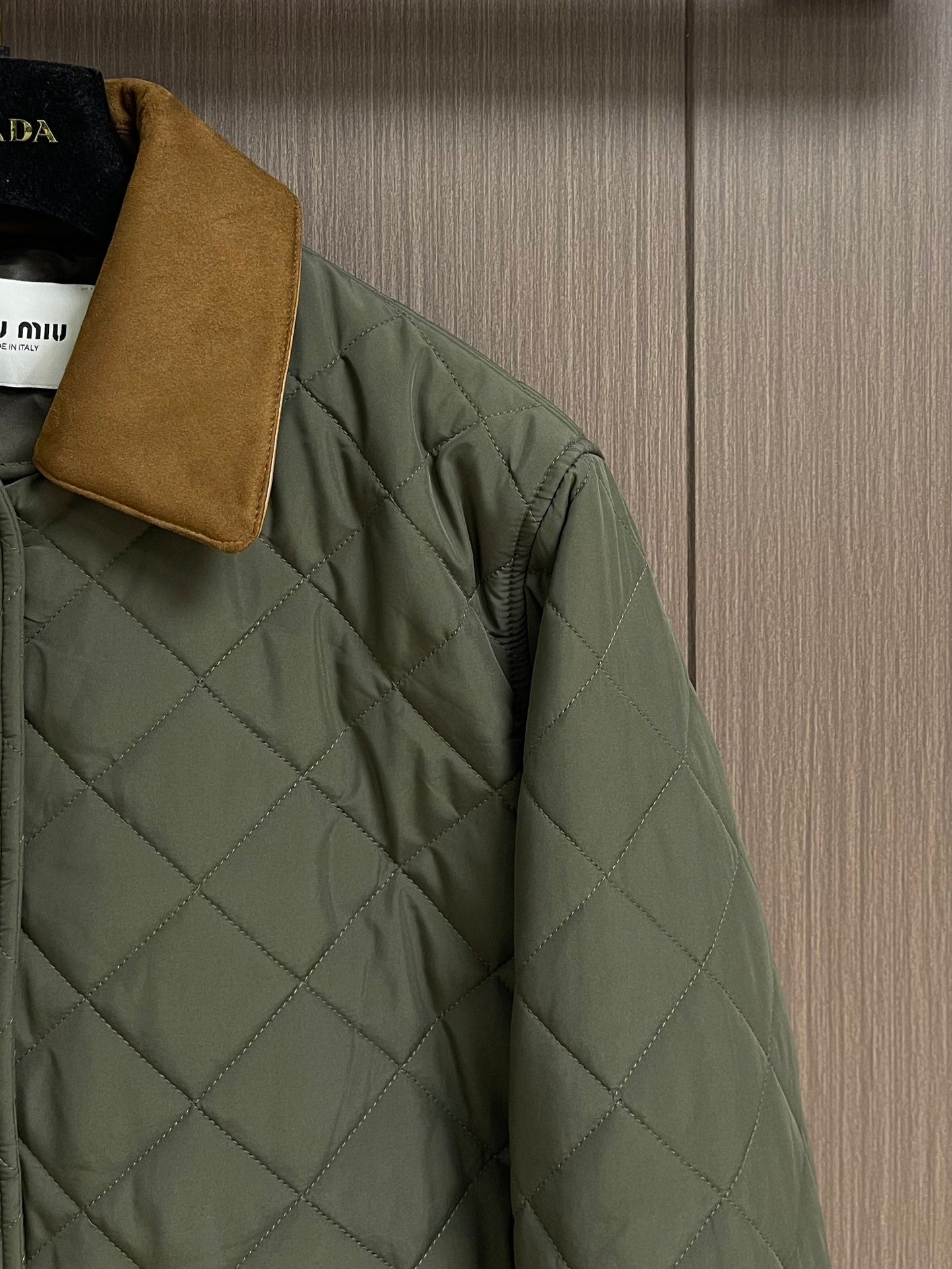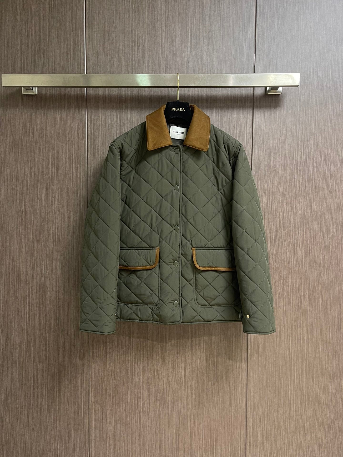 MIUMIU 2025SS new diamond-quilted lapel padded jacket, custom-made from imported YB windproof and waterproof nylon. Its craftsmanship is restored, and upgraded materials enhance its fall and winter warmth. Down-filled lining ensures a lightweight and warm fit. Contrast lambskin trimmings, pocket contours, and diamond-embossed pattern throughout. Flap pockets provide hand warmth and increased storage. The design is versatile and practical, with snap-button slits at the hem for a more comfortable fit. The jacket is packed with details, showcasing a low-key, sophisticated feel, successfully demonstrating quality and breaking free from the dullness. It combines warmth and style. Custom-made fabrics and accessories are available. Sizes: S-XL