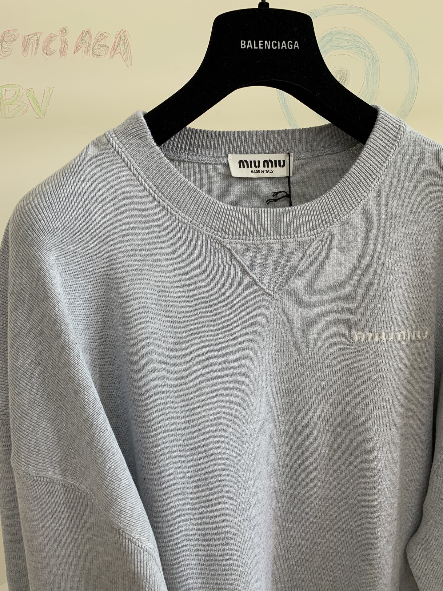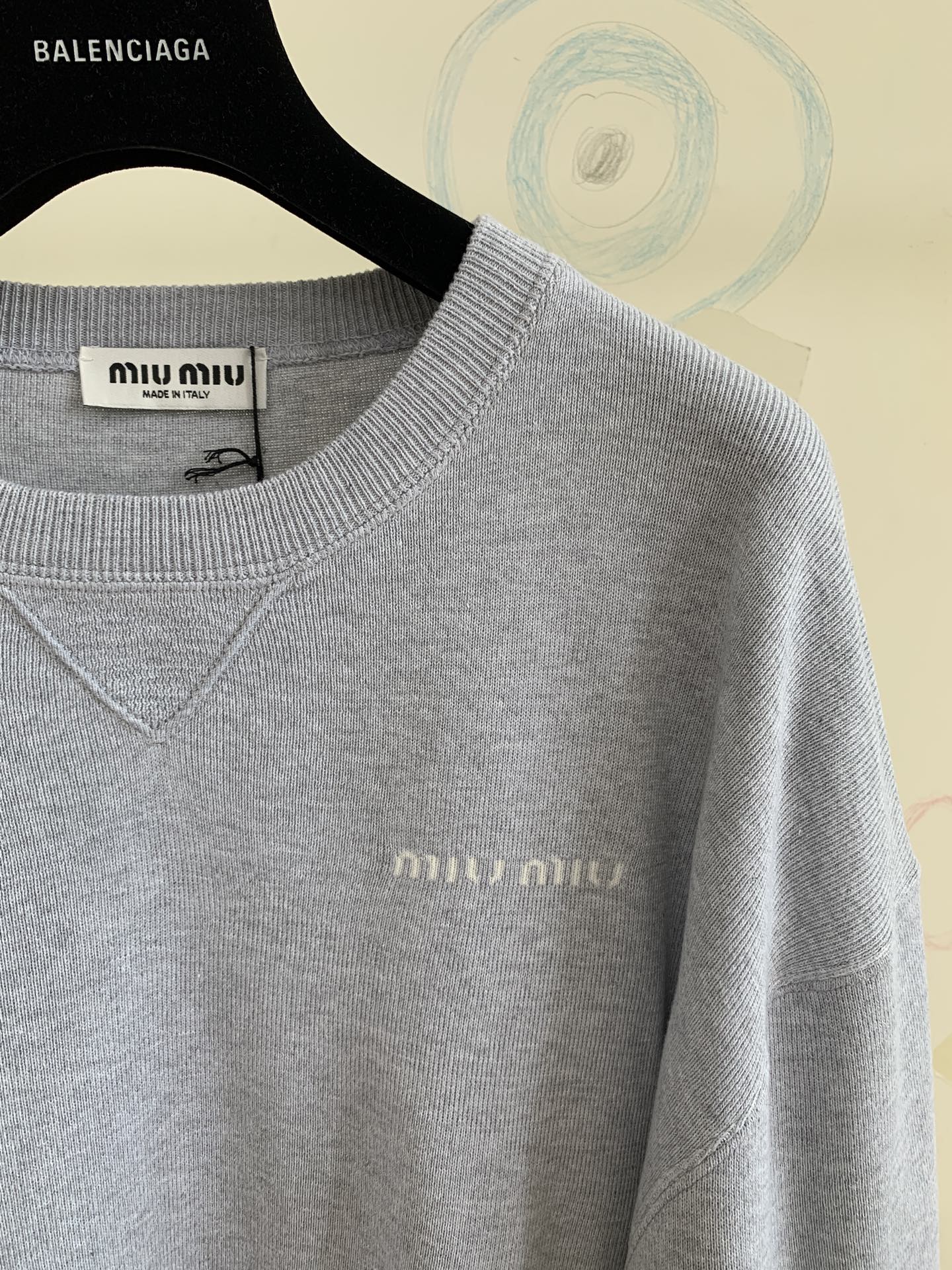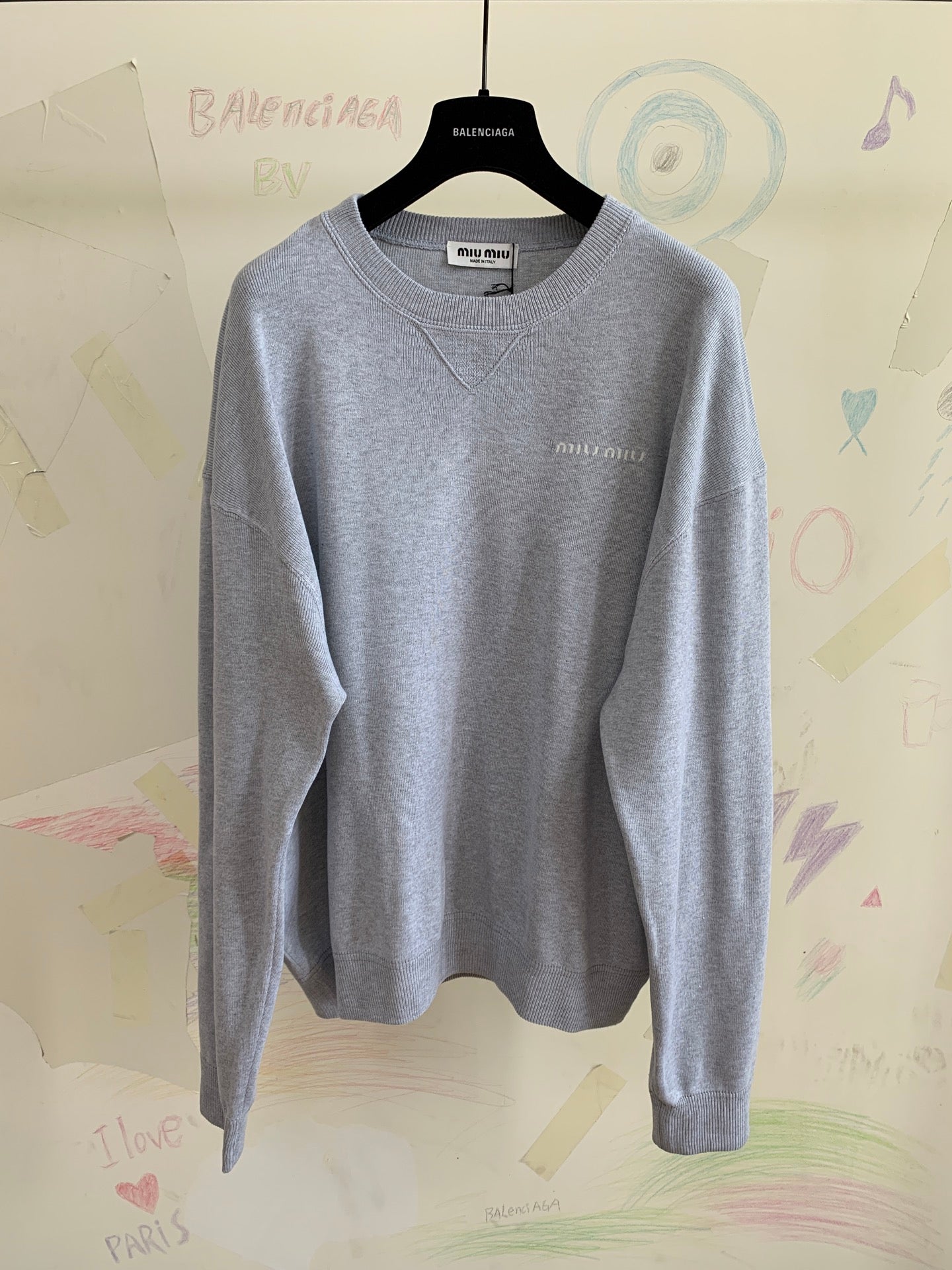 This MIUMIU gray sweater is more than just a warm sweater; it's a masterpiece of craftsmanship that blends precise industrial craftsmanship, artisanal expertise, and forward-thinking design. It perfectly embodies the brand's meticulous attention to detail and its modern interpretation and reinvention of traditional craftsmanship.