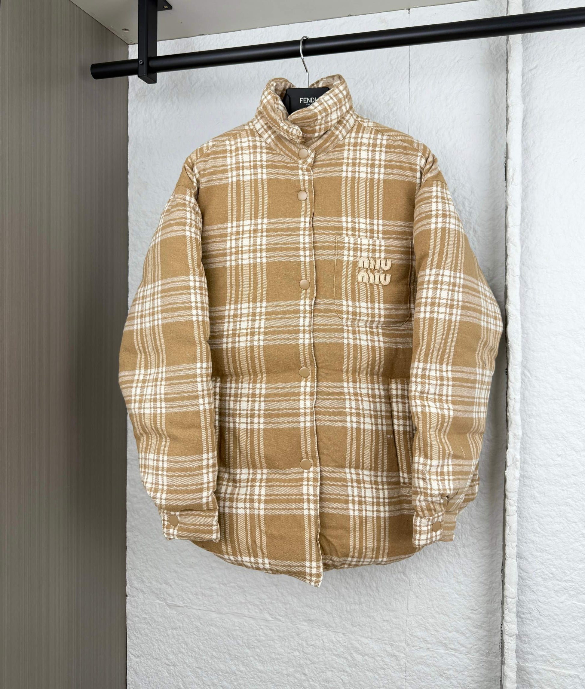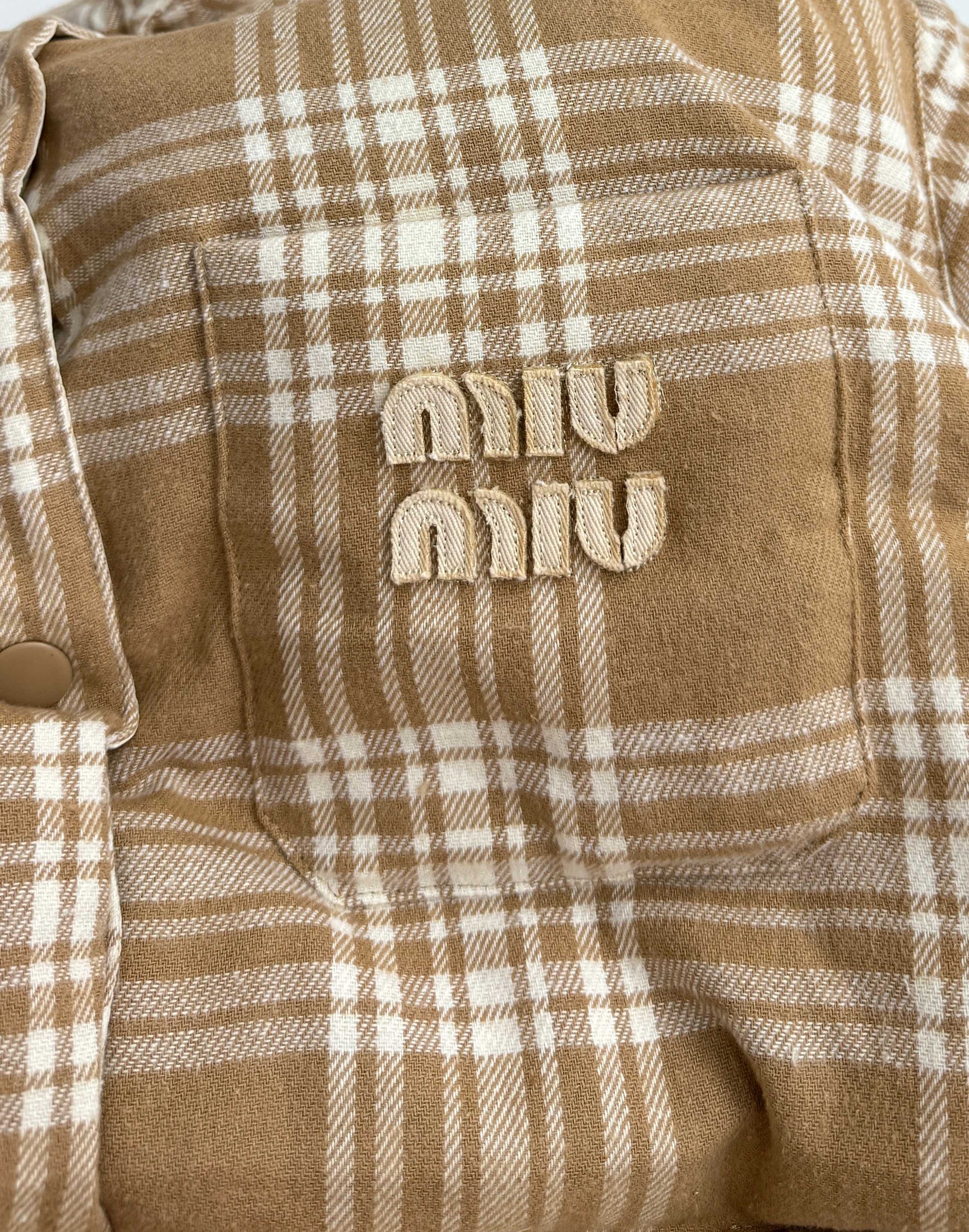 Miumiu Miu Lettering Plaid Down Jacket
