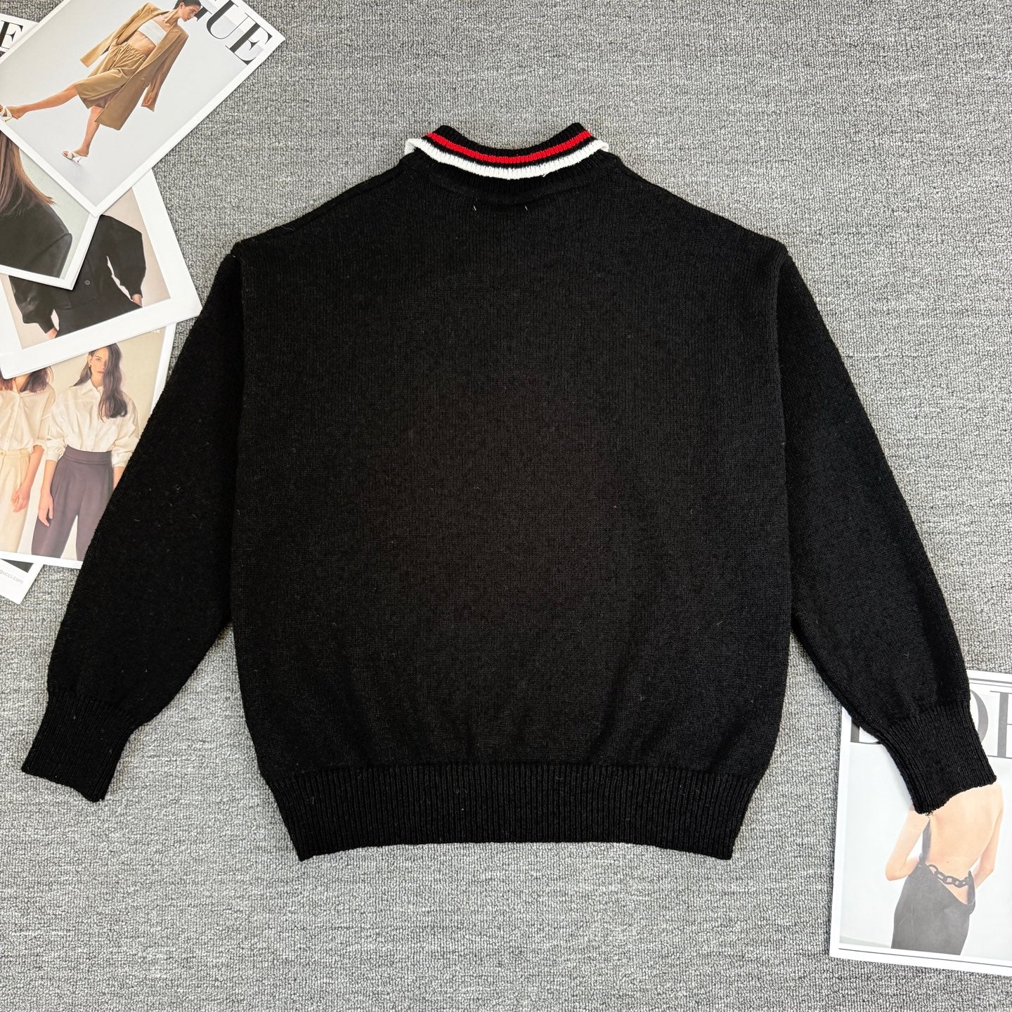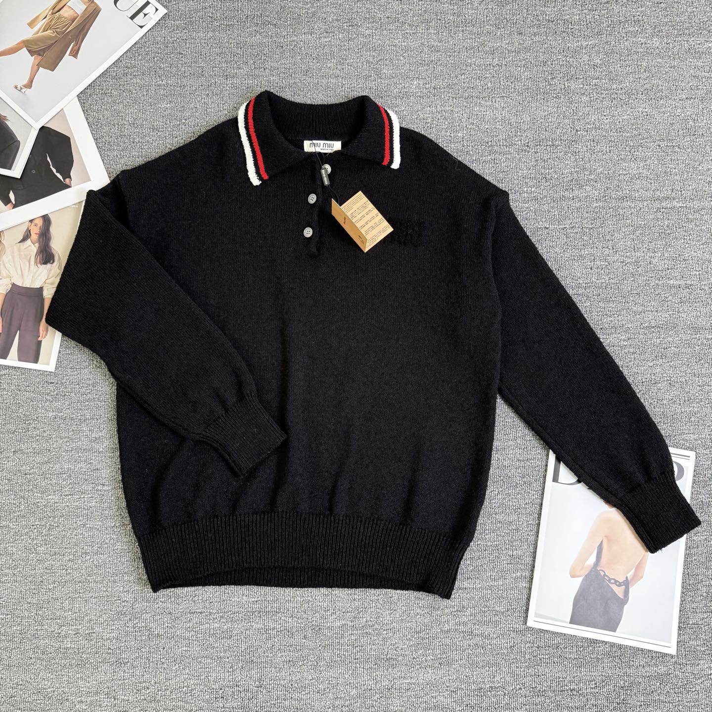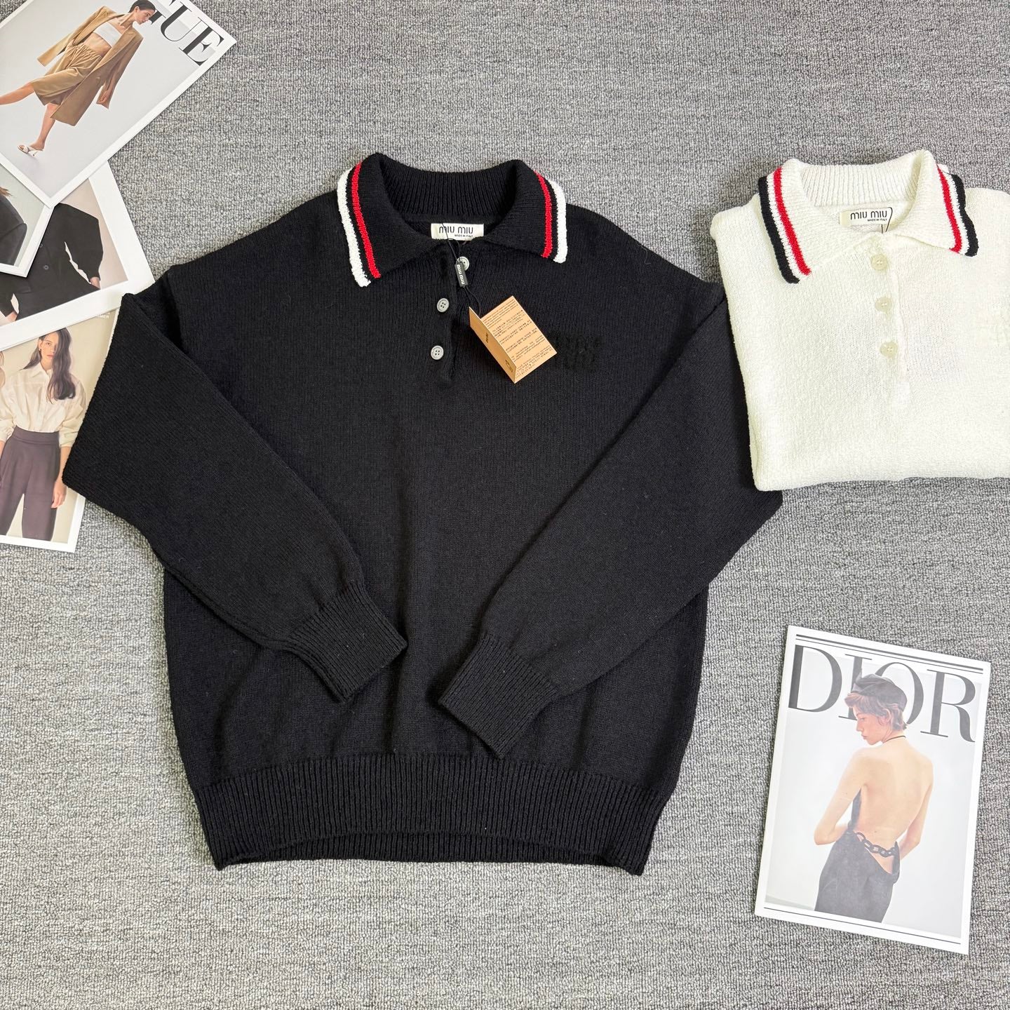 Miu Miu 2025 New Polo Striped Lapel Knit Crewneck Sweater