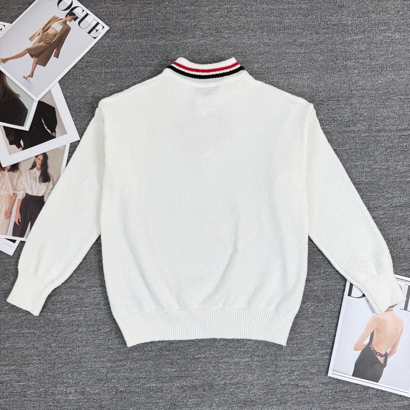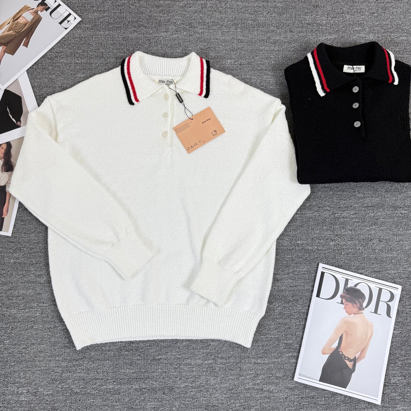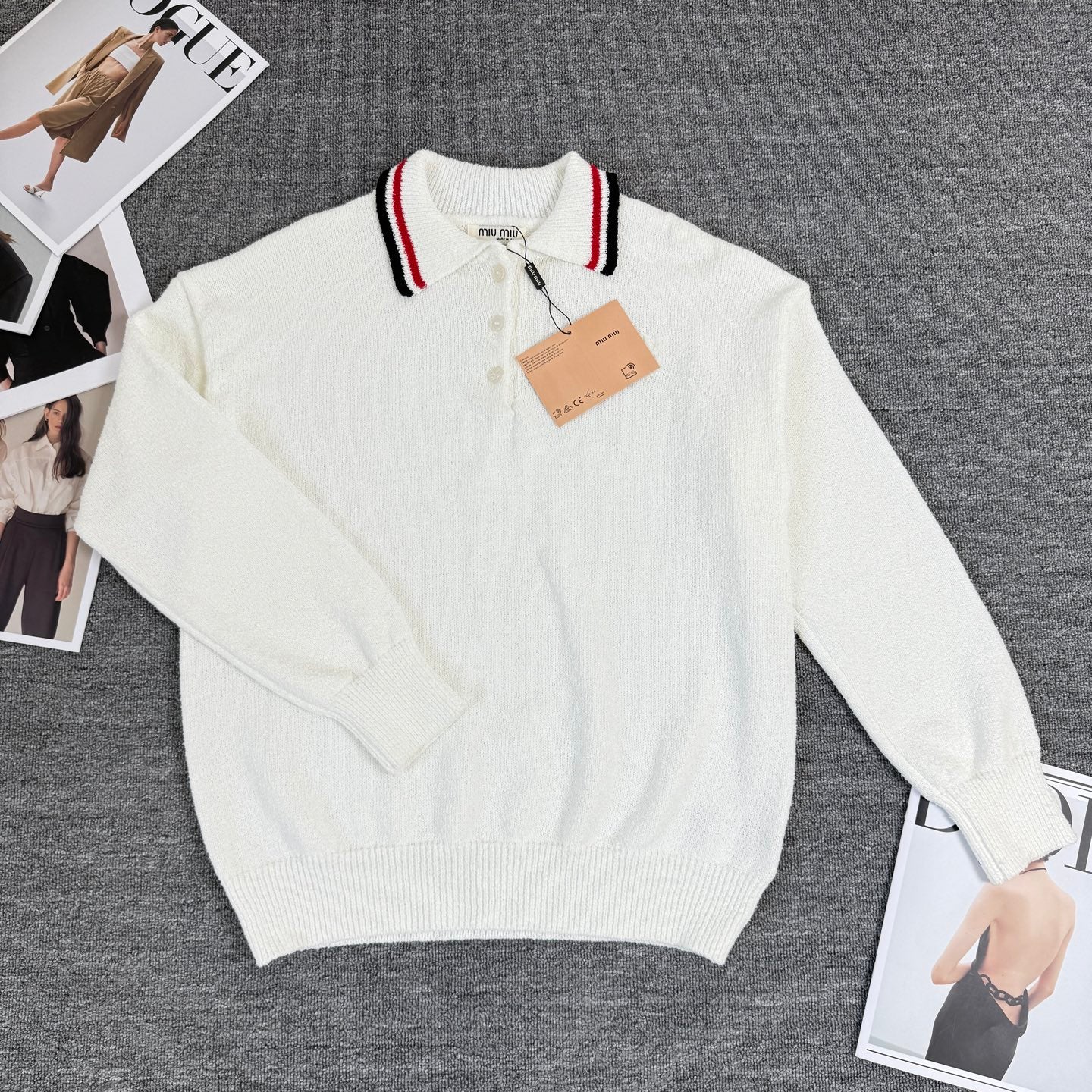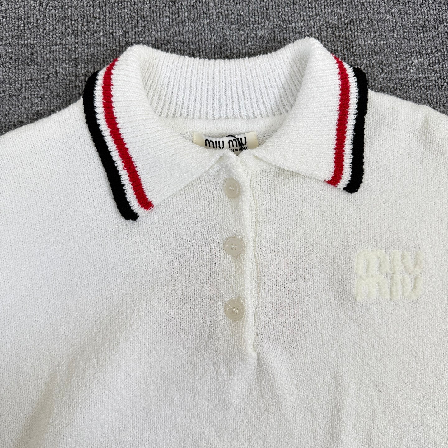 Miu Miu/Miu Miu 2025 New Polo Striped Lapel Knit Crewneck Sweater