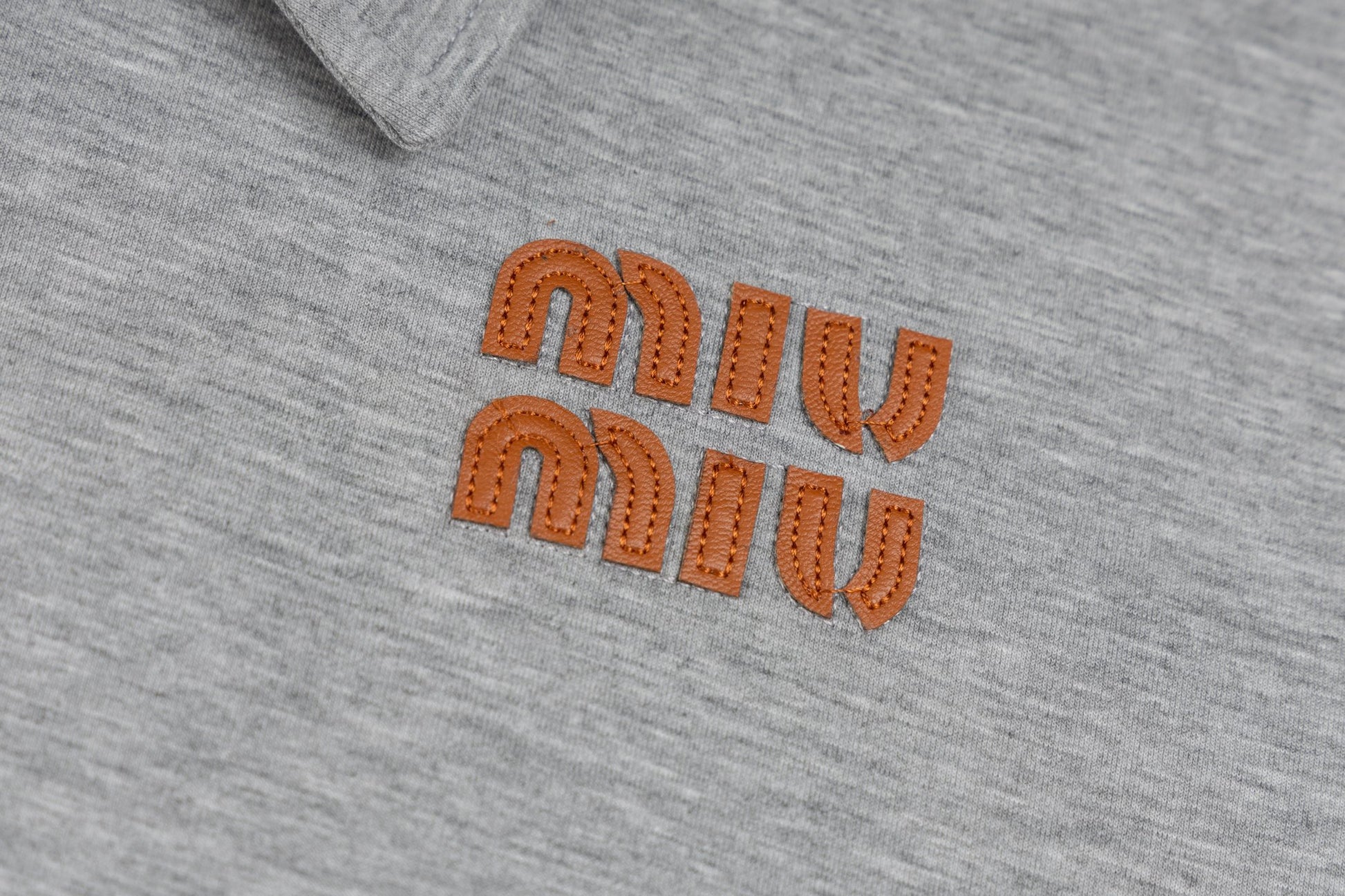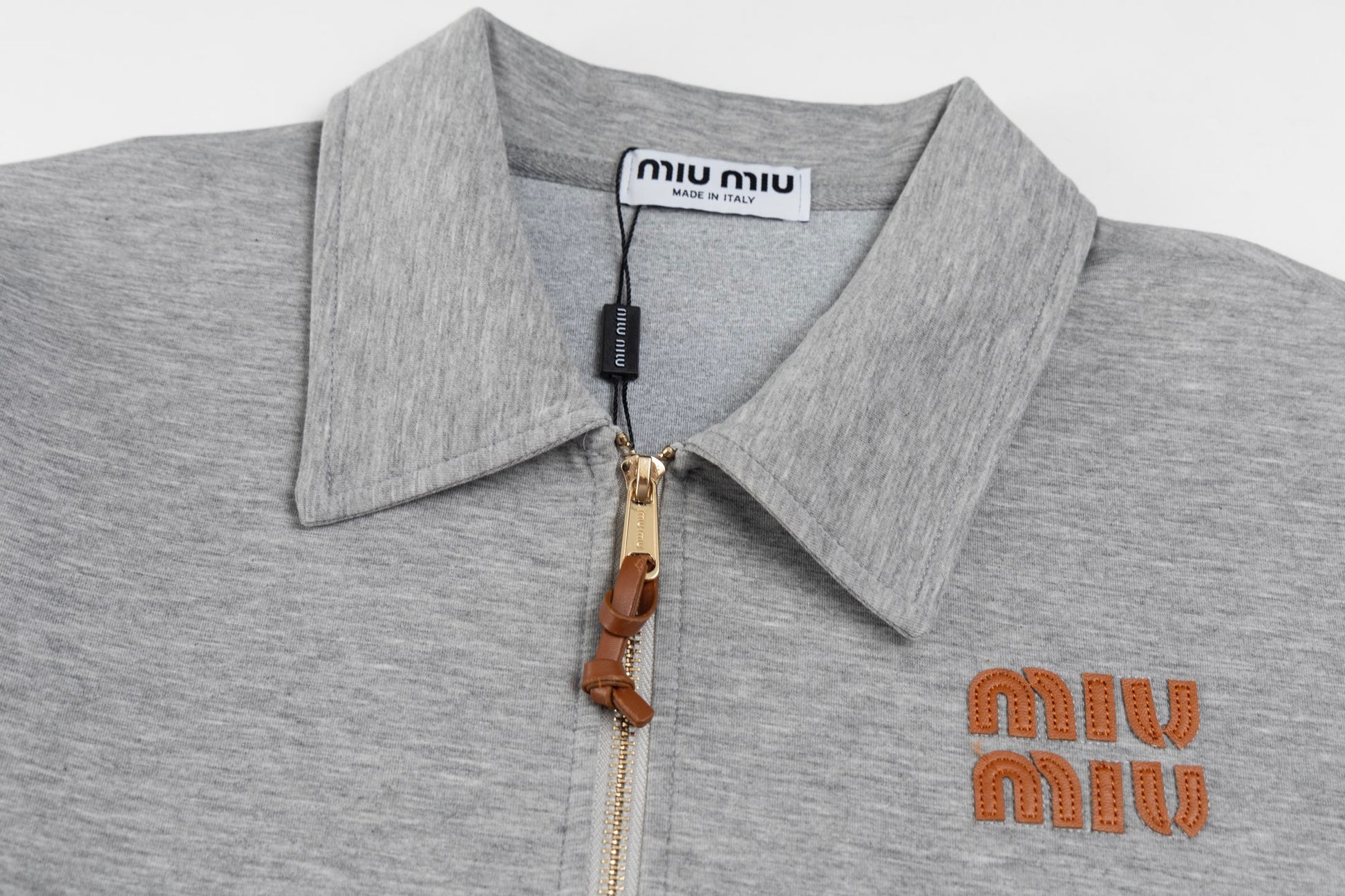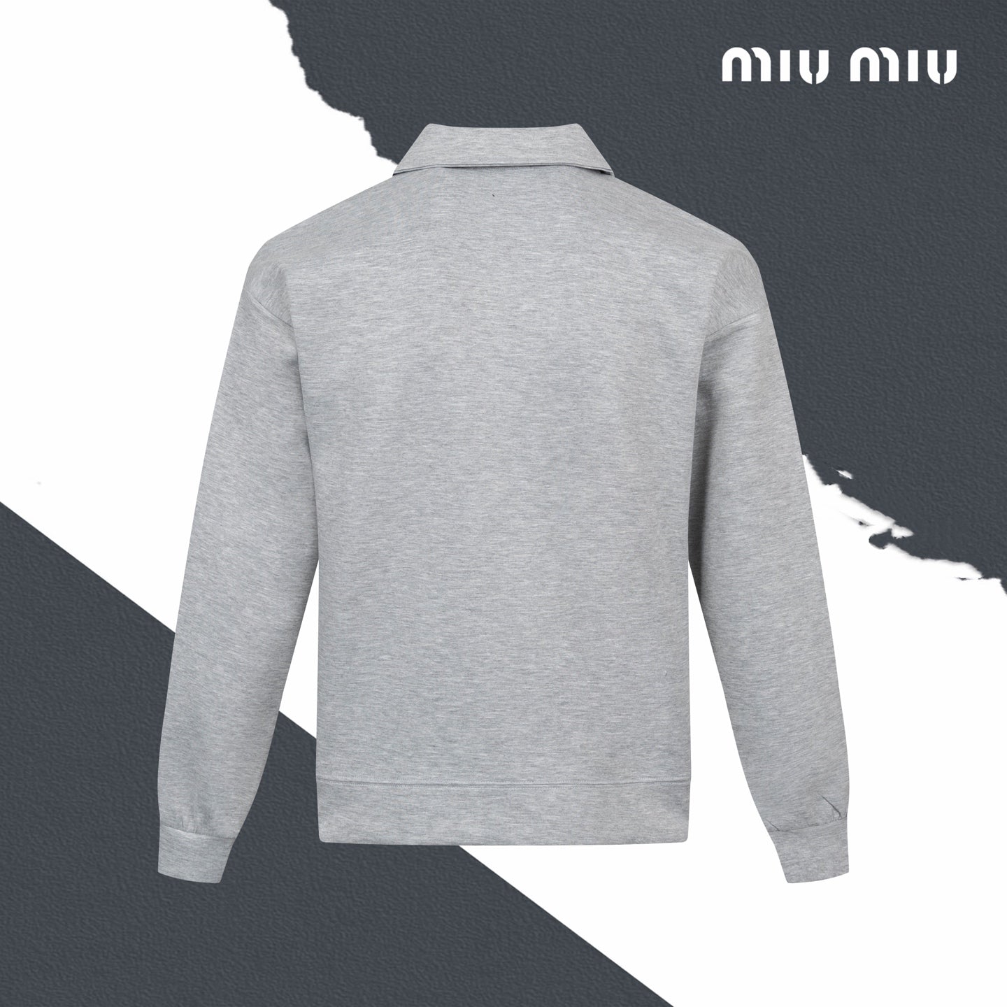 MIUMIU polo-neck sweatshirt with embroidered leather chest logo.