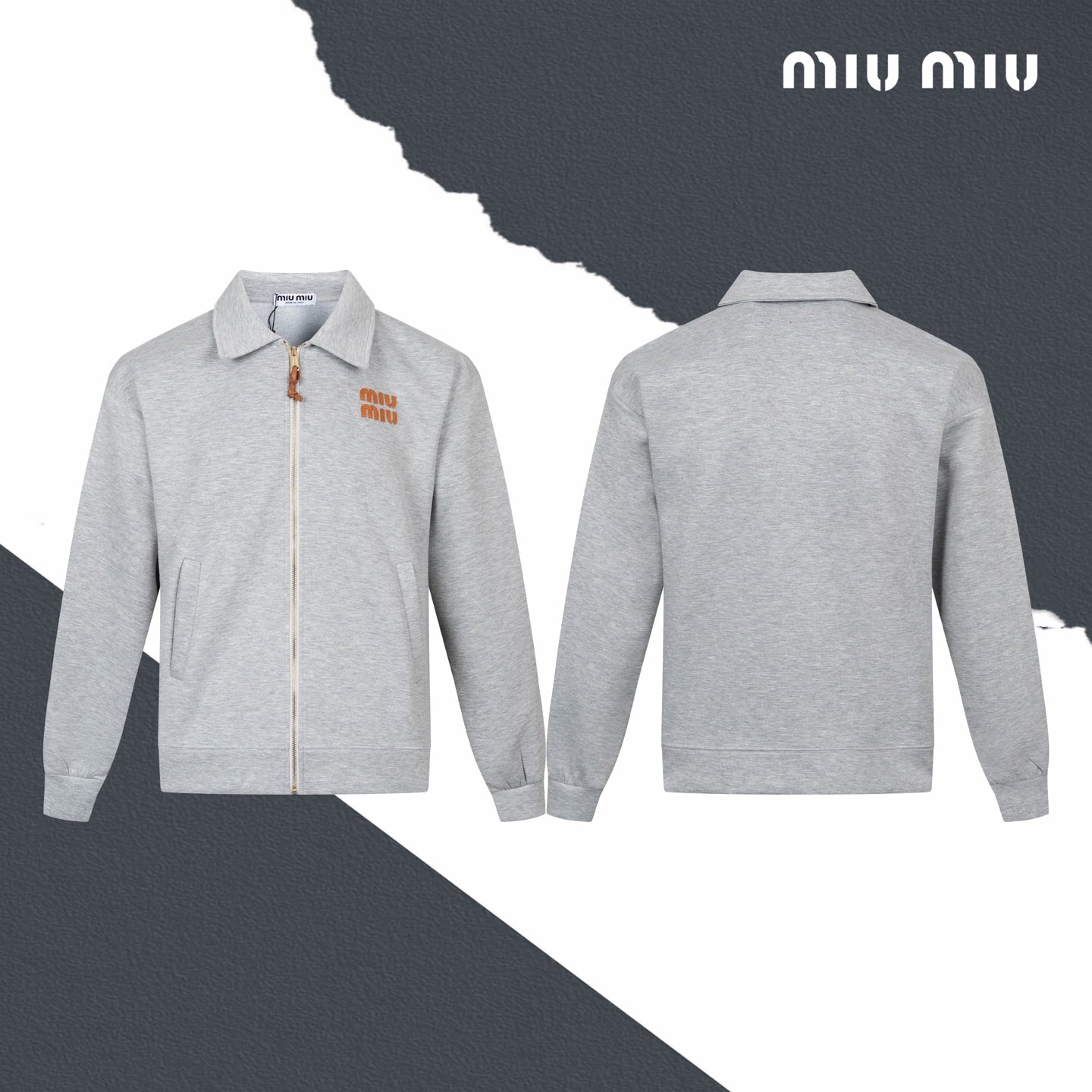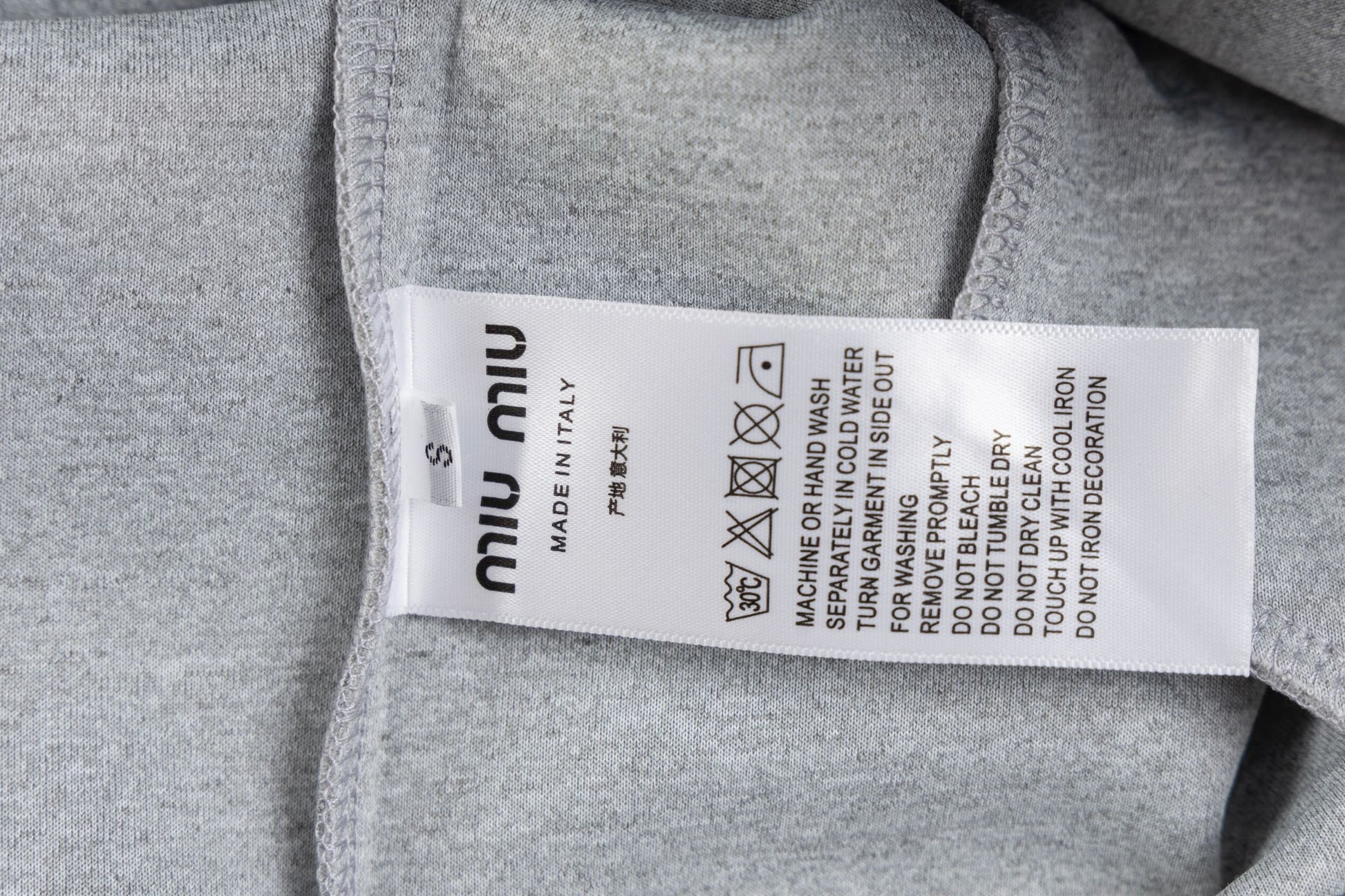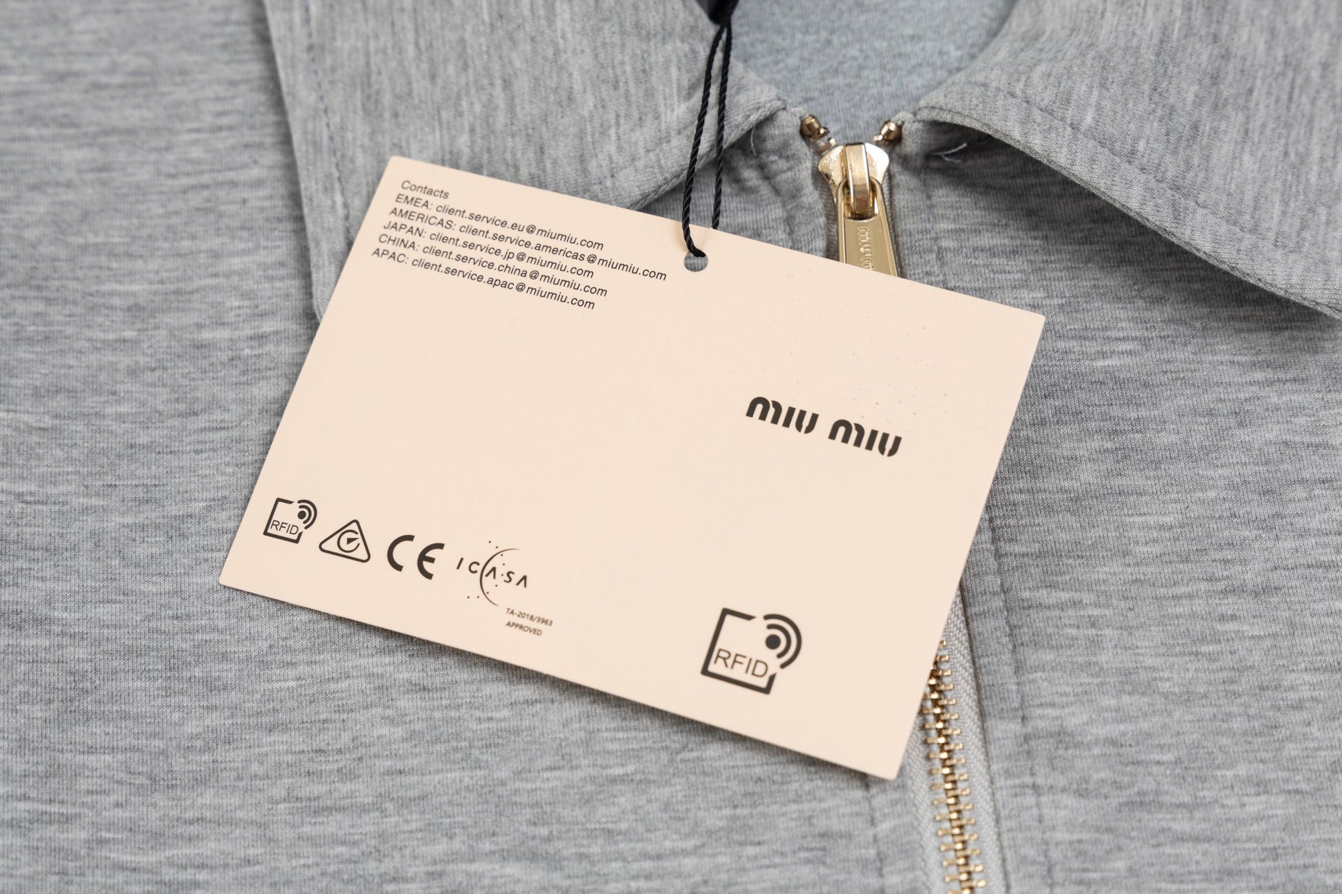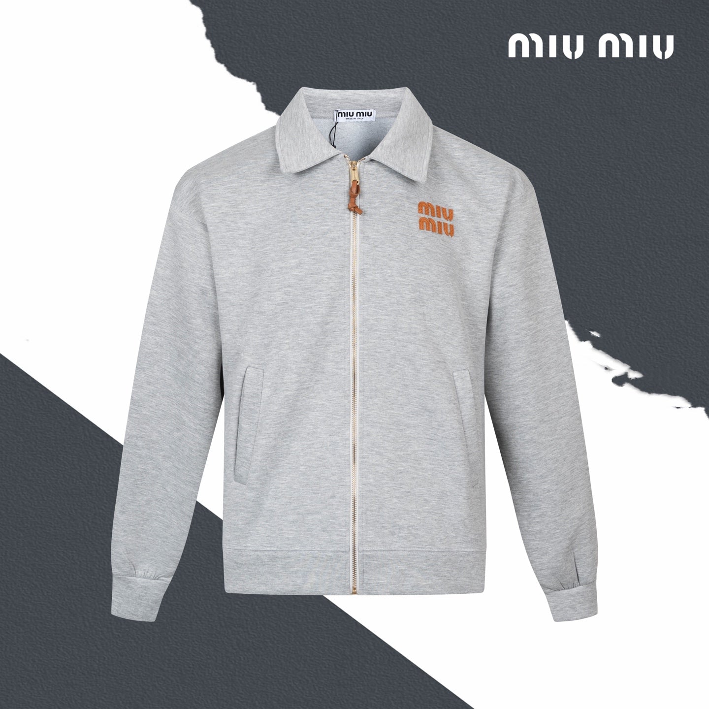MIUMIU polo-neck sweatshirt with embroidered leather chest logo.