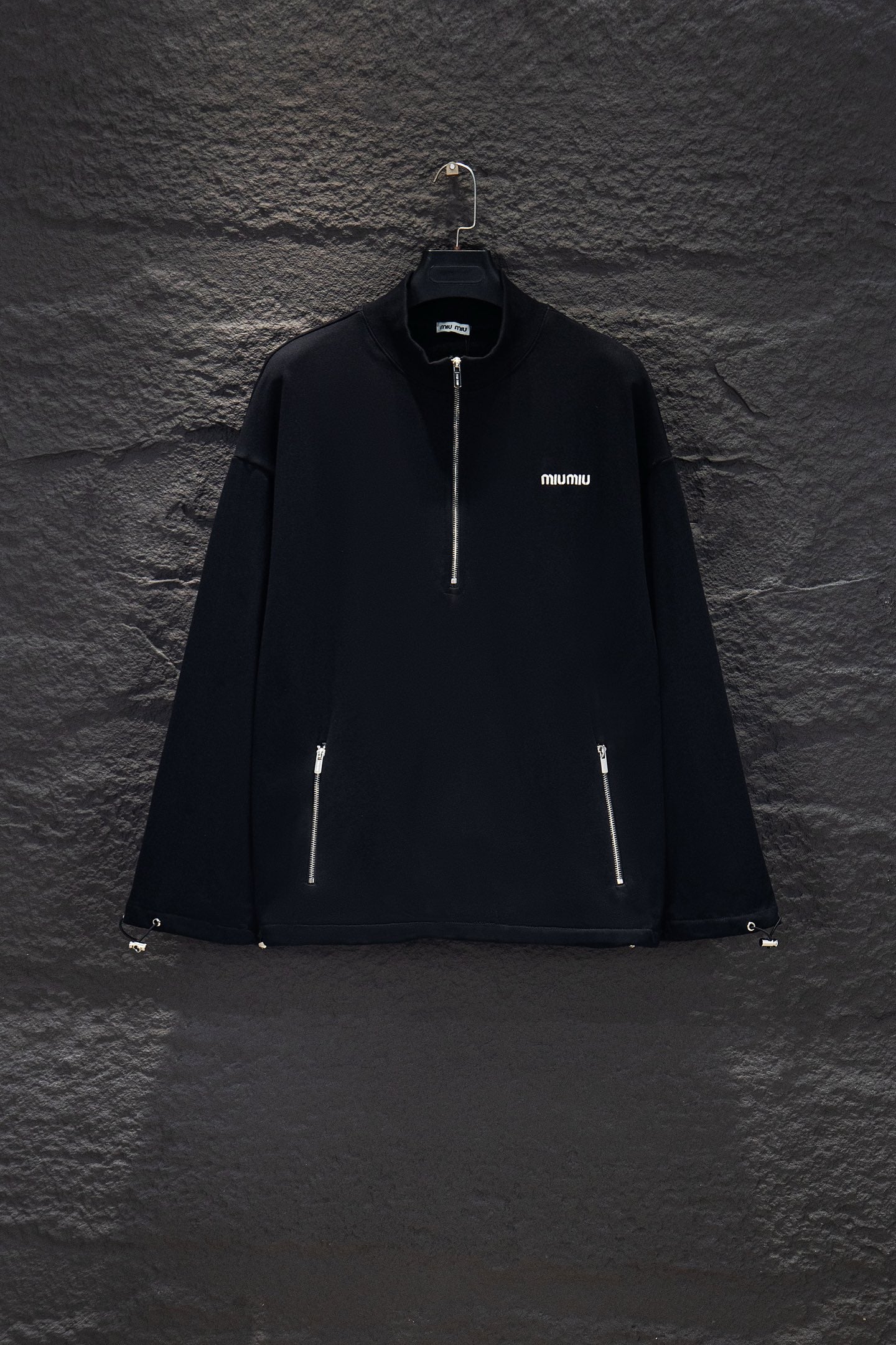🆕miumiu Heavy-Duty Half-Zip Double-Pocket Sweatshirt