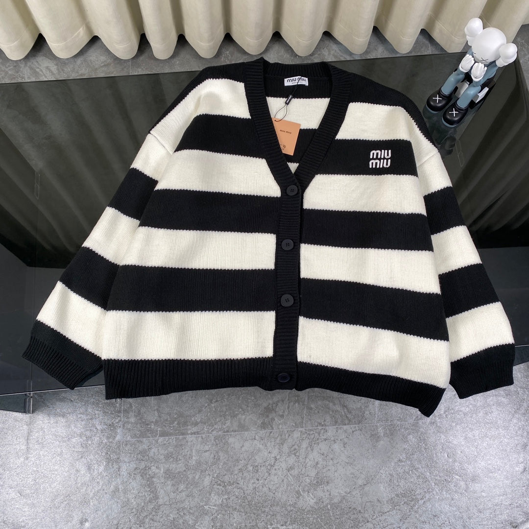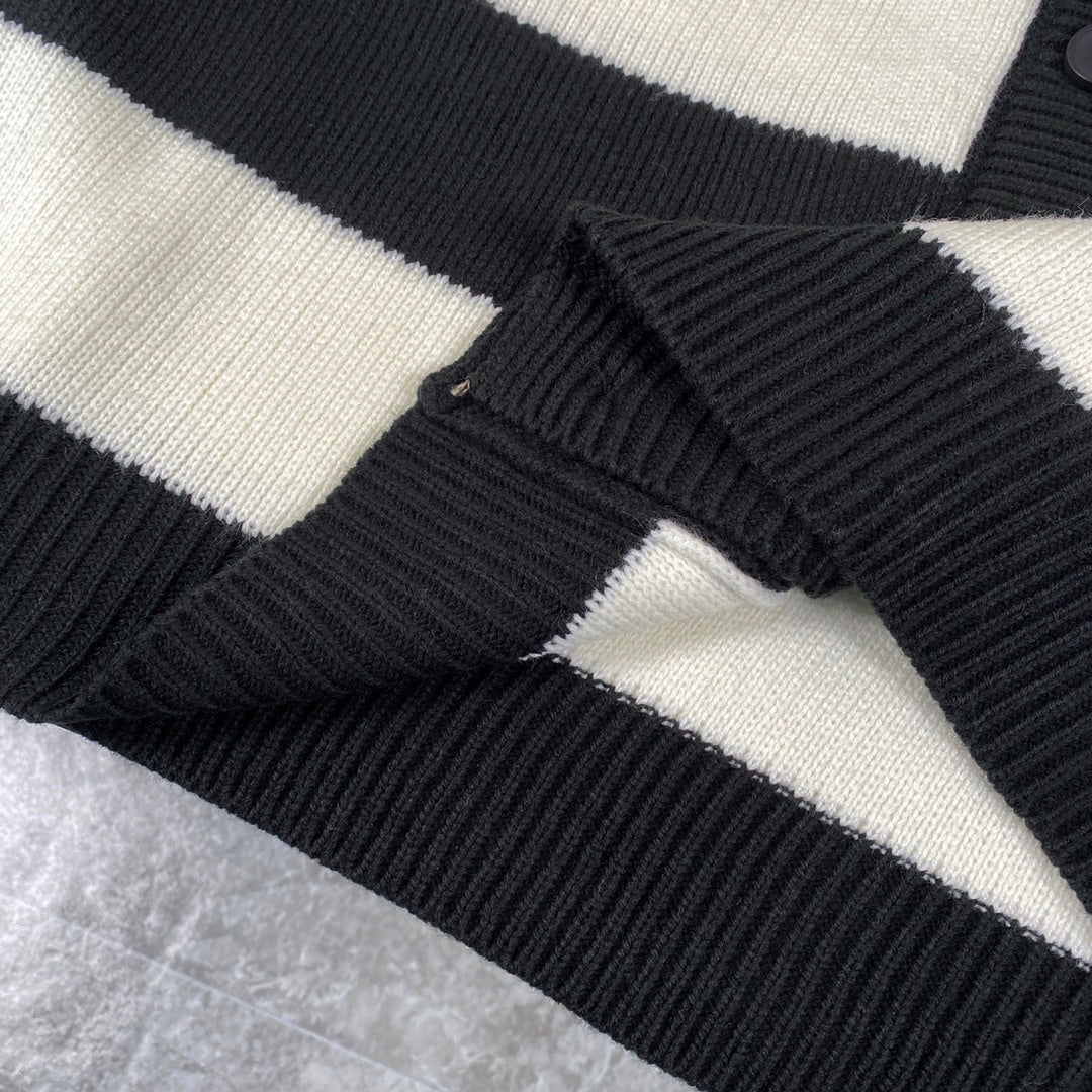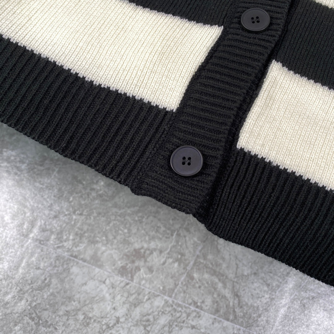 MiuMiu's classic black and white striped V-neck cardigan, worn by both Ouyang Nana and Yang Mi.