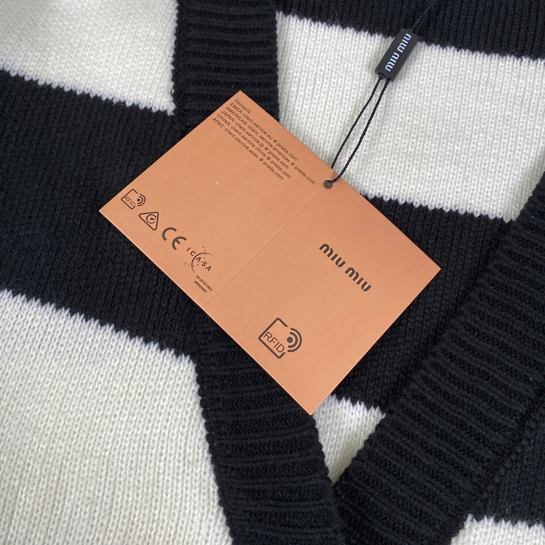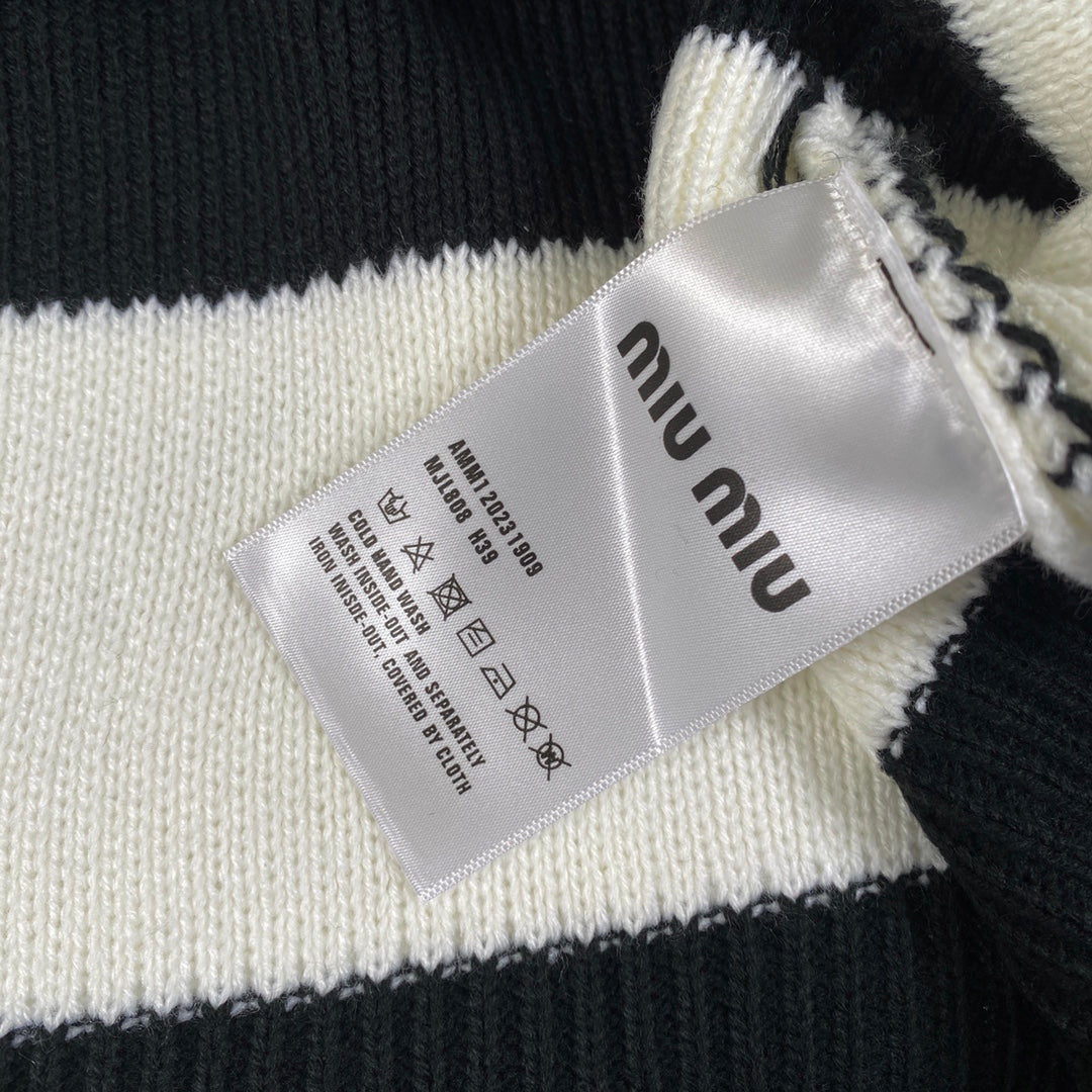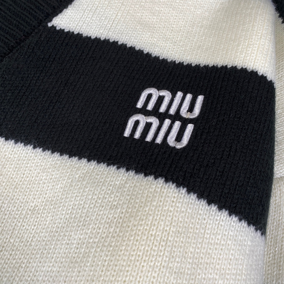 MiuMiu's classic black and white striped V-neck cardigan, worn by both Ouyang Nana and Yang Mi.