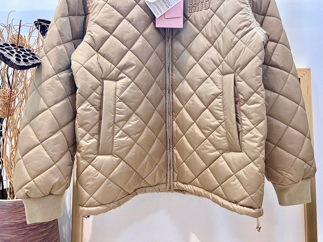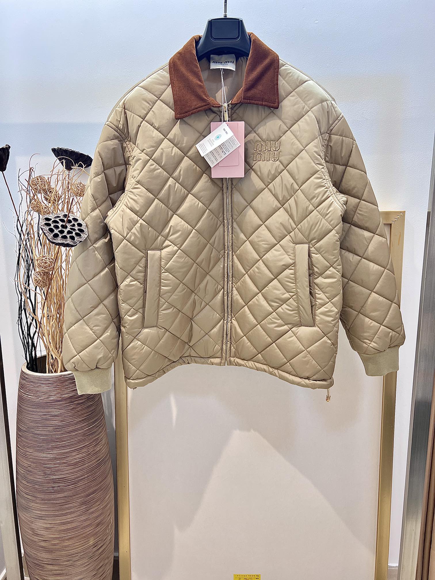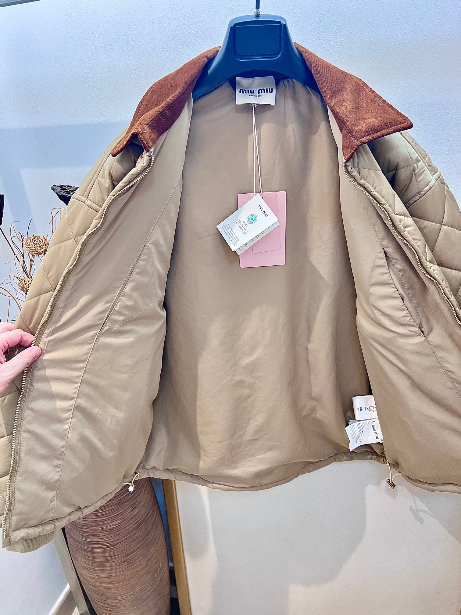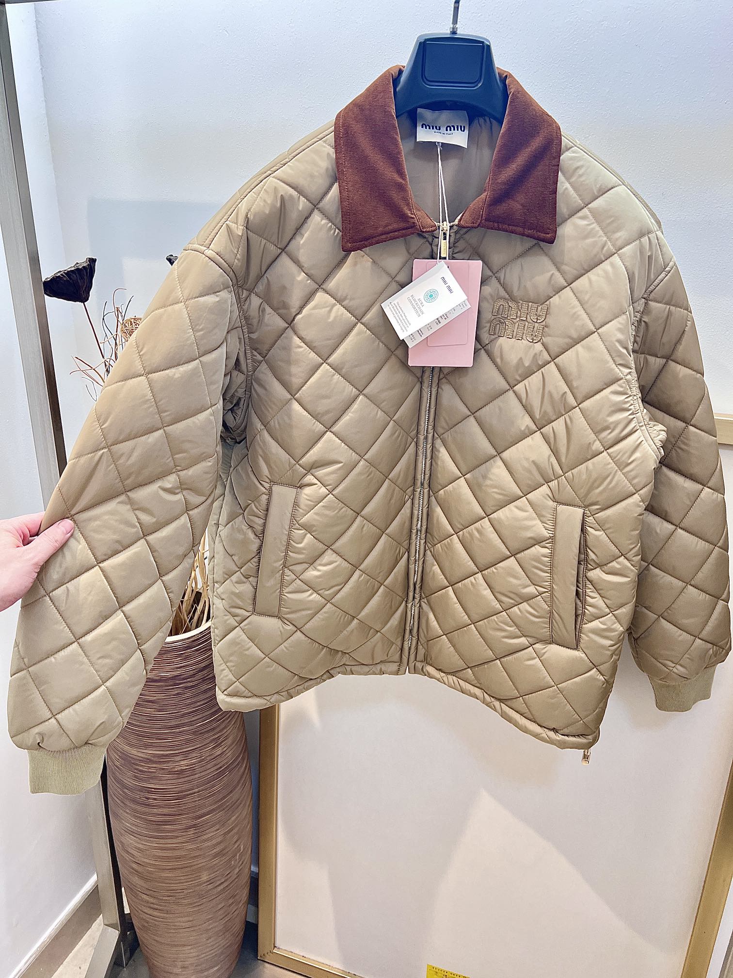 Miumiu/Miu Miu Diamond Quilted Lapel Jacket. This collar design is inspired by shirting, while incorporating the unique texture of quilted cotton throughout. Embellished with Miu Miu appliqués and embroidered logo monograms for a signature touch. Truly stylish! #BoysCamp #miumiuBoys #CommuterVersatile