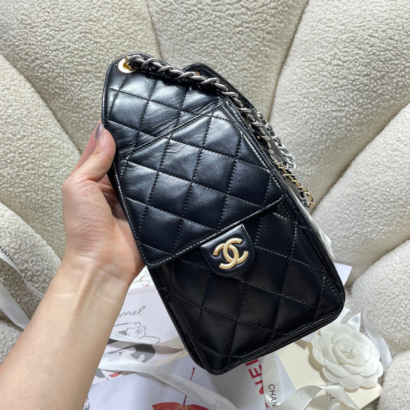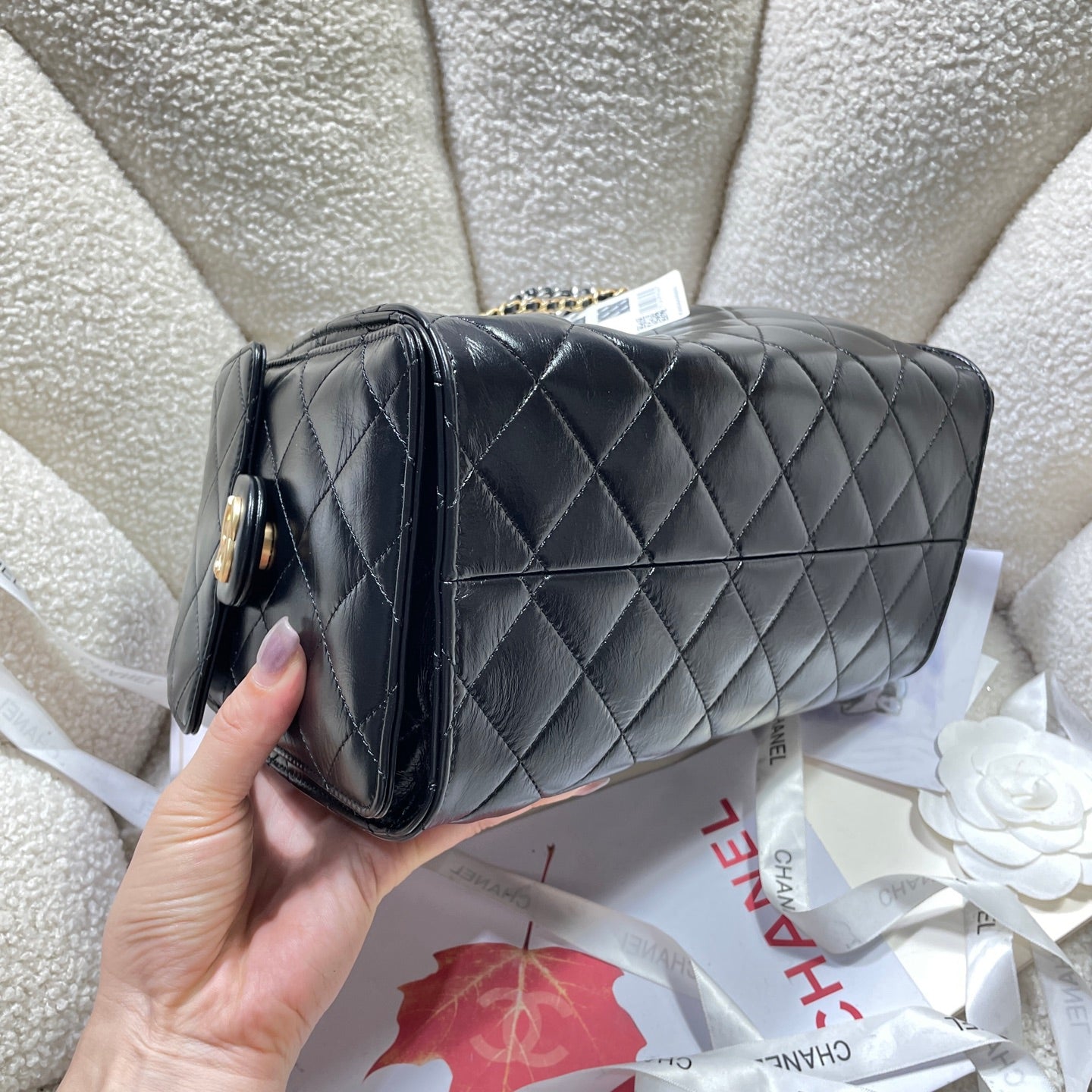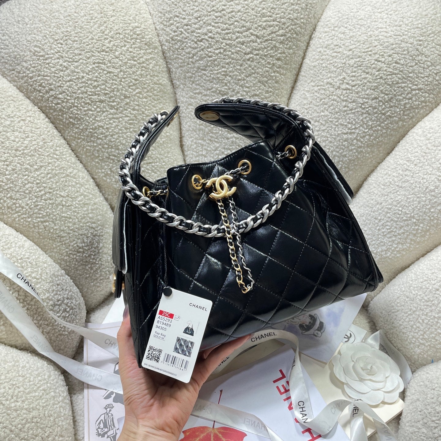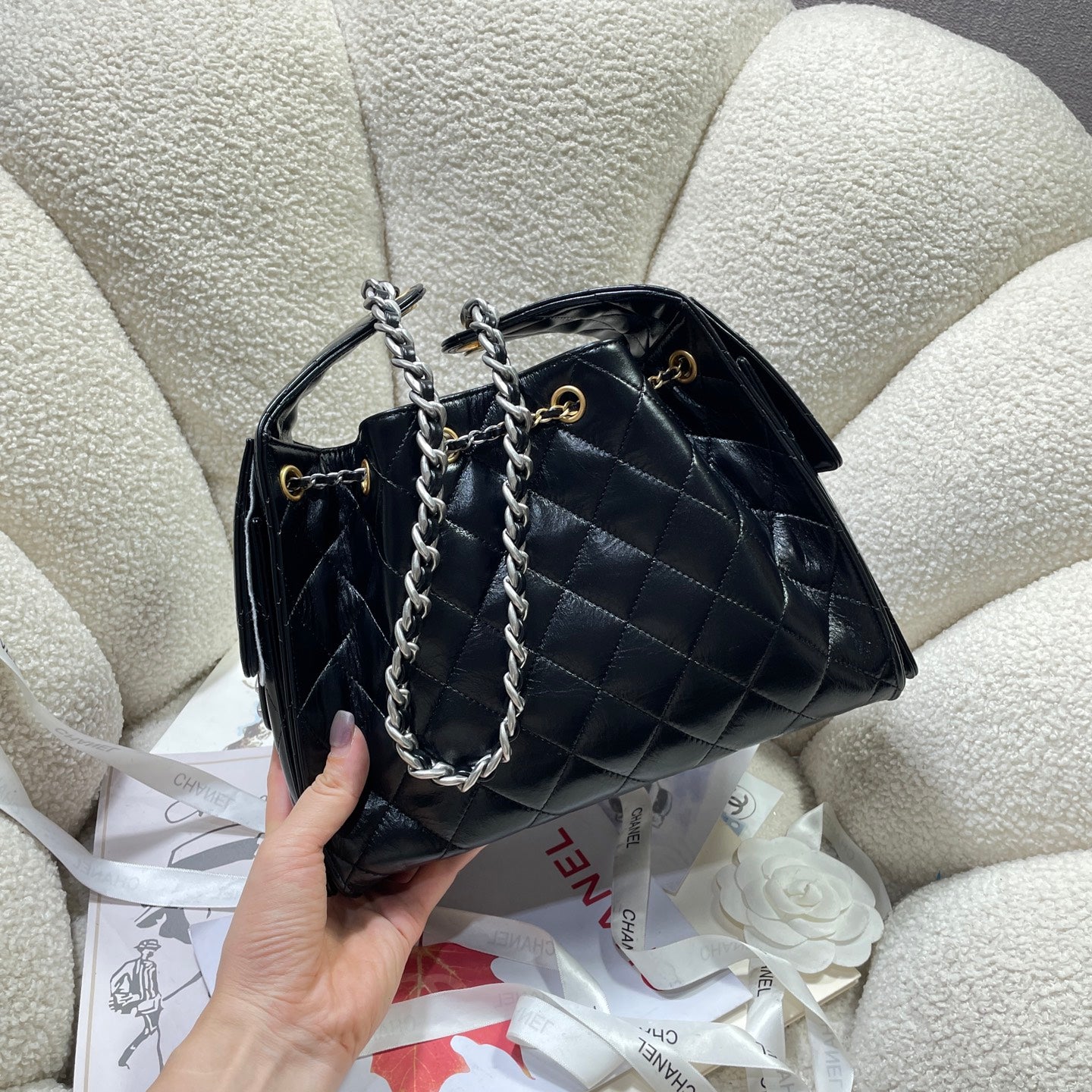 25c Spring Runway Collection is here! It's amazing that summer of 2024 has just begun, and the 2025 collection is already arriving! This shopping bag is so special because it's made of nubuck leather. It looks great when carried on one shoulder, and the retractable hardware adds a touch of chic. The multi-pocket design offers ample space and durability.