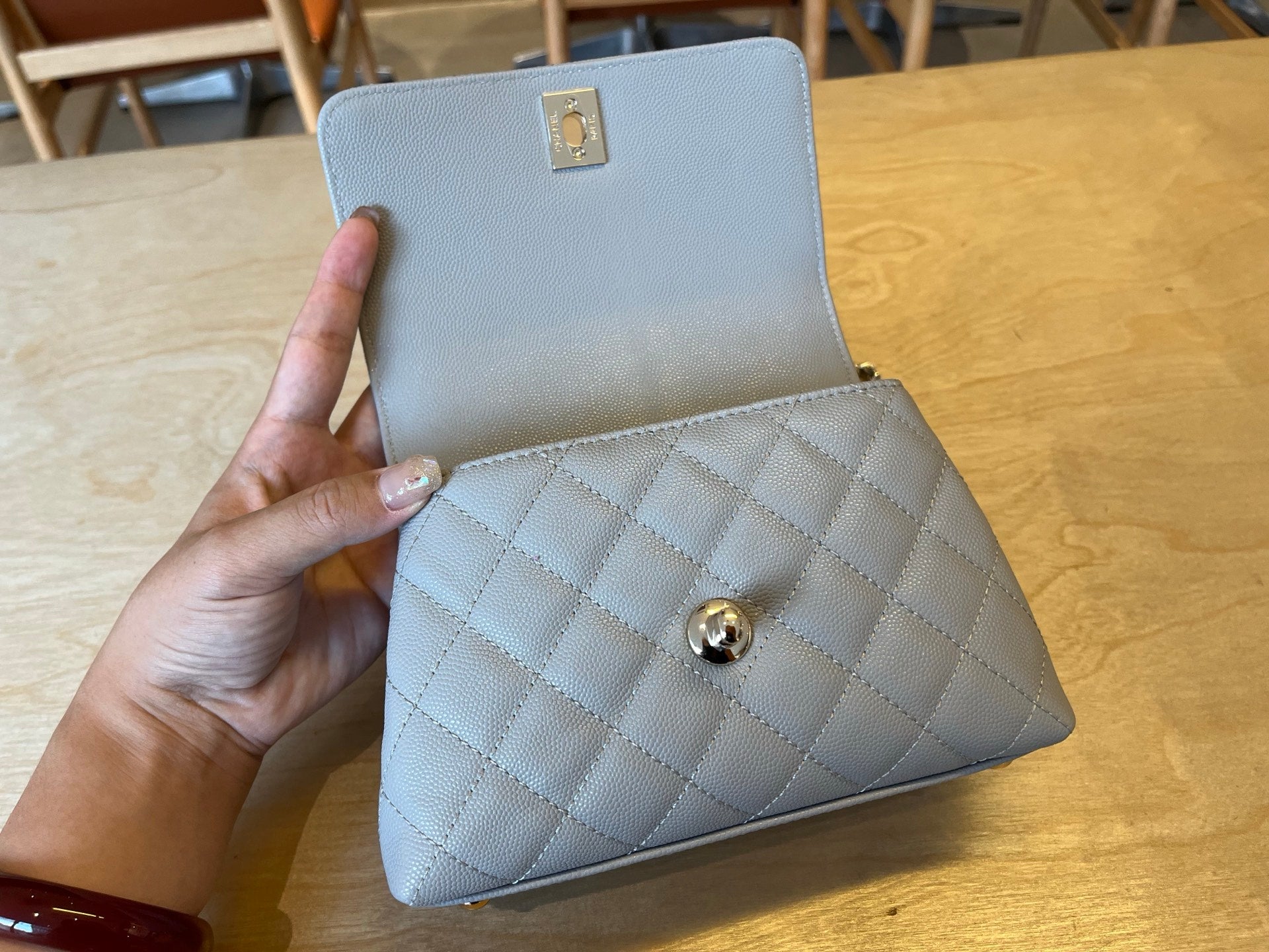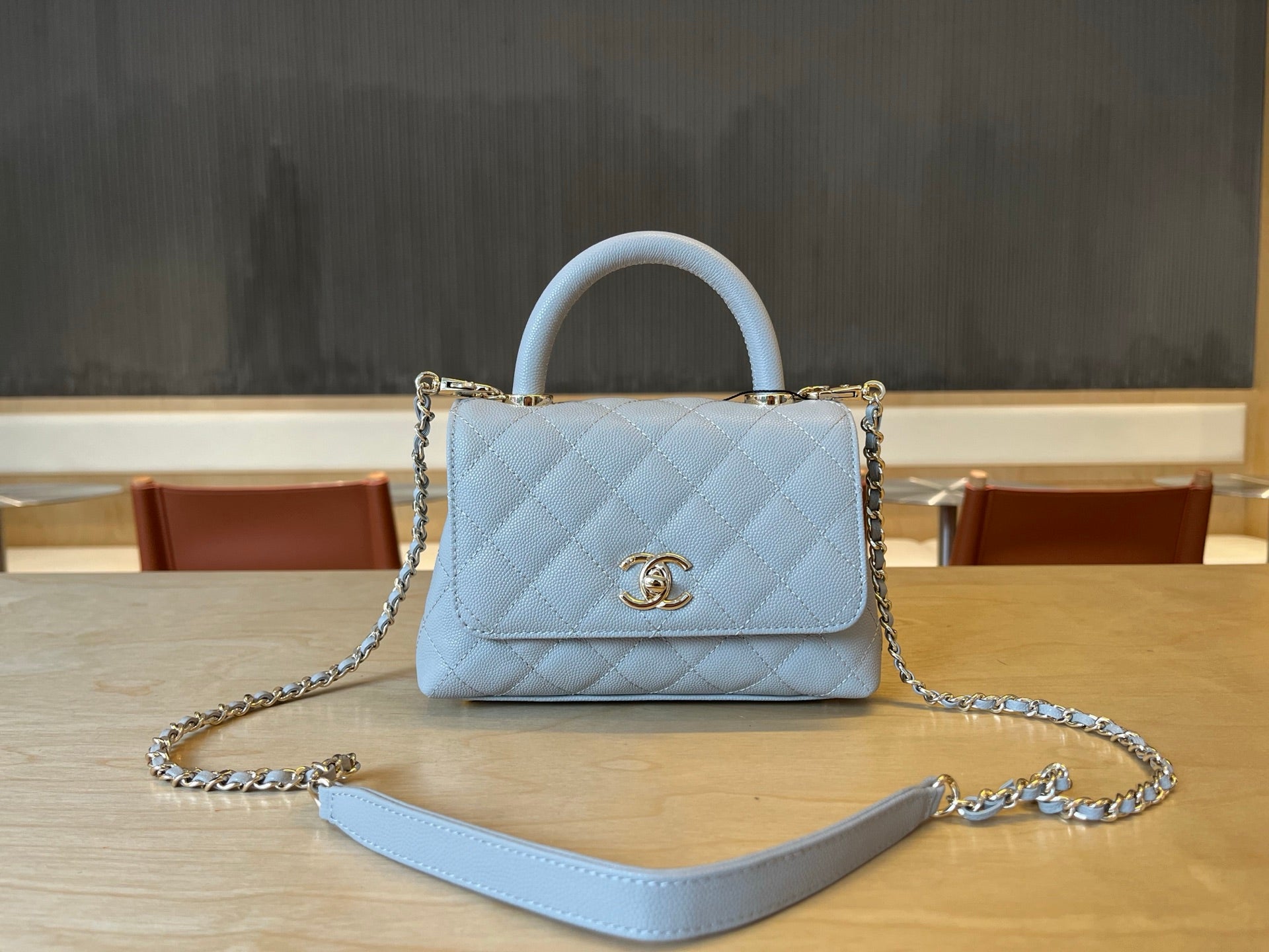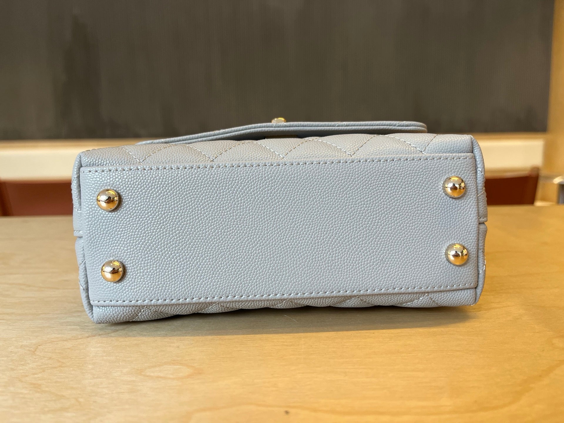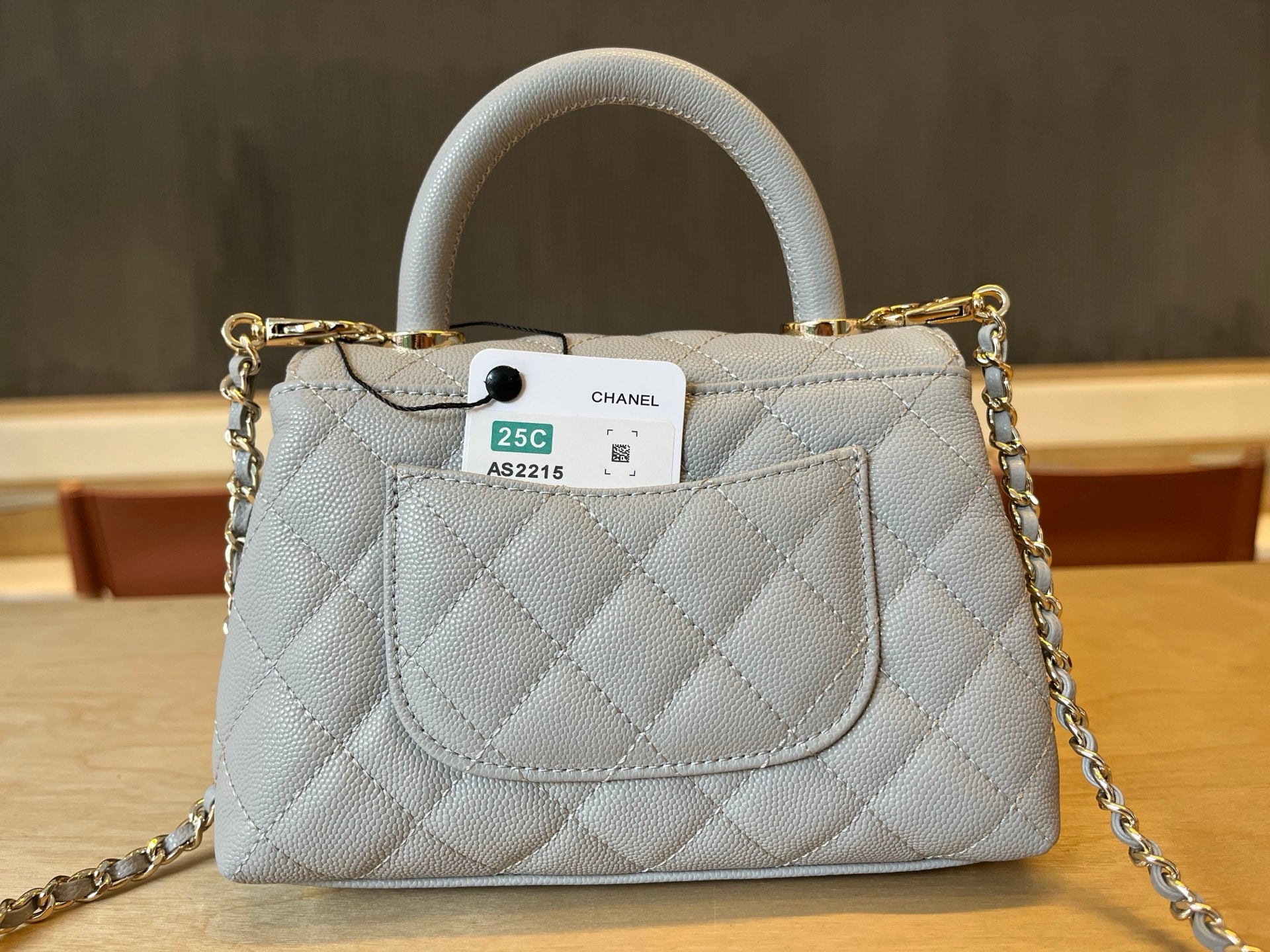 Coiled leather lining, Chanel 2021 new model. ๐๐๐๐ โ๐๐๐๐๐14k light gold corrugated leather lining. This season's Cocohandle bag features a full leather lining and chip hardware. Imported small-beaded cowhide tote flap bag. A new version of this classic king. Size: 19cm