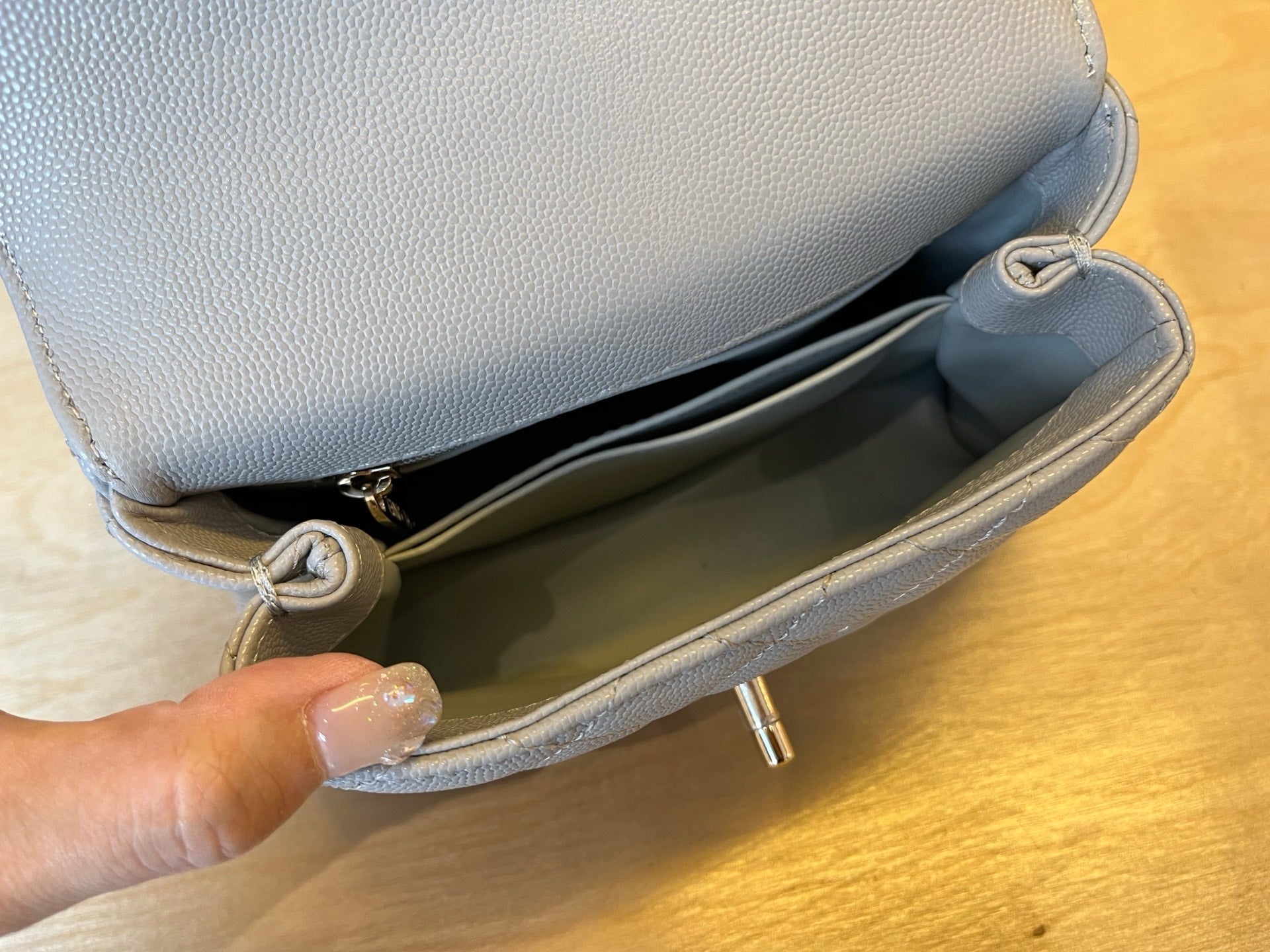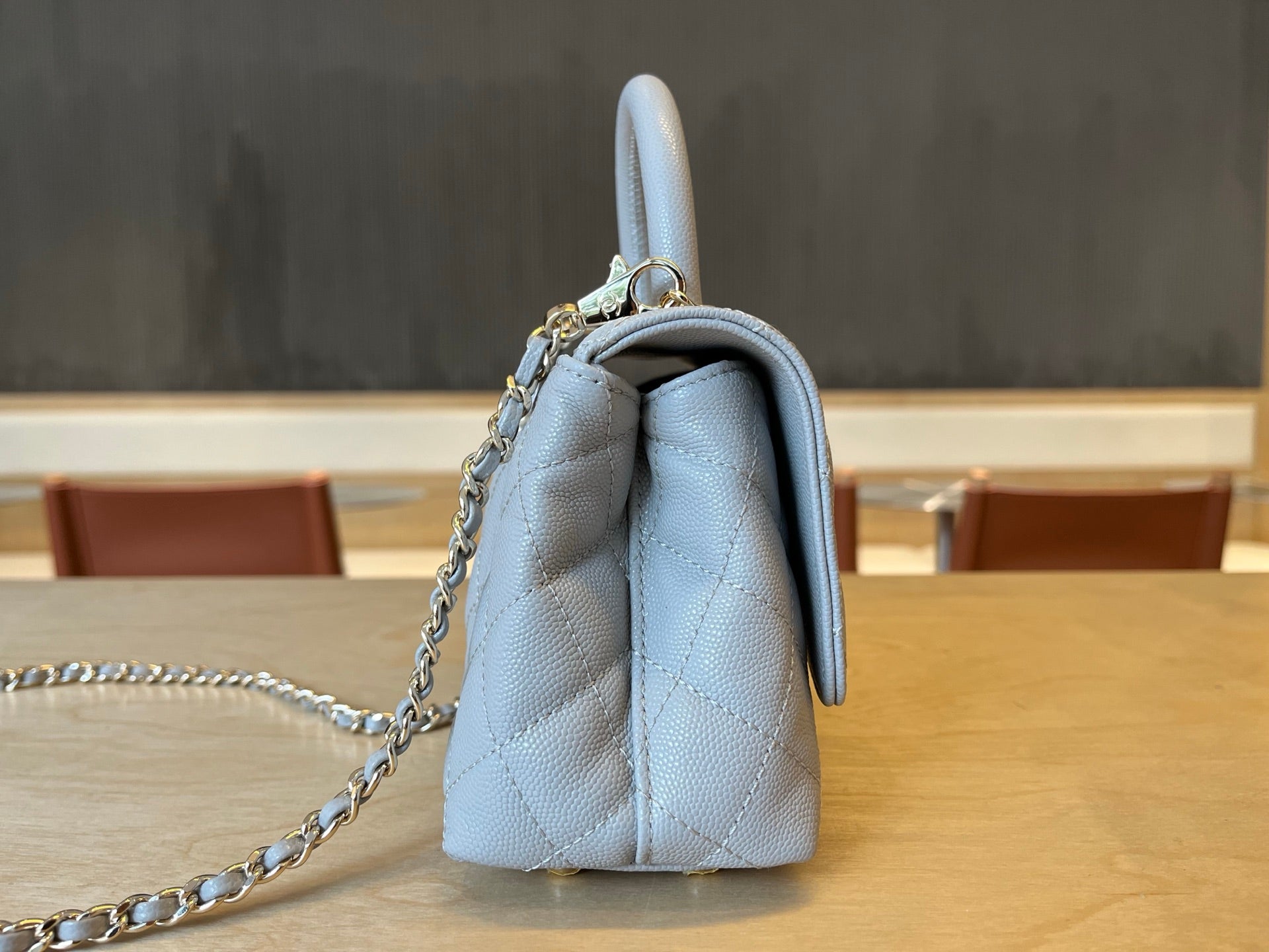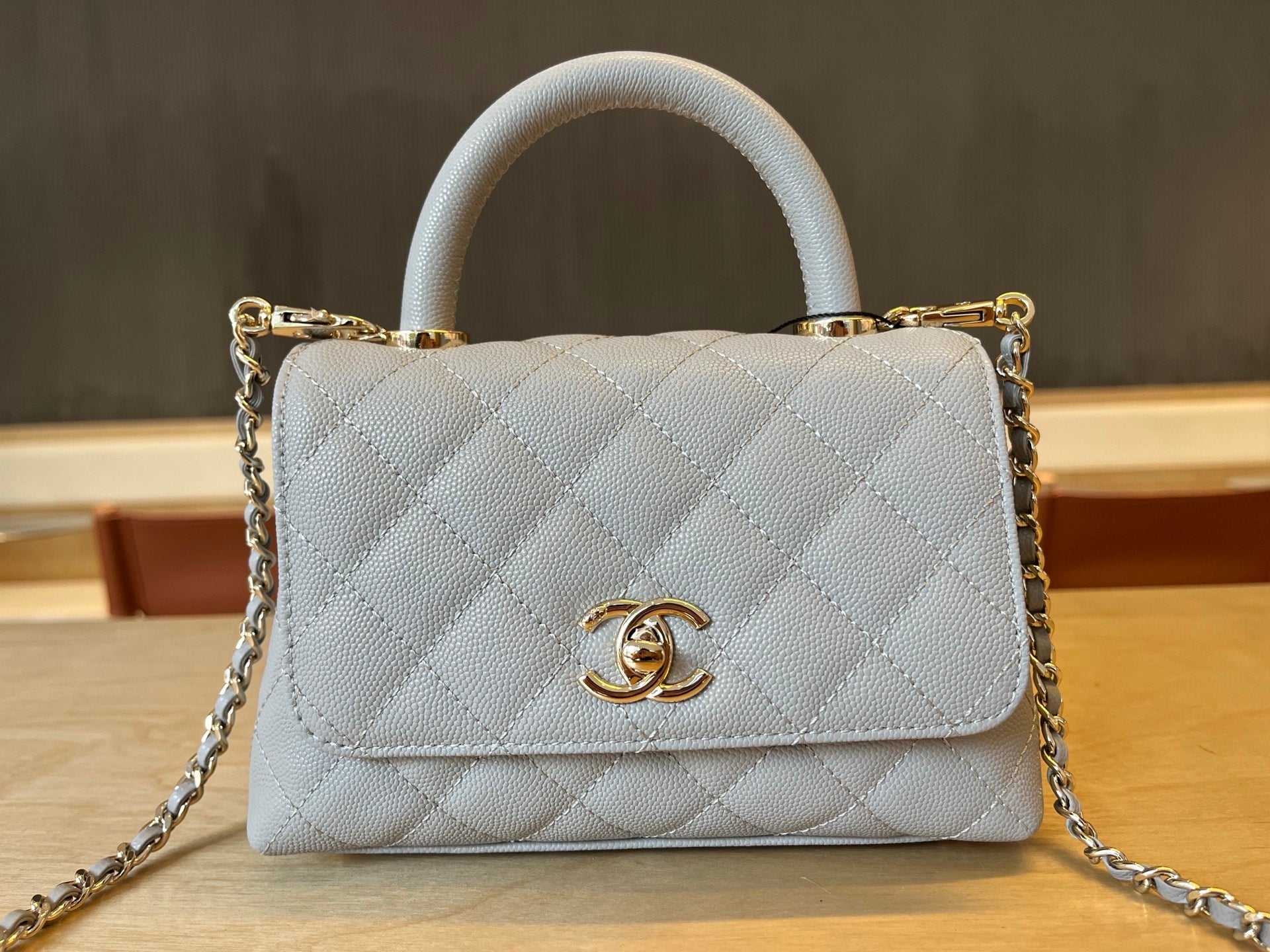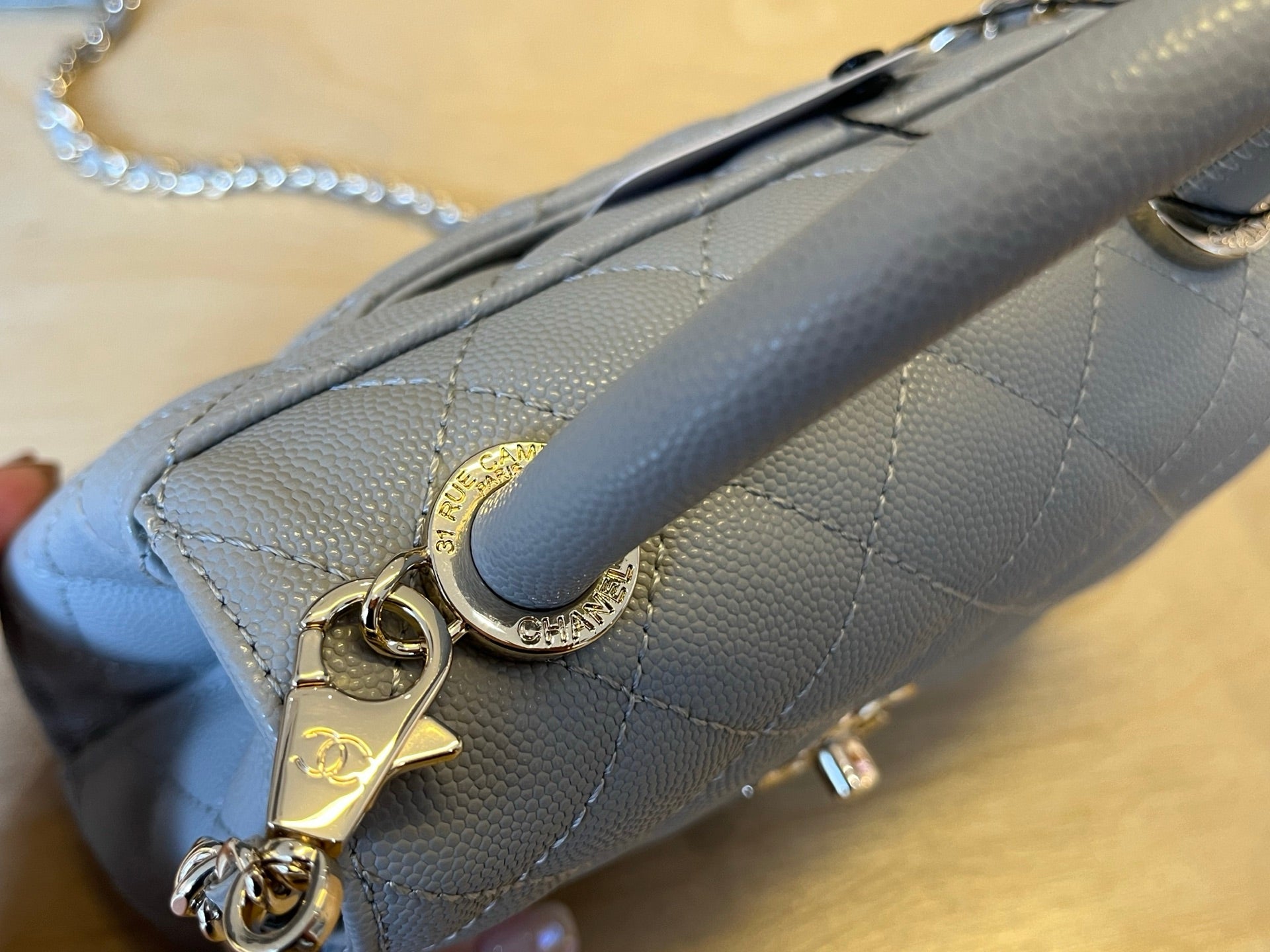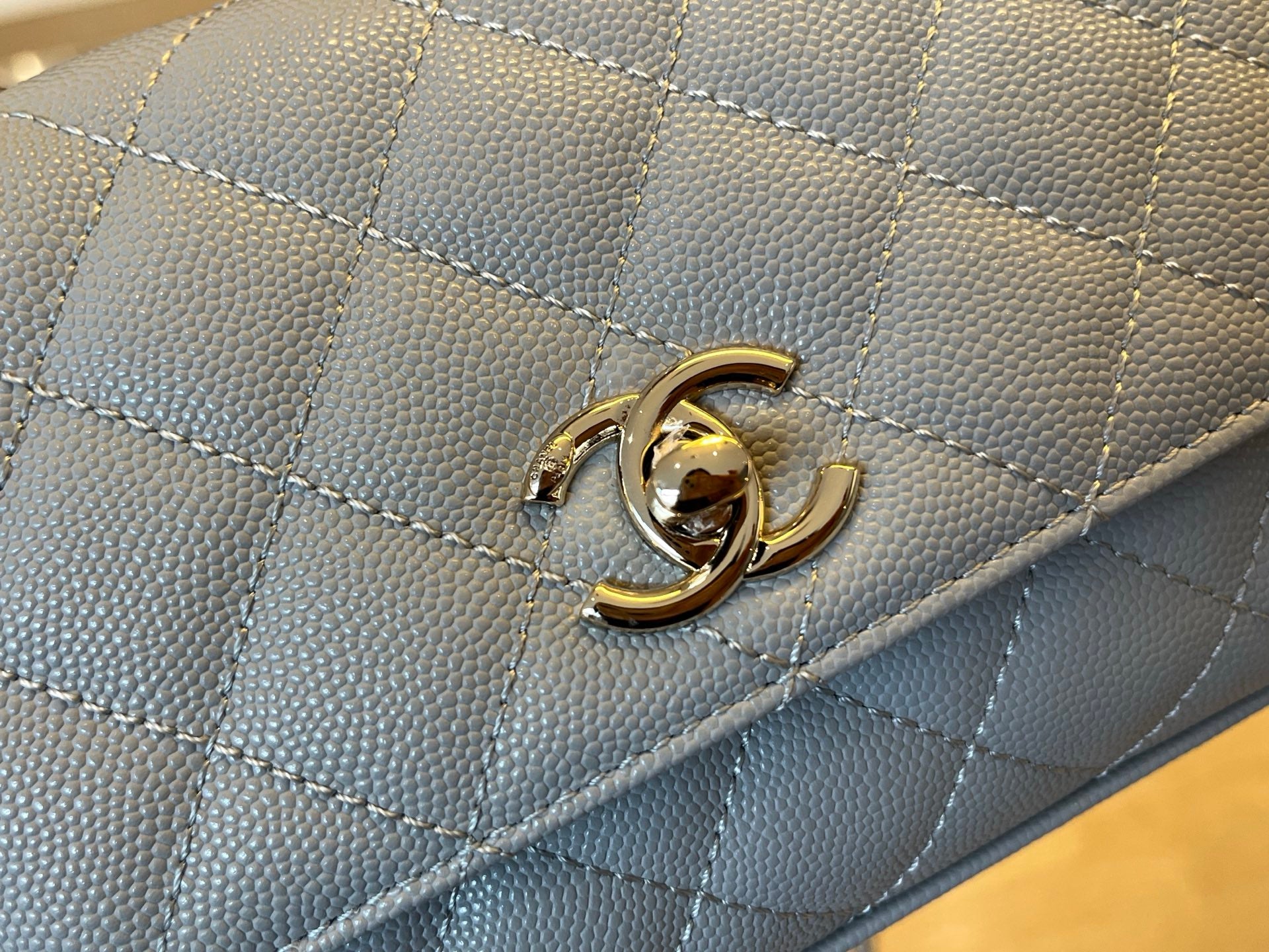 Coiled leather lining, Chanel 2021 new model. ๐๐๐๐ โ๐๐๐๐๐14k light gold corrugated leather lining. This season's Cocohandle bag features a full leather lining and chip hardware. Imported small-beaded cowhide tote flap bag. A new version of this classic king. Size: 19cm