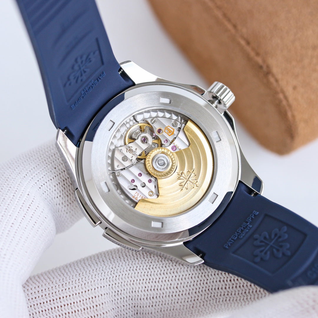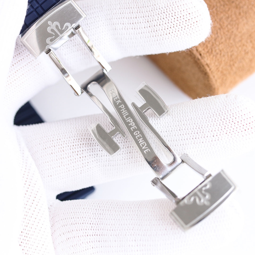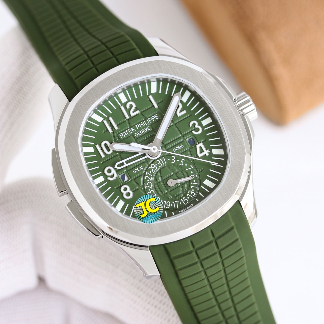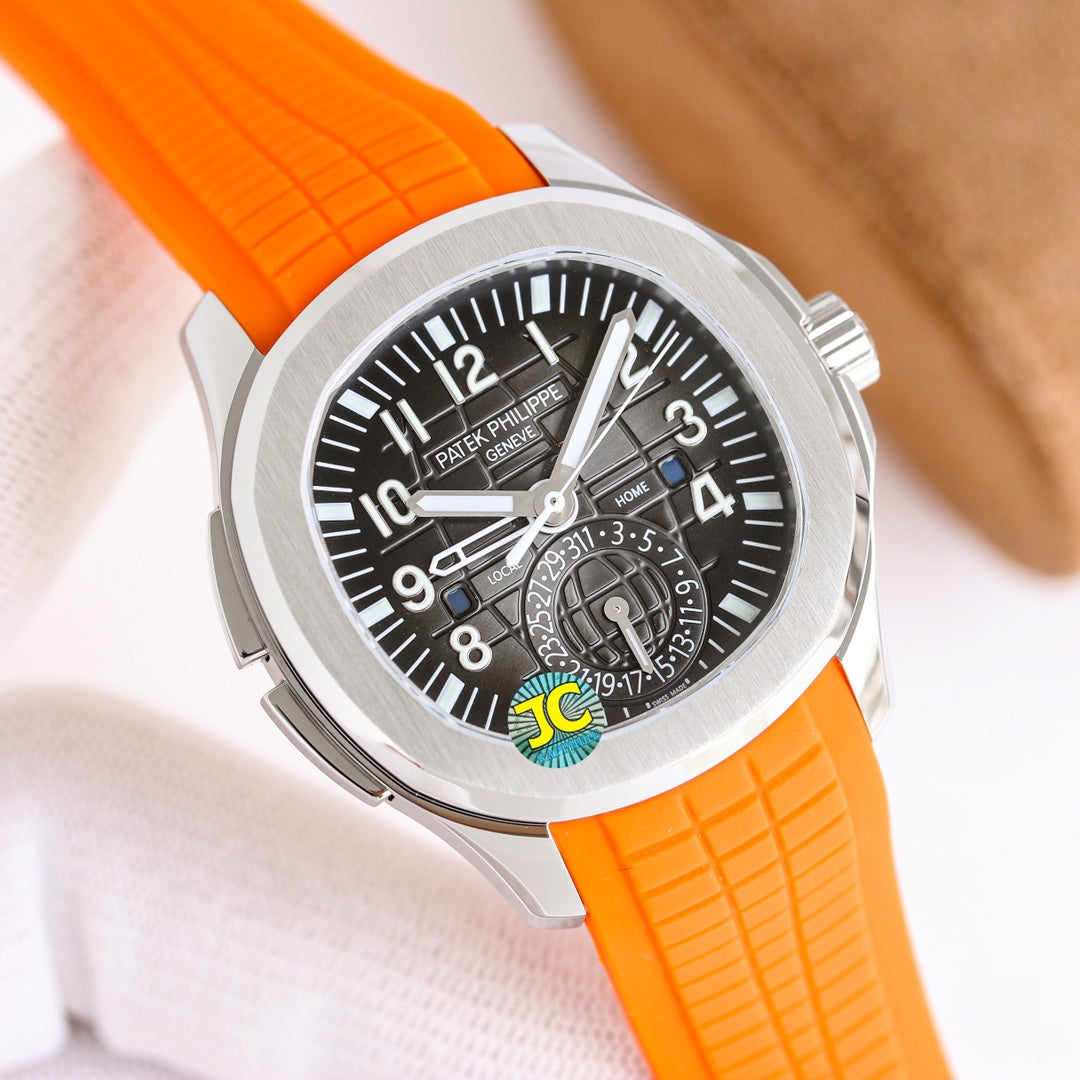 Top-tier replica 💰 Private message! This Patek Philippe Aquanaut 5164 Grenade Series watch features a modern, international dual time zone complication, perfectly suited to the tastes and needs of a younger generation. [Case] 40.8mm diameter, 11.4mm thickness. Crafted from Patek Philippe's classic stainless steel, the sleek octagonal shape is perfectly rounded. The shark-fin design on the left side of the case acts as a push-button for quickly adjusting the central skeletonized hour hand, which can be used to indicate the time in a second time zone. [Dial] Black embossed dial with metal numerals and luminescent hour markers. The square day/night apertures at 3 and 9 o'clock display "HOME" and "LOCAL" respectively, with blue and white representing night and day, respectively. A pointer-type date dial is at 6 o'clock. [Movement] Utilizing a Japanese 9015 modified 324 SC FUS automatic movement, the large three-hand movement is equipped with a dual time zone module. Equipped with a casual Tropical strap, this is a luxury sports watch for the younger generation! The pictures are a true replica of the original!