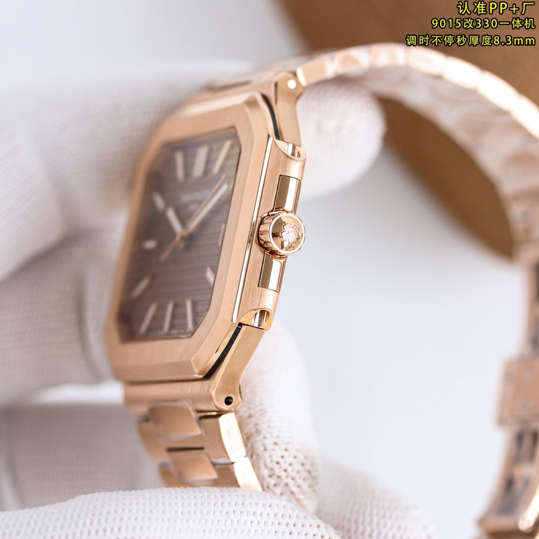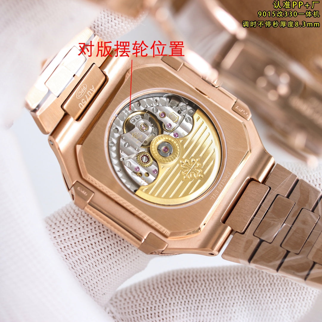 Highlights: 1️⃣ Movement: Equipped with a custom 9015 modified calibre 26-330 SC integrated movement, with automatic winding for non-stop adjustment of the seconds and the same balance wheel position as the original. 2️⃣ Bracelet: Custom 316L ergonomic strap with a new buckle. 3️⃣ Case: 45mm in size, only 8.3mm thick (measured from the 10 o'clock to the 4 o'clock position). Because the case is approximately square, the top and bottom widths are smaller than this, making the visual impact less pronounced.