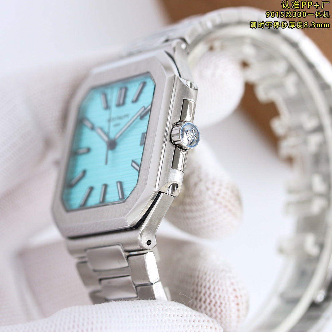 Highlights: 1️⃣ Movement: Equipped with a custom 9015 modified calibre 26-330 SC integrated movement, with automatic winding and time adjustment without stopping the seconds. 2️⃣ Bracelet: Custom 316L ergonomic strap with a new buckle. 3️⃣ Case: 45mm in size, only 8.3mm thick (measured from the 10 o'clock to the 4 o'clock position). Because the case is approximately square, the top and bottom widths are smaller than this, making the visual impact less pronounced.