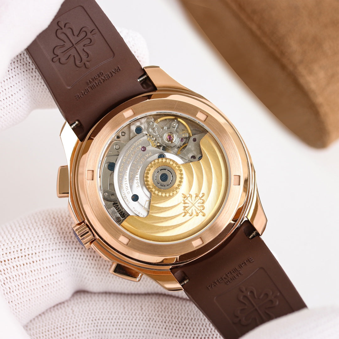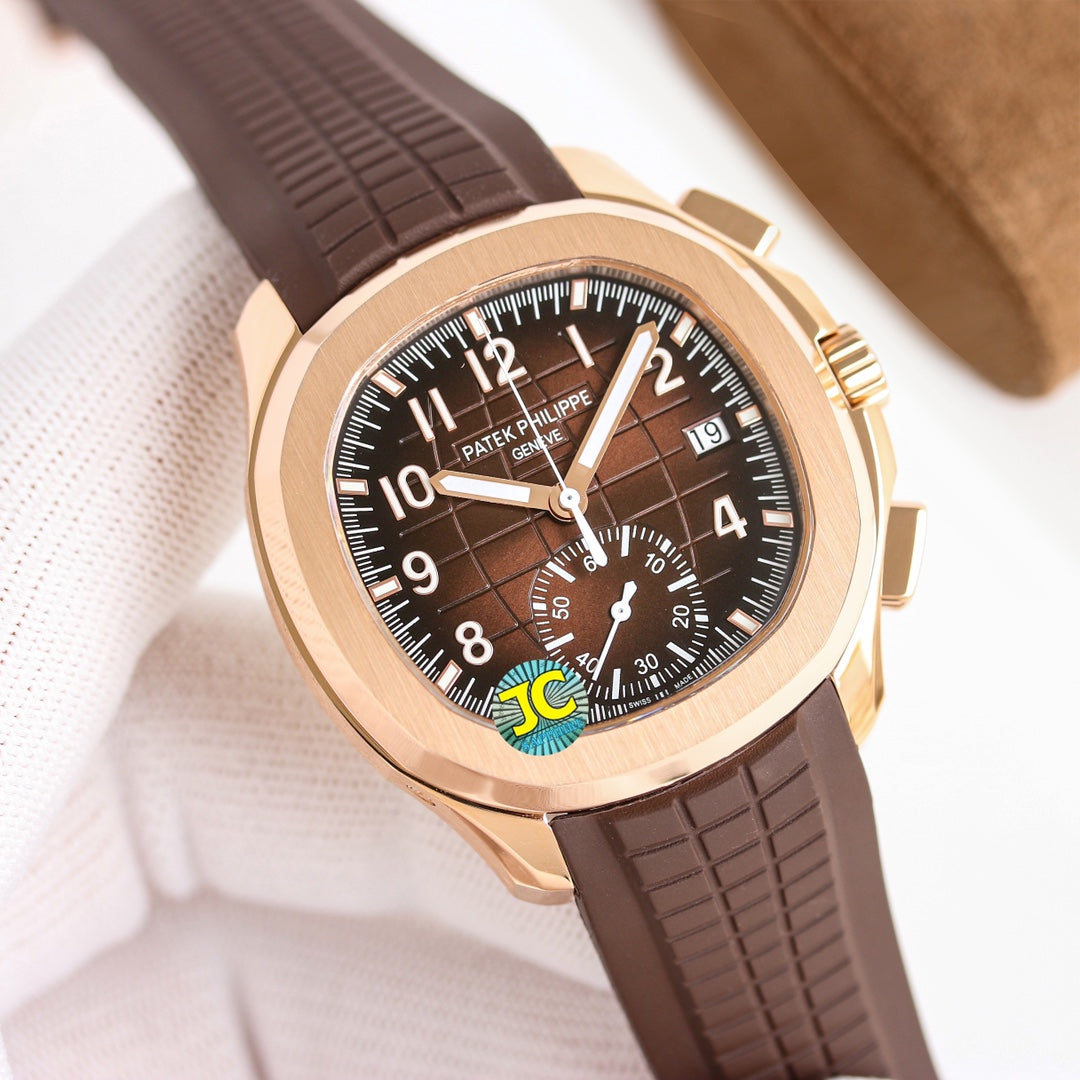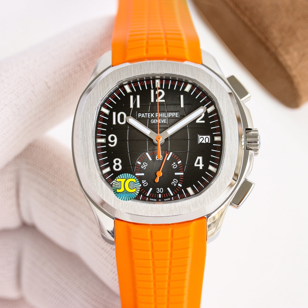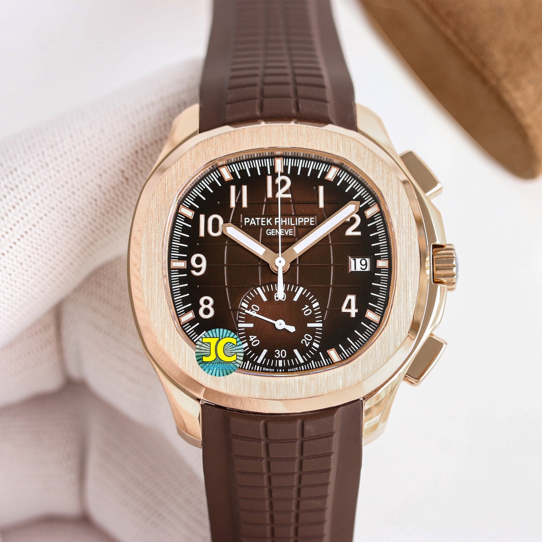 Top-quality replica 💰 Private message! Patek Philippe Aquanaut Series, Grenade Series Watch Model: 5968A-001) 1/4mm stainless steel case with chronograph hands, a peripheral rail-type scale accurate to a quarter second, and a 60-minute counter. The stainless steel case and rubber strap exude a stylish, sporty vibe. The case features a classic, rounded octagonal bezel with polished chamfers for a refined look. The lugs, polished on the front and brushed on the sides, are slightly curved, creating a natural curve that perfectly fits the wrist.