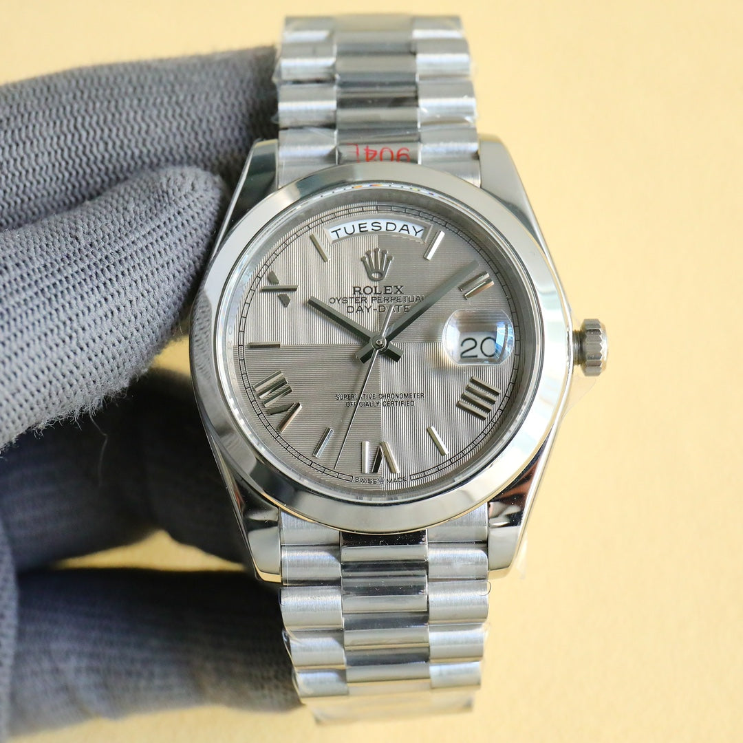 4⃣️ Equipped with the 2836 automatic movement, the watch features a day-date, time adjustment, thickness, and construction identical to the original.