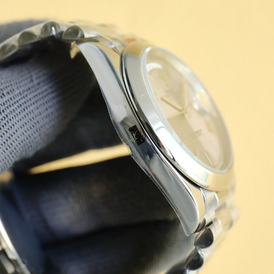 2⃣️ Oyster case construction, one-piece middle case, screw-down caseback and winding crown.