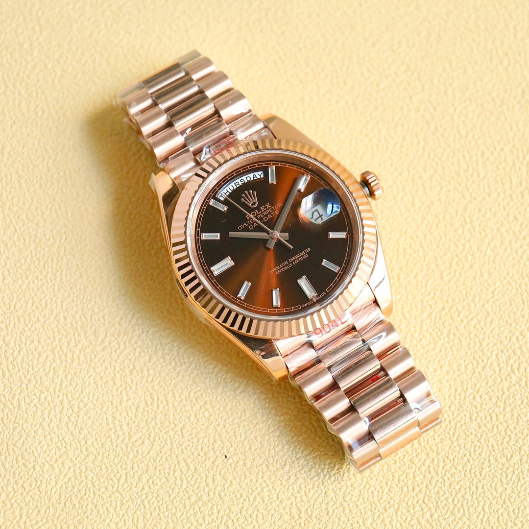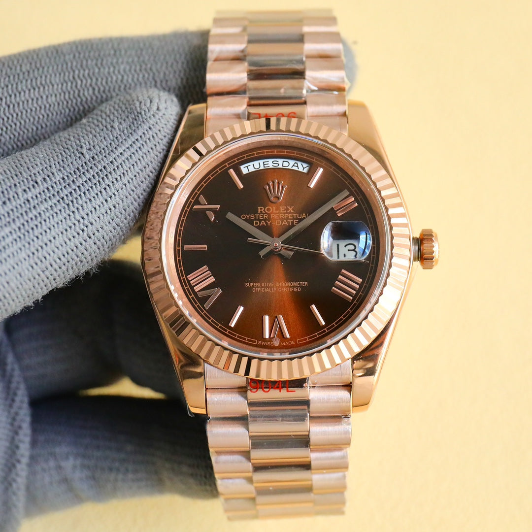 4⃣️ Equipped with the 2836 automatic movement, the watch features a day-date, time adjustment, thickness, and construction identical to the original.