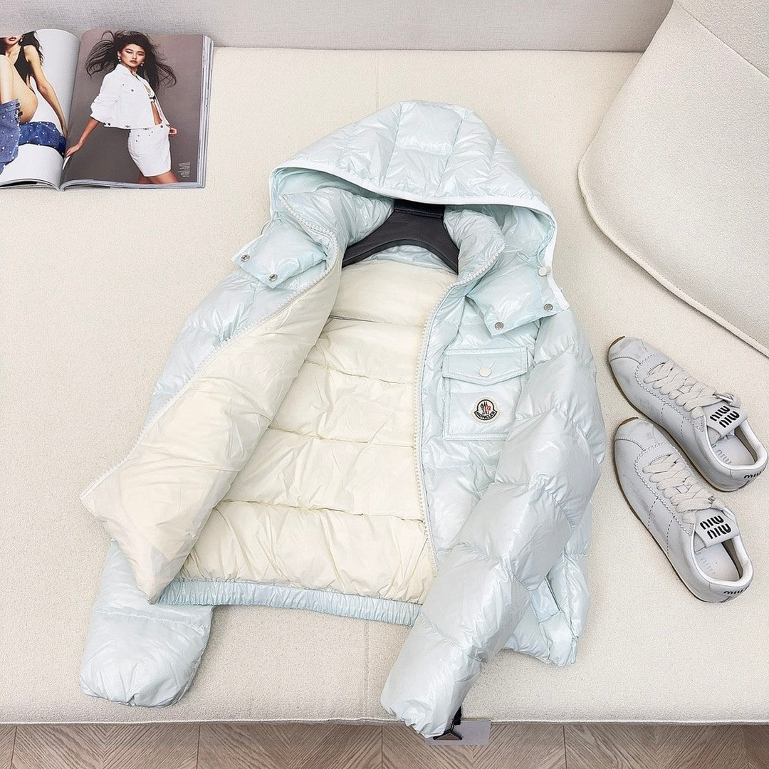 original quality MC 25 autumn and winter new products official website new color matching short hooded down jacket 😘😘 three-dimensional tailoring design fashionable and handsome national standard 90 white duck down filling imported memory silk fabric texture soft, light and comfortable imported machine sewing three-dimensional pressure line line technology original hardware accessories original label original label complete set real heavy weight four colors spot sale