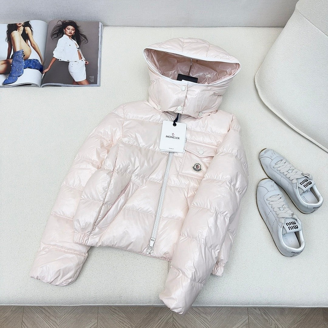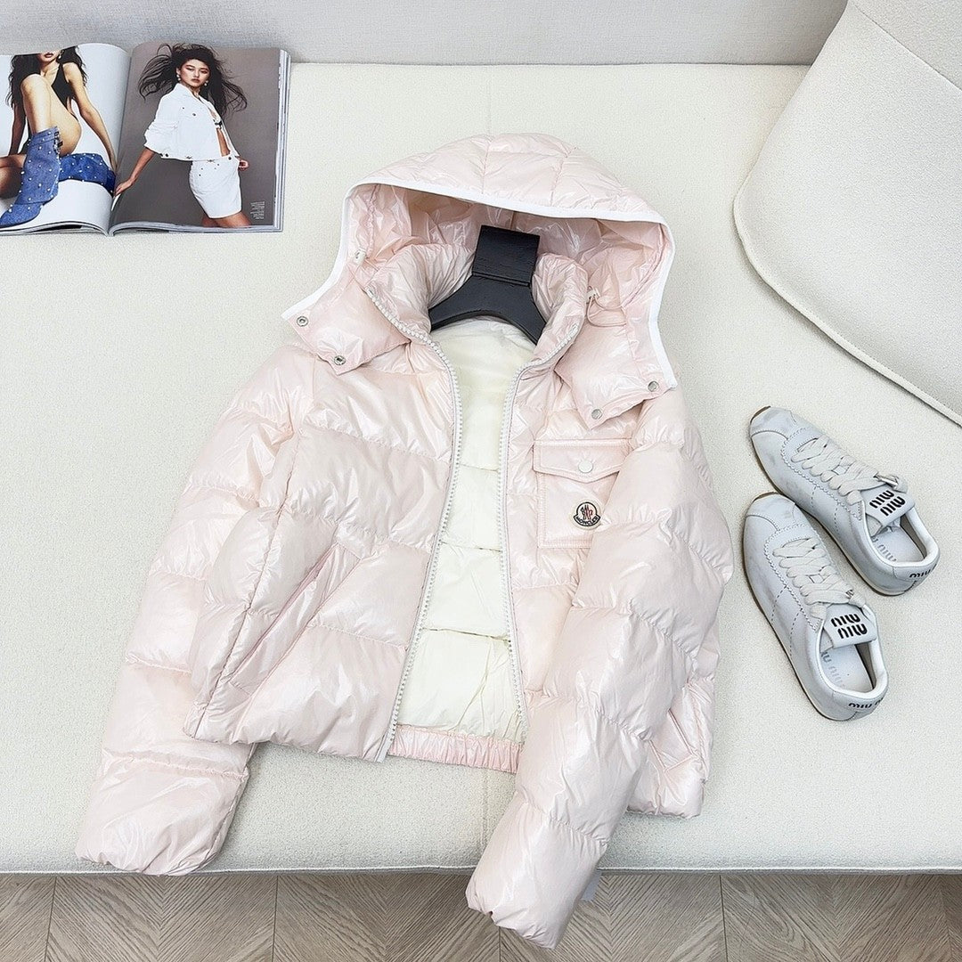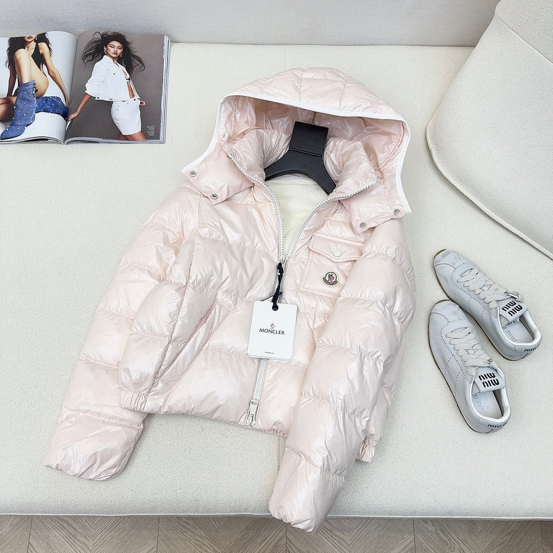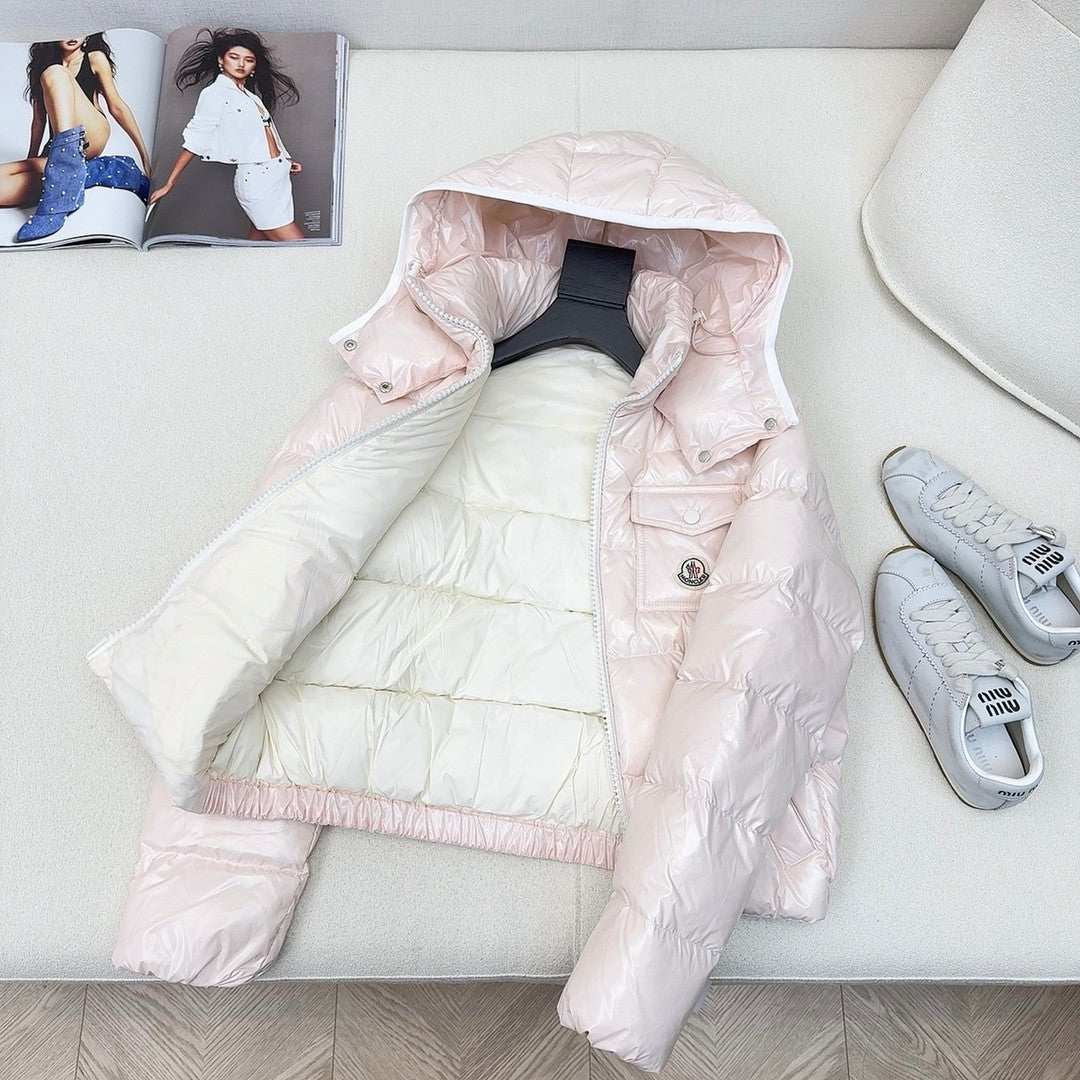 original quality MC 25 autumn and winter new products official website new color matching short hooded down jacket 😘😘 three-dimensional tailoring design fashionable and handsome national standard 90 white duck down filling imported memory silk fabric texture soft, light and comfortable imported machine sewing three-dimensional pressure line line technology original hardware accessories original label original supporting complete physical weight and weight four colors are available for sale