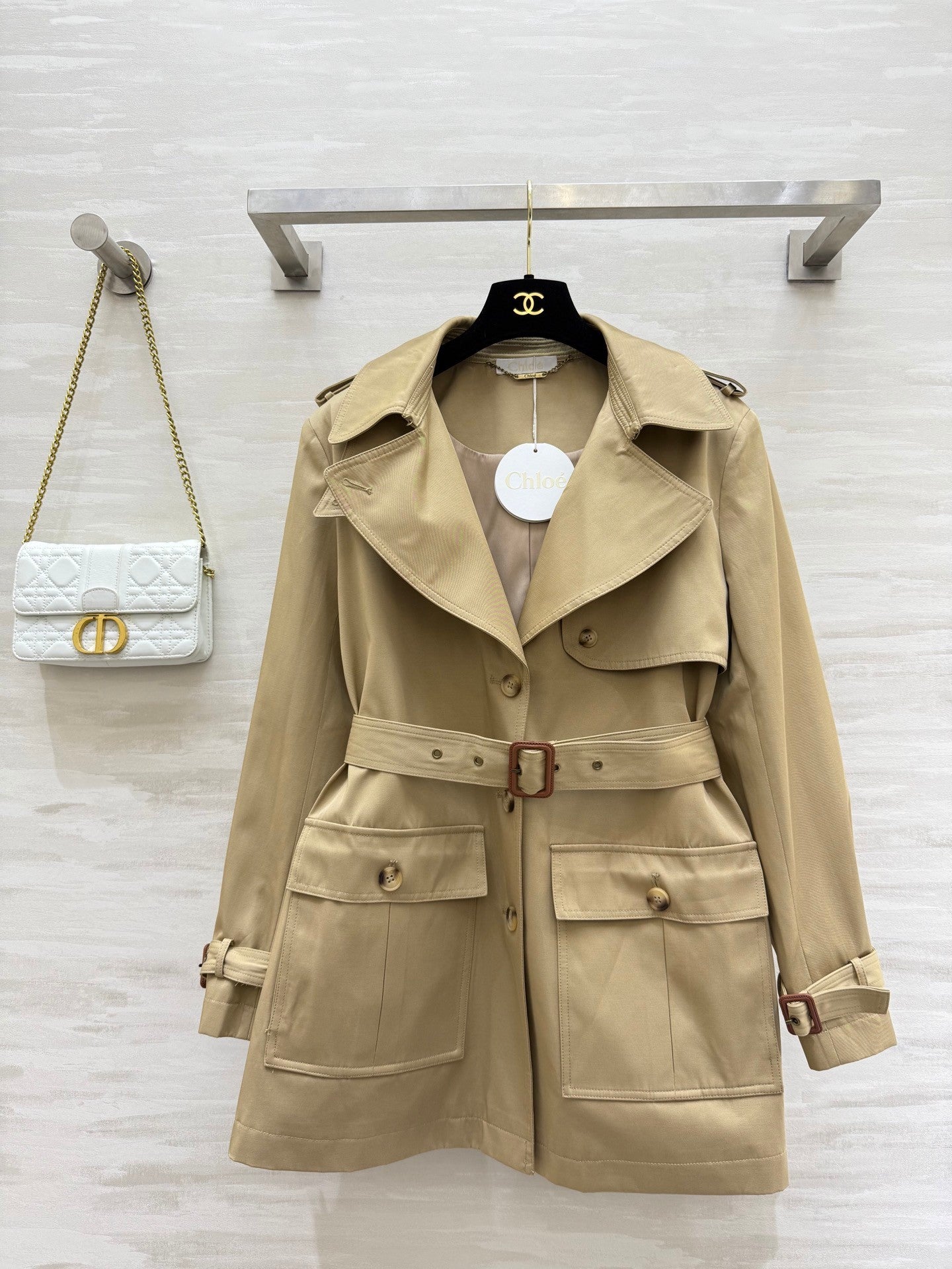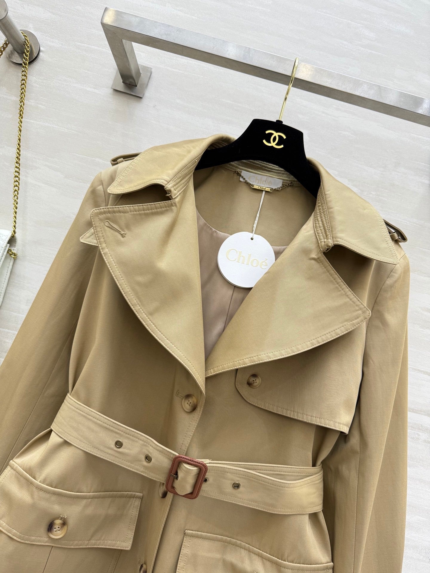 Chlo♡²⁵ Early Autumn New Trench Coat😘😘 Heroic and valiant, Parisian blogger street style, atmospheric artifact, retro three-dimensional H silhouette tailoring, loose and lazy, hiding the flesh, heroic and upright, high-density trench coat fabric, super good texture, high quality, size: SML (S size bust: 96, length: 70)