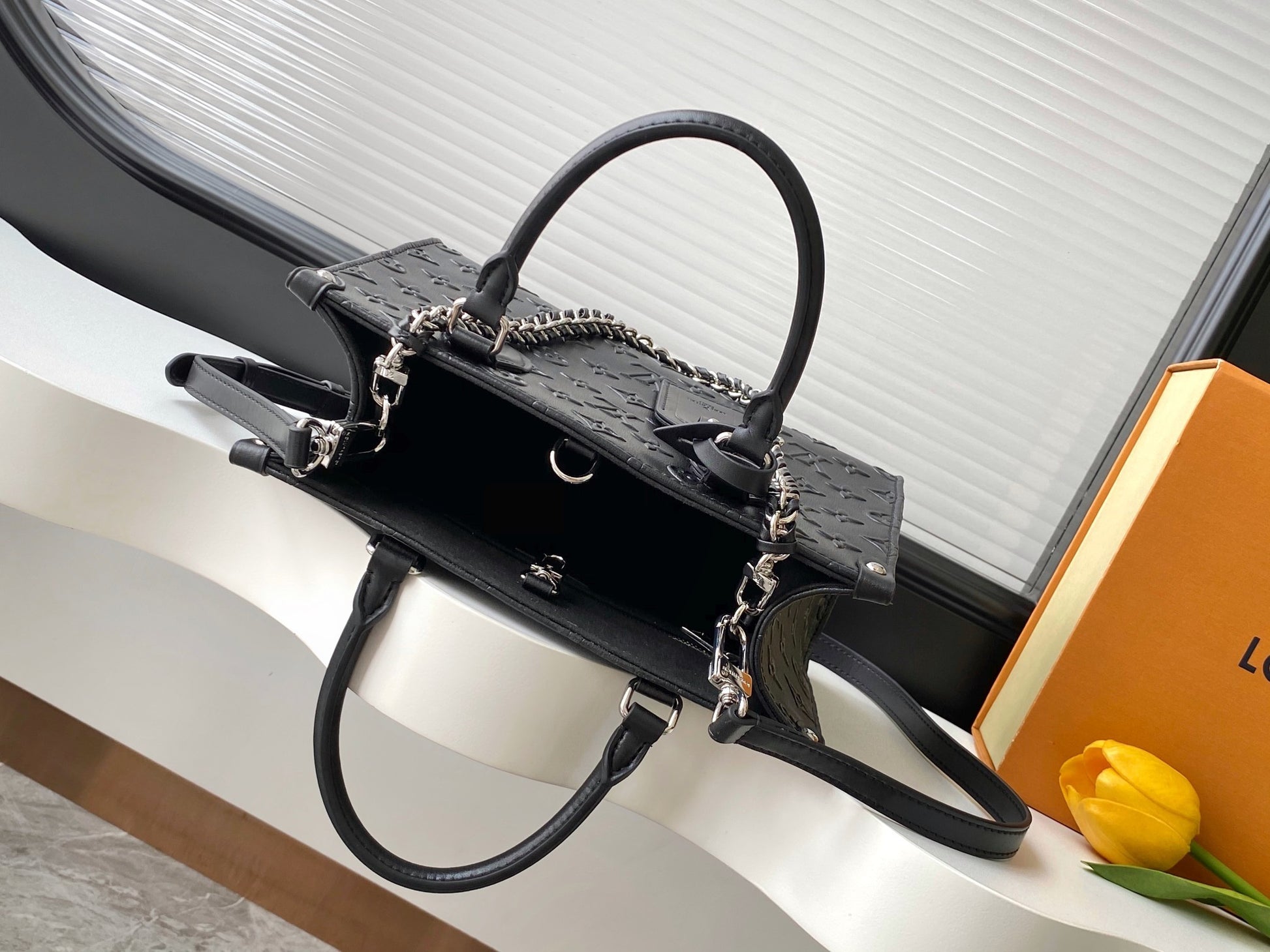This OnTheGo small bag, from the Monogram Bold collection, was a standout on the Spring/Summer 2025 runway with its sleek silhouette. Its Monogram-embossed leather body is accented with dazzling hardware and a detachable braided chain, offering ample space for everyday essentials, making it an ideal choice for both city commutes and weekend getaways.