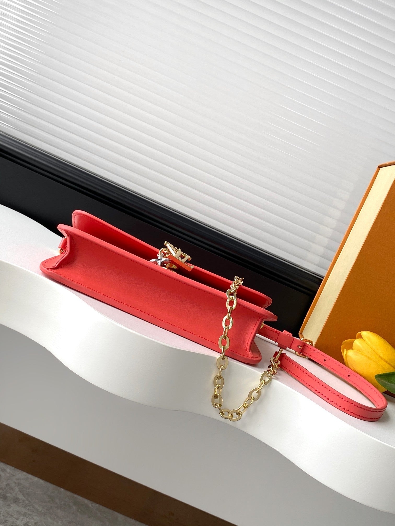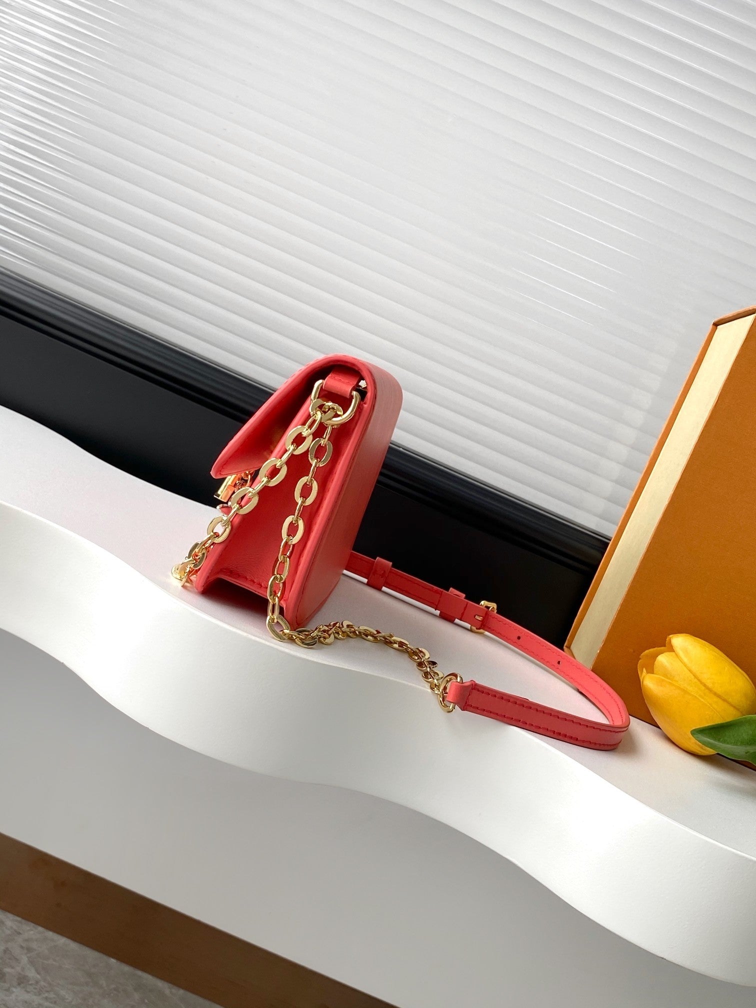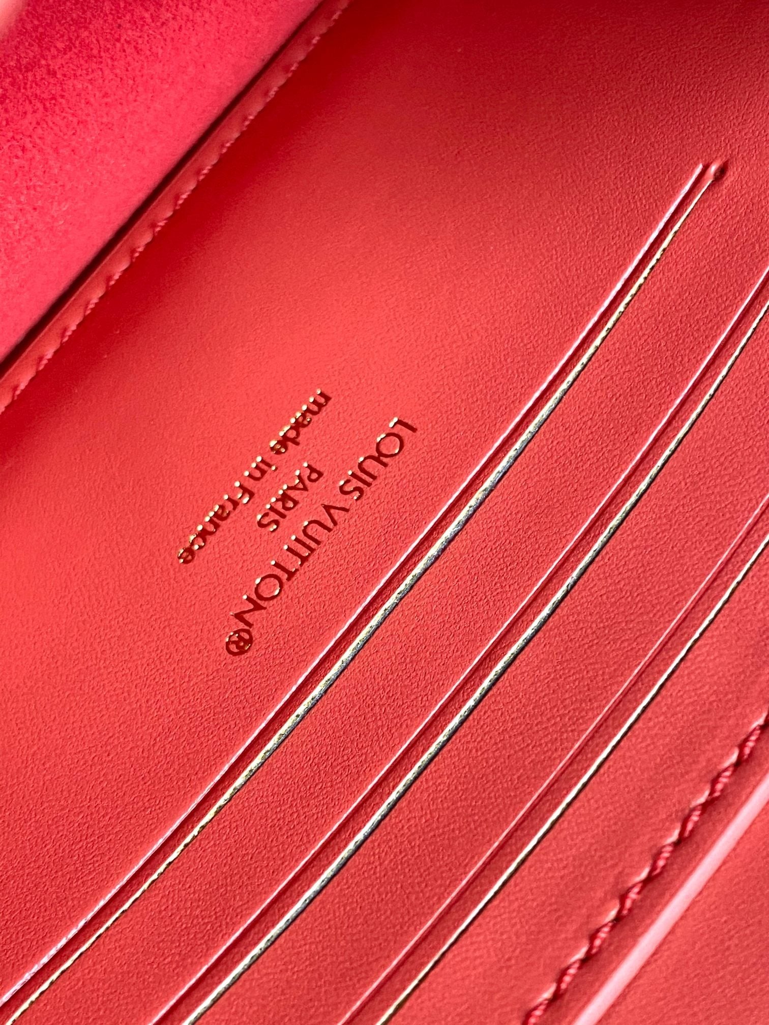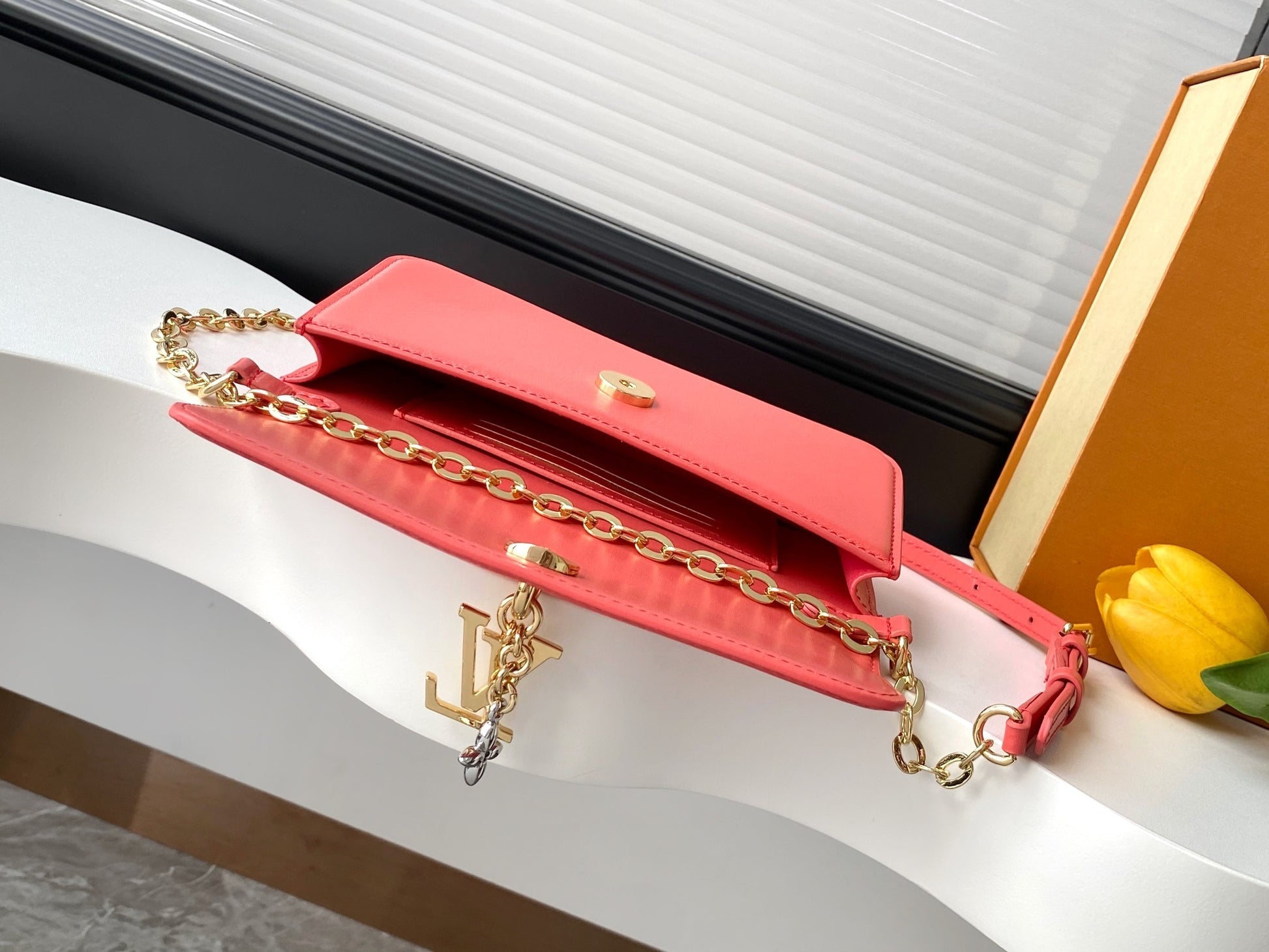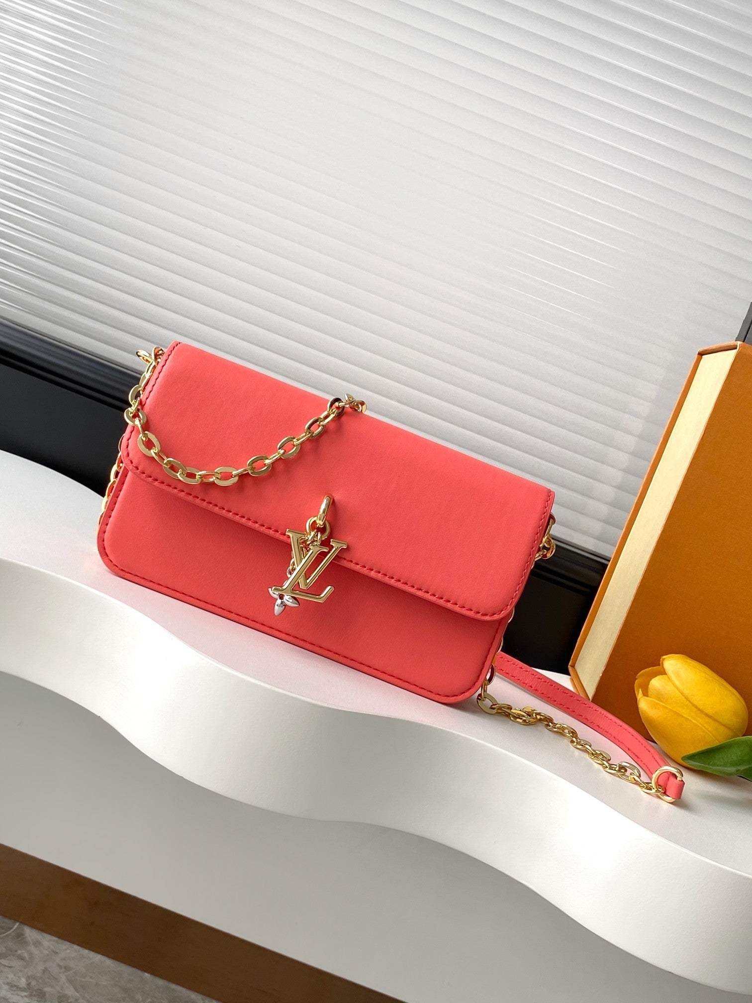 This Wallet on Chain bag from the Louis Vuitton Bloom collection features a stylish yet practical silhouette crafted from cowhide leather. Embellished with details inspired by the brand's iconic Monogram pattern, it offers ample space for a smartphone, while contrasting metal hardware adds an elegant touch.