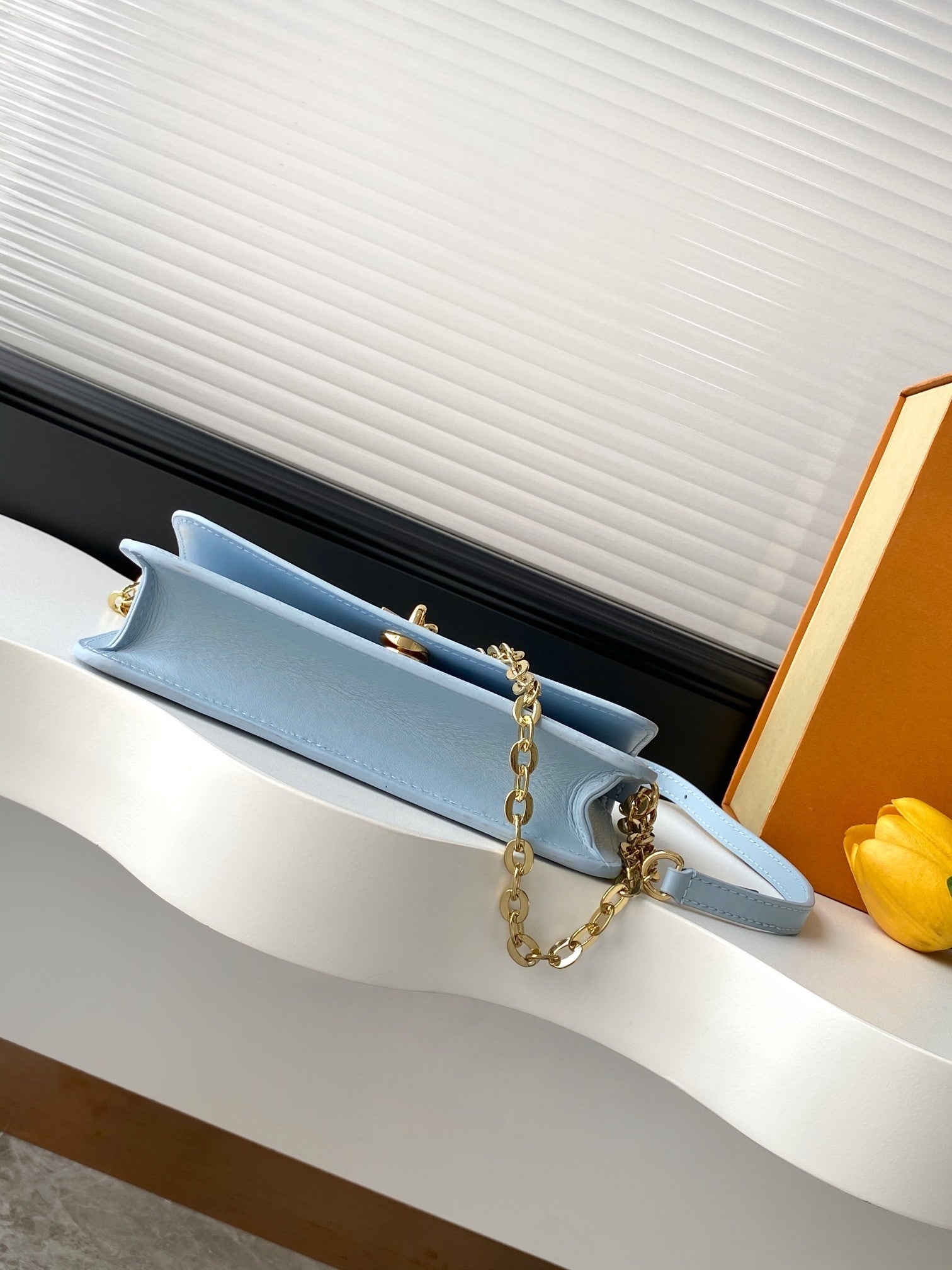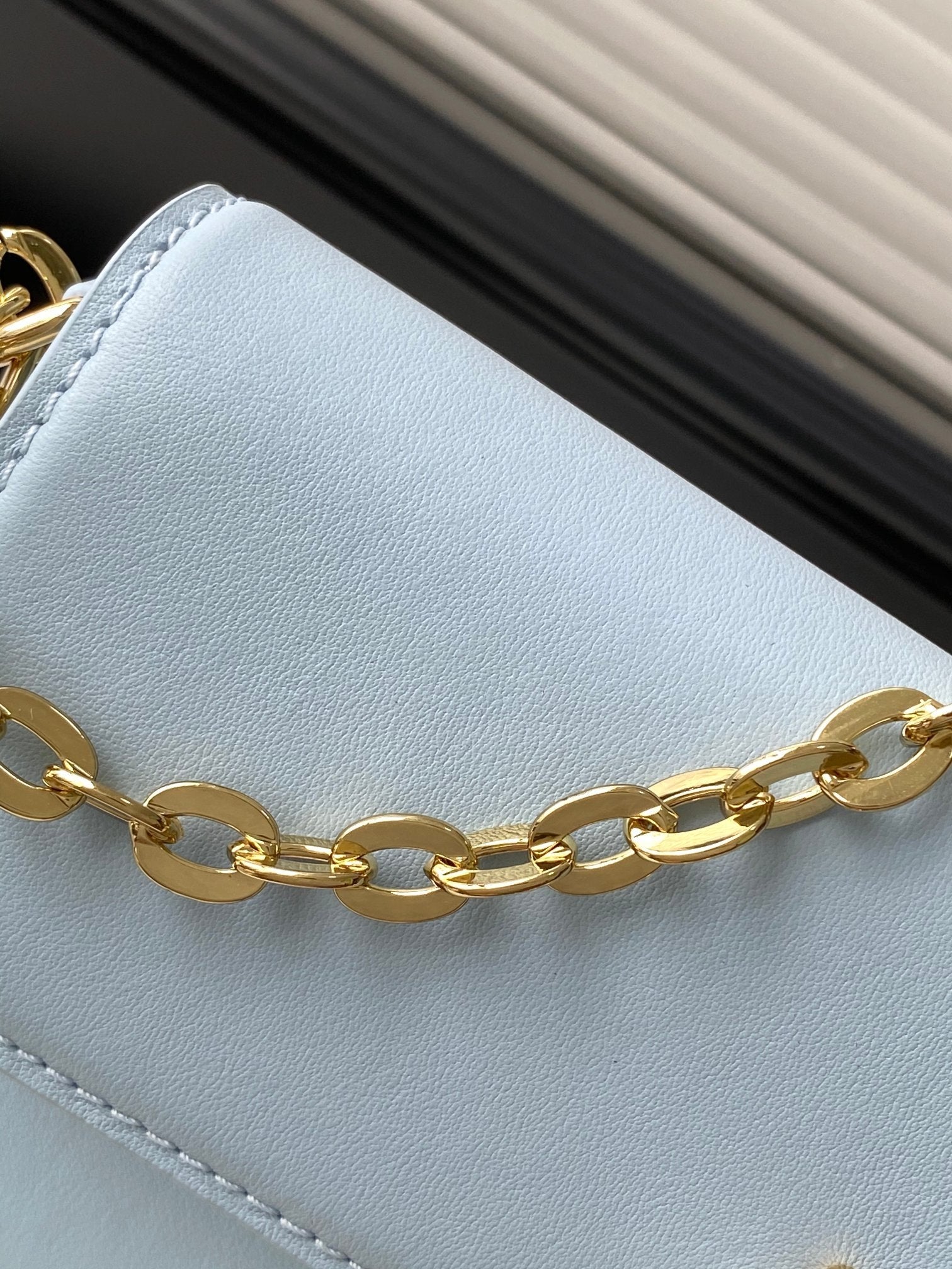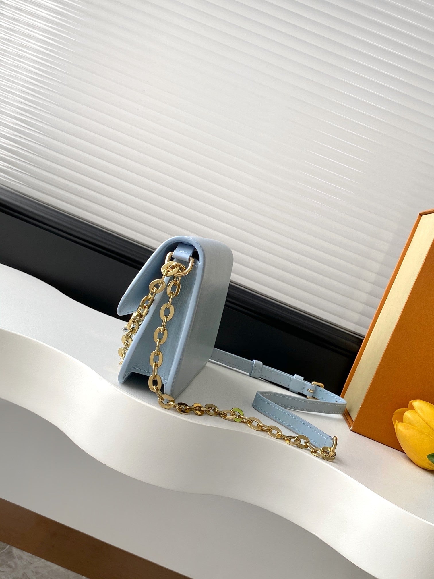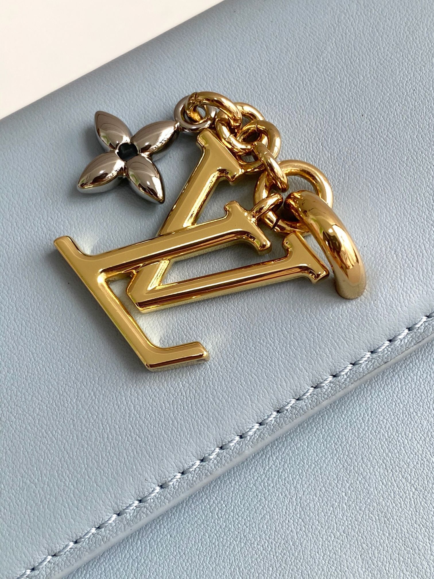 This Wallet on Chain bag, from the Louis Vuitton Bloom collection, features a stylish yet practical silhouette crafted from cowhide leather. Embellished with details inspired by the brand's iconic Monogram pattern, it offers ample space for a smartphone, while contrasting metal hardware adds an elegant touch.