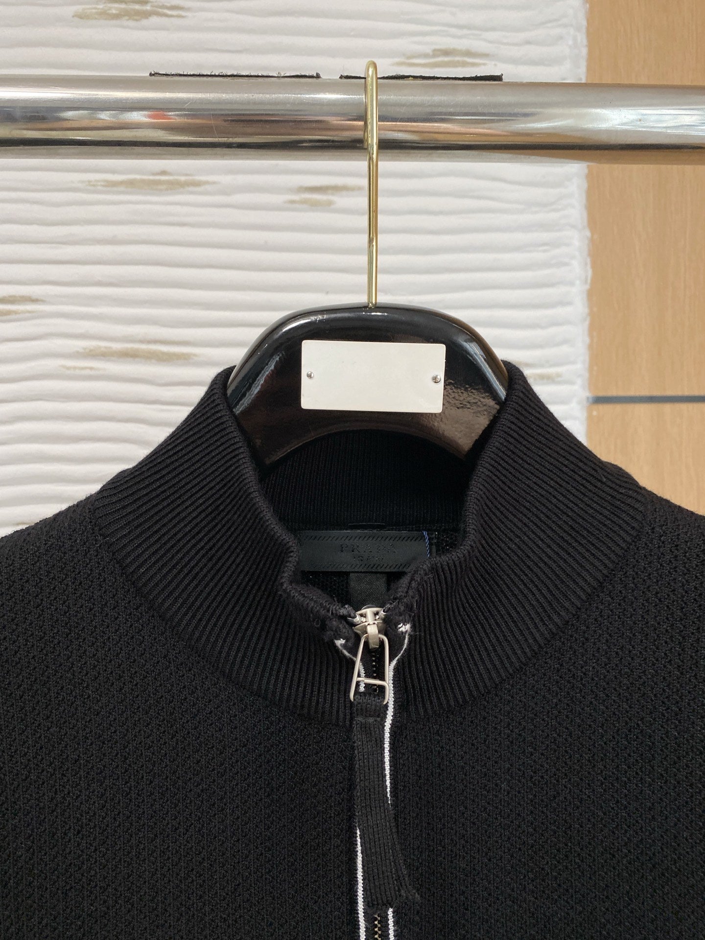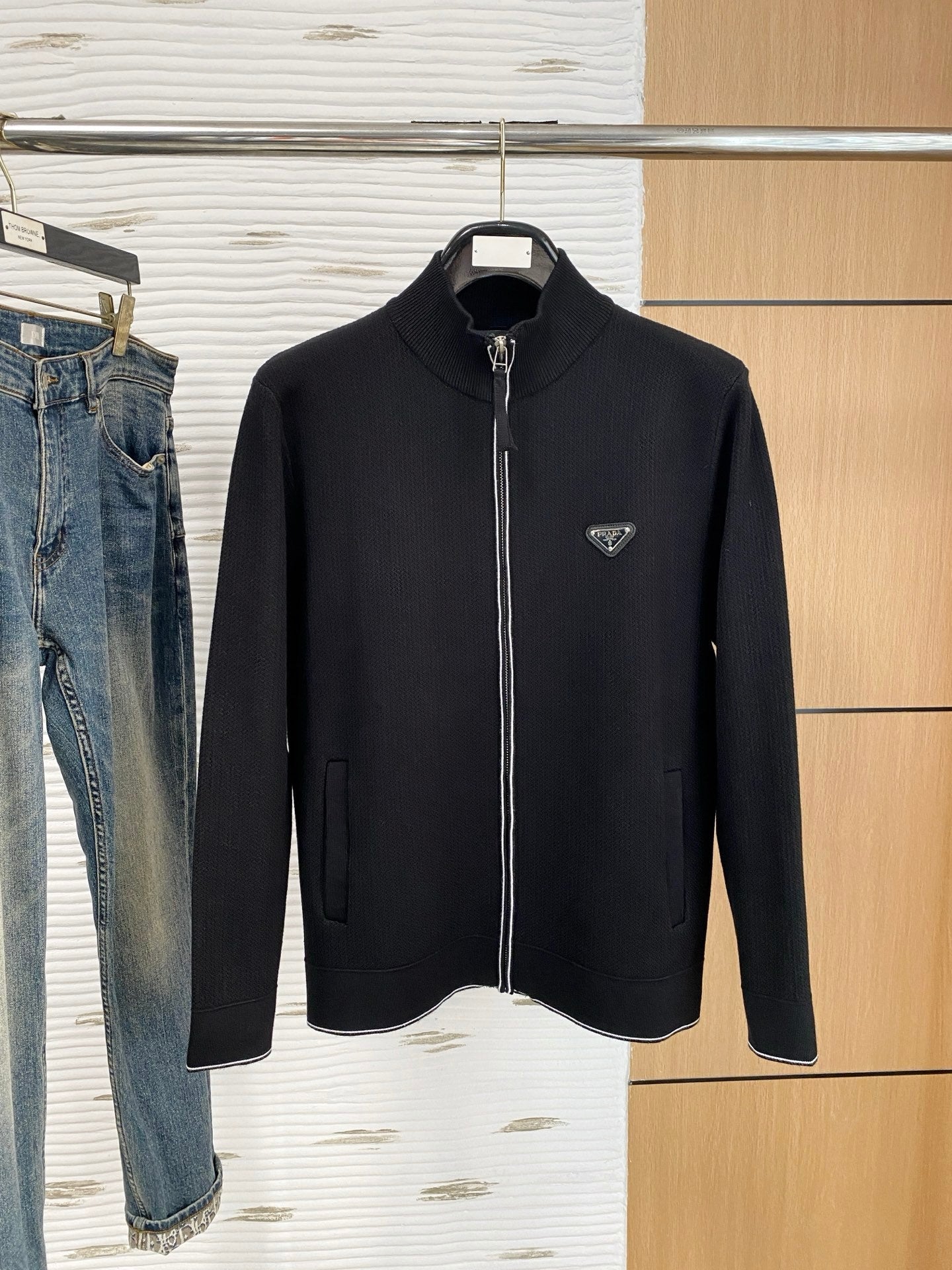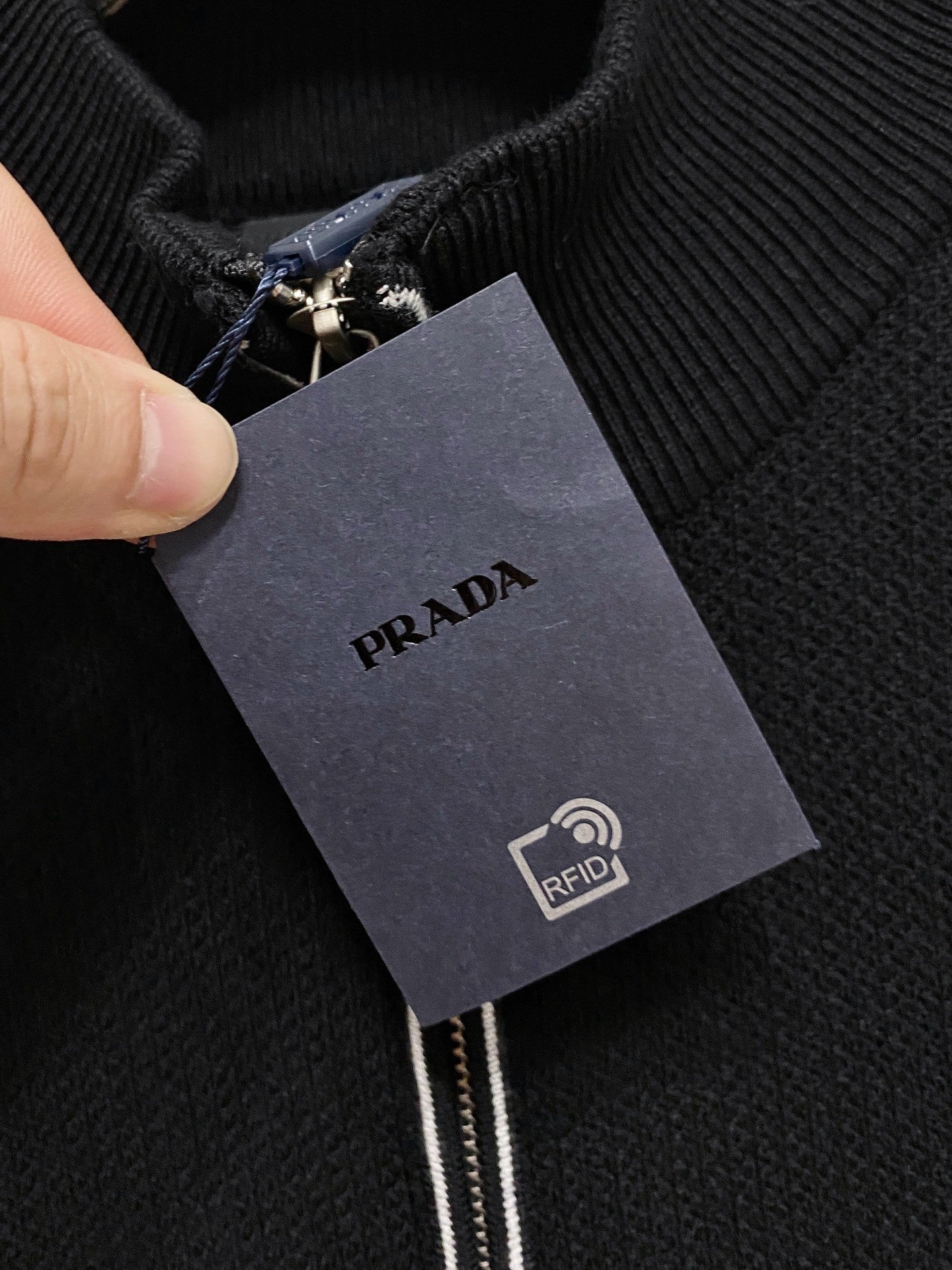 Prada Autumn/Winter 2025 Wool Blend Cardigan Zippered Knit Sweater. Made with imported custom yarn, this sweater is comfortable and warm. Also available. All three labels are included.