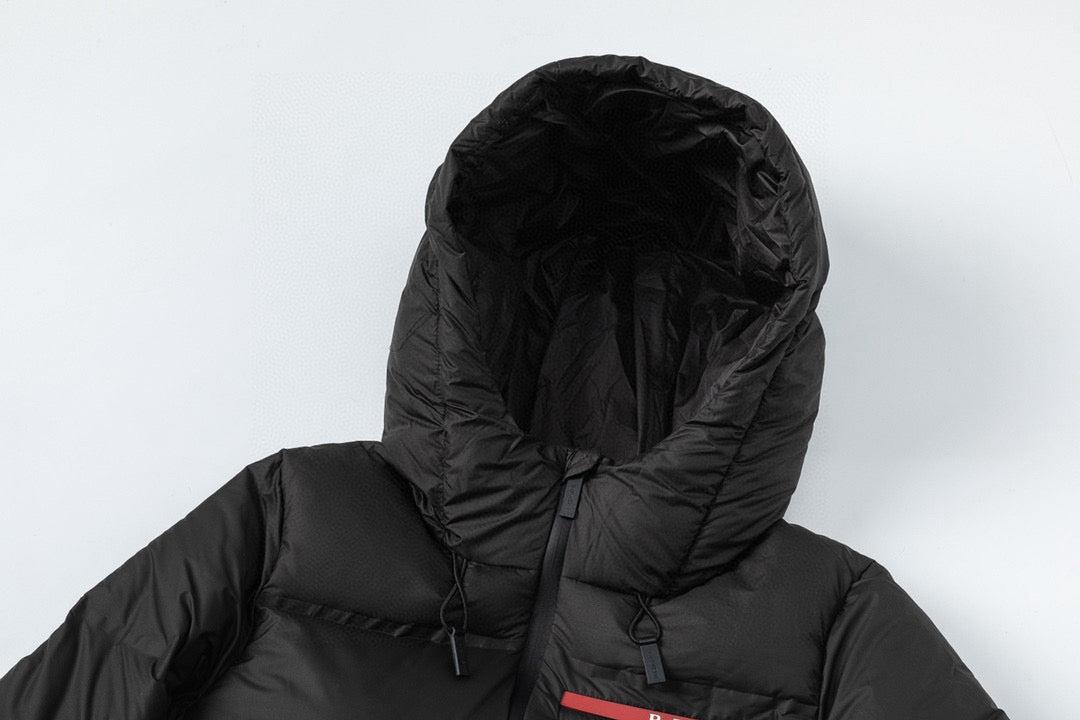 This down quilt is practically a walking duvet, even in temperatures well below -0.5°C. A must-have for everyone! Made with Prada's exclusive high-end laminating process, it's filled with 90% white goose down for a high loft, offering both warmth and style. The laminating process eliminates visible seams! Truly a high-end product!