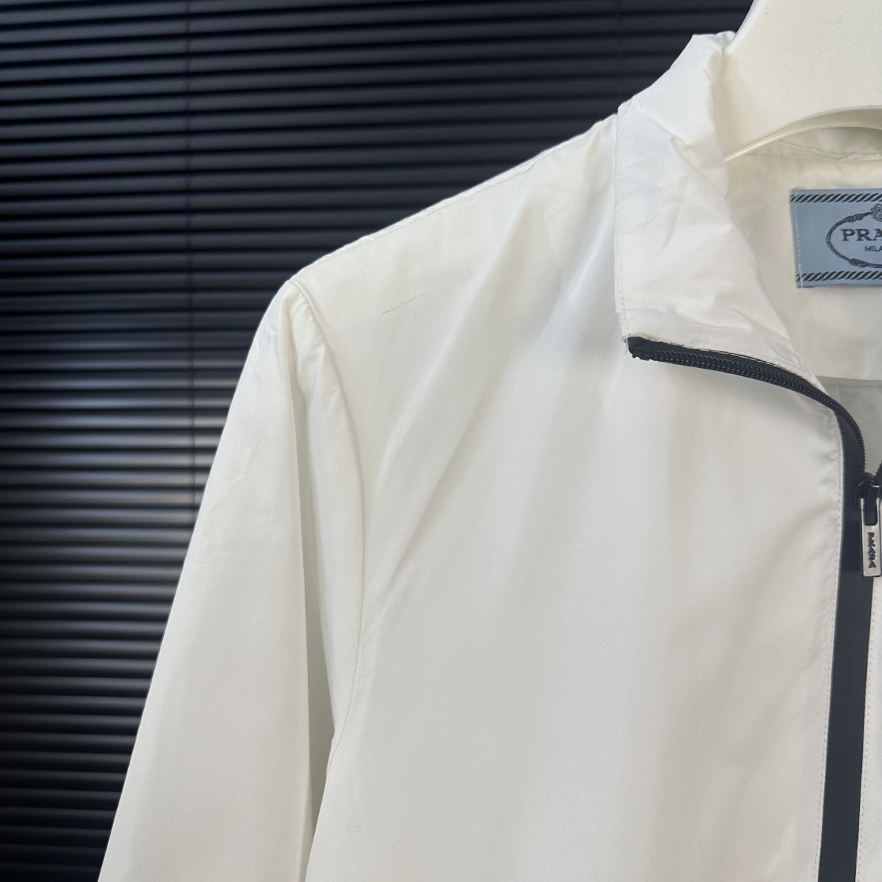 Prada 2025 Fall/Winter New Style. Stand-up collar, thin style. Classic red rubber logo. Synced with the official website. Original custom-made hardware zipper. Clean seams for a perfect fit. Men's casual style.
