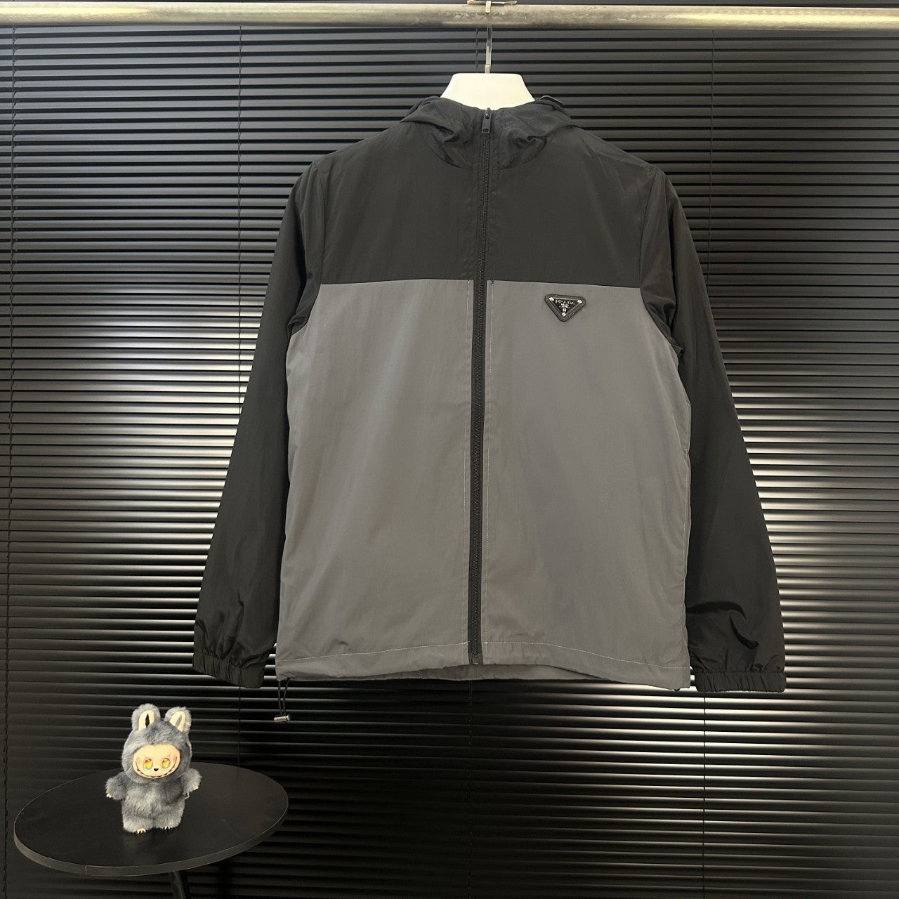 Prada Fall/Winter 2025 New Style. Contrast color stitching, hooded, synced with the official website. Triangular chest logo design. Original custom hardware buttons. Clean seams for a perfect fit. Men's casual style.
