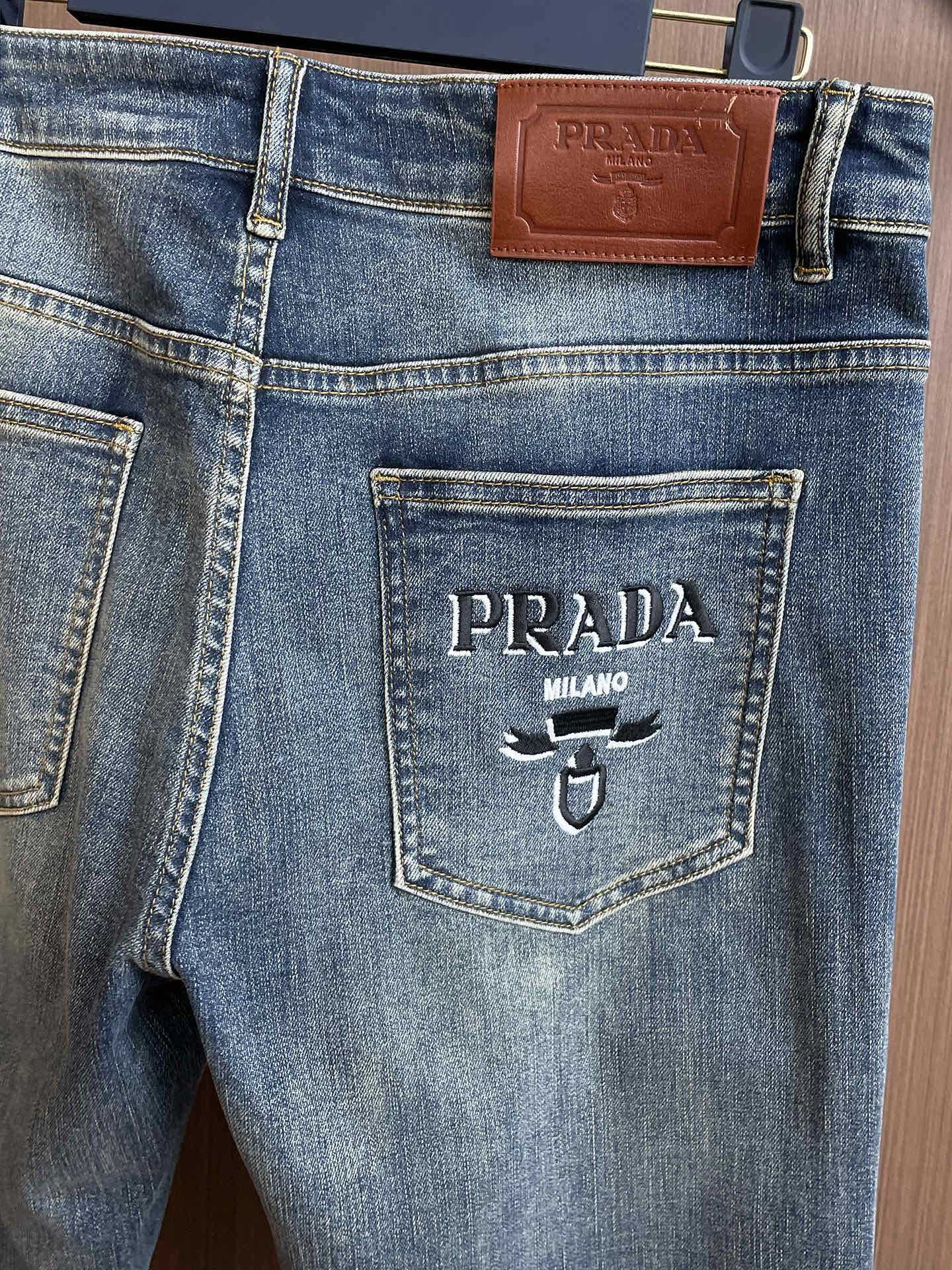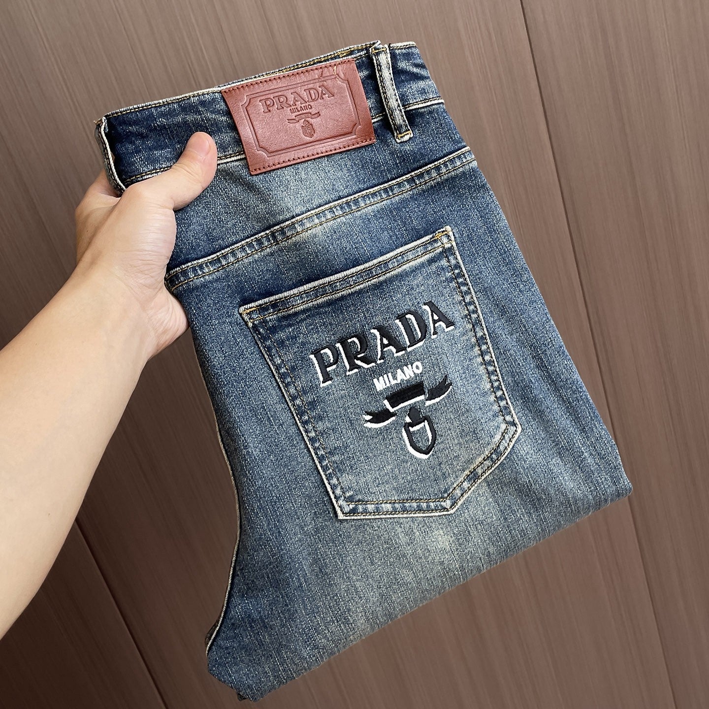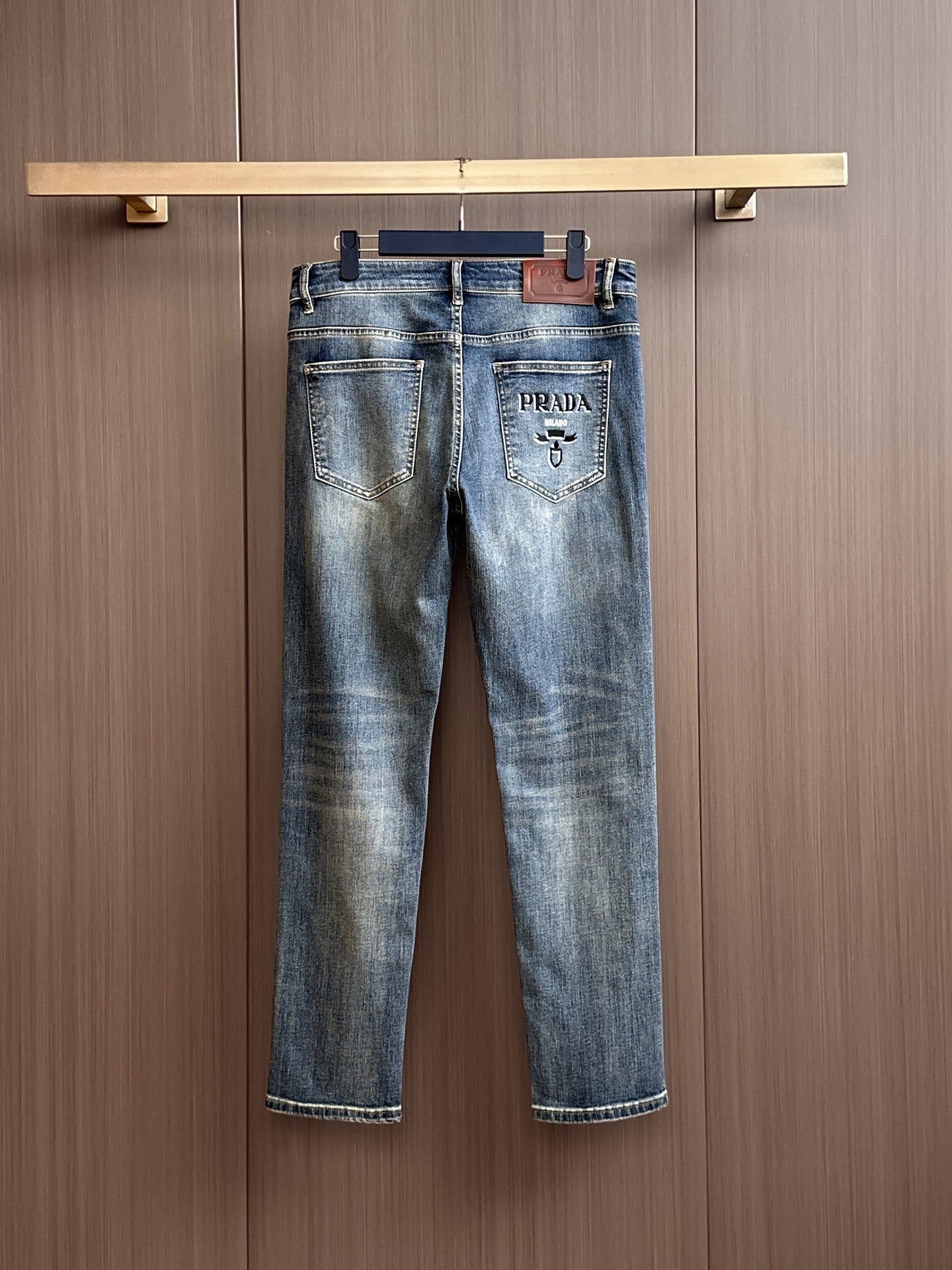 Prada 25ss Men's Autumn/Winter New Slim Straight Jeans. These new fall/winter styles are made of ultra-soft, stretch fabric and intricately crafted. A few extra seconds in the wash will create a completely different color, making them even more precious. They are also exceptionally durable and odor-resistant. We use premium stretch denim, genuine leather patches, and custom metal accents to create a unique and original jeans silhouette! Original hardware and accessories ensure a true fit, comfortable and breathable, and a high-end, high-quality look.
